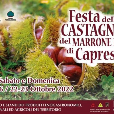 Novità del programma di quest’anno, illustrato dal presidente Mauro Fiorucci e da Maria Teresa Baroni, rispettivamente presidente e membro del comitato Festa della castagna e del marrone dop di Caprese Michelangelo, saranno il Palio della castagna (a cura della Polisportiva Michelangelo), domenica 16 ottobre, e il cooking show ‘Il marrone in festa’, un’ ‘agrisfida’ ai fornelli che domenica 23 ottobre coinvolgerà i sindaci della Valtiberina.