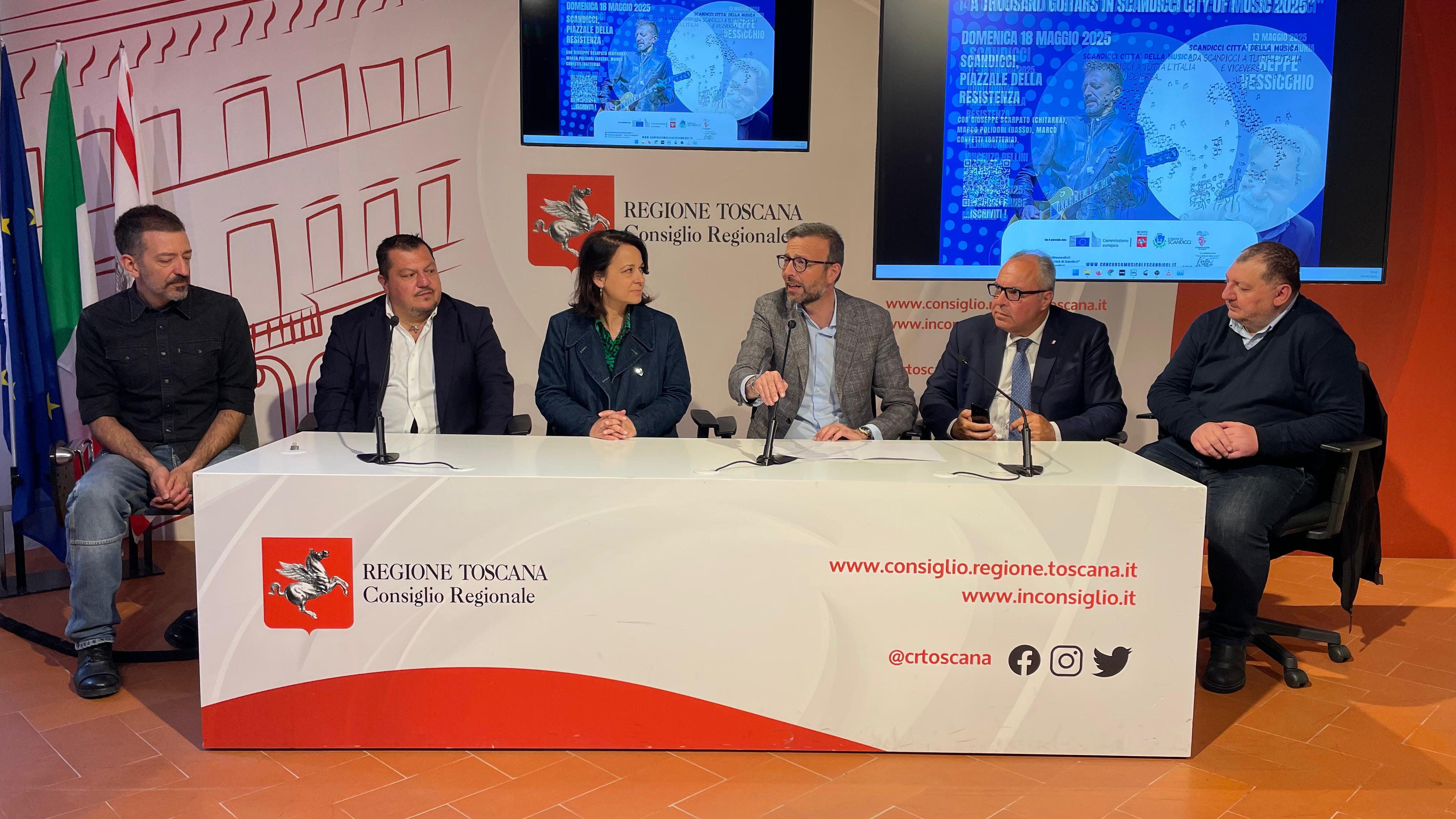 All’incontro con gli organi d’informazione hanno preso parte il presidente del Consiglio regionale Antonio Mazzeo, il consigliere regionale Fausto Merlotti, la sindaca di Scandicci, Claudia Sereni, il presidente della Filarmonica ‘Vincenzo Bellini’ Luciano Marino e il chitarrista, produttore e compositore Giuseppe Scarpato.