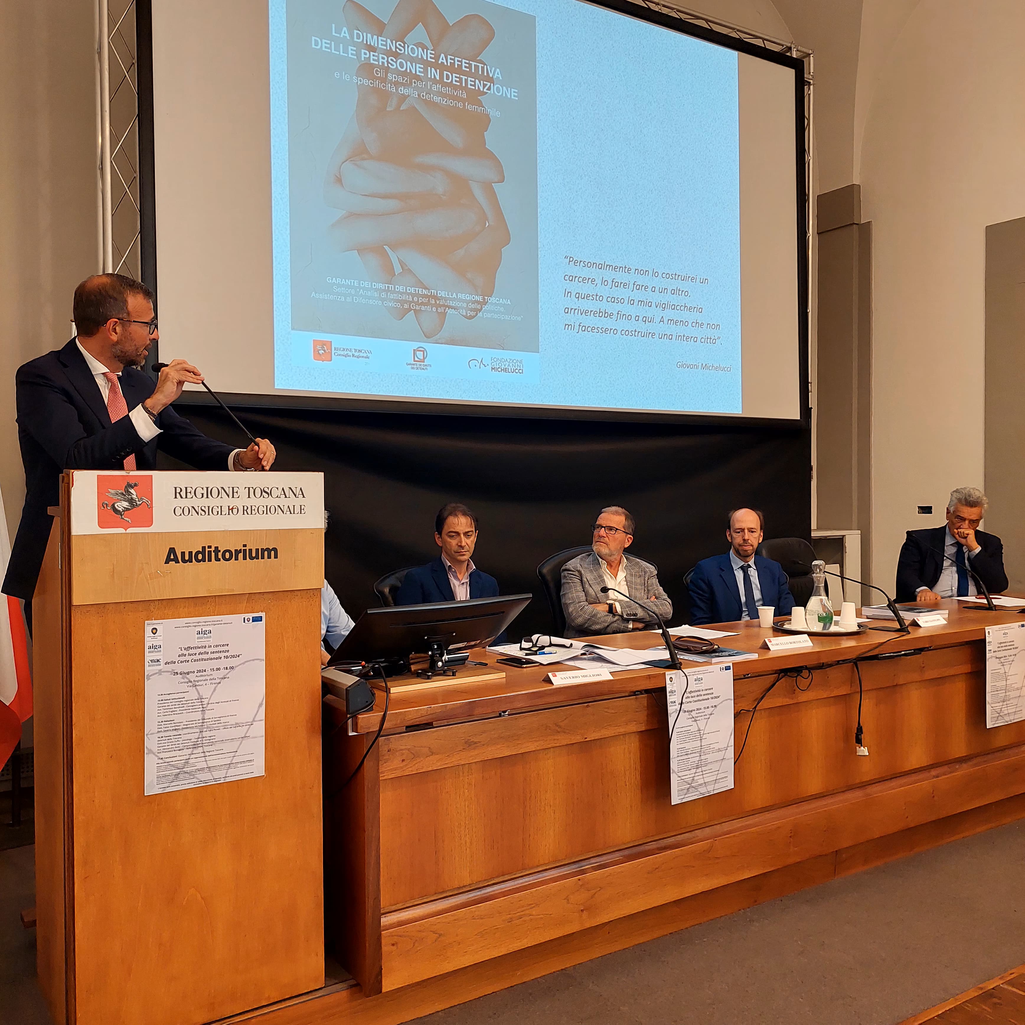 Firenze – “L’affettività in carcere alla luce della sentenza della Corte Costituzionale 10/2024” è stato il tema del convegno che si è tenuto oggi (martedì 25 giugno) nell’Auditorium Spadolini di palazzo del Pegaso, organizzato dal Garante dei diritti dei detenuti della Regione Toscana, da AIGA (Associazione giovani avvocati) e ONAC (Osservatorio nazionale di AIGA).