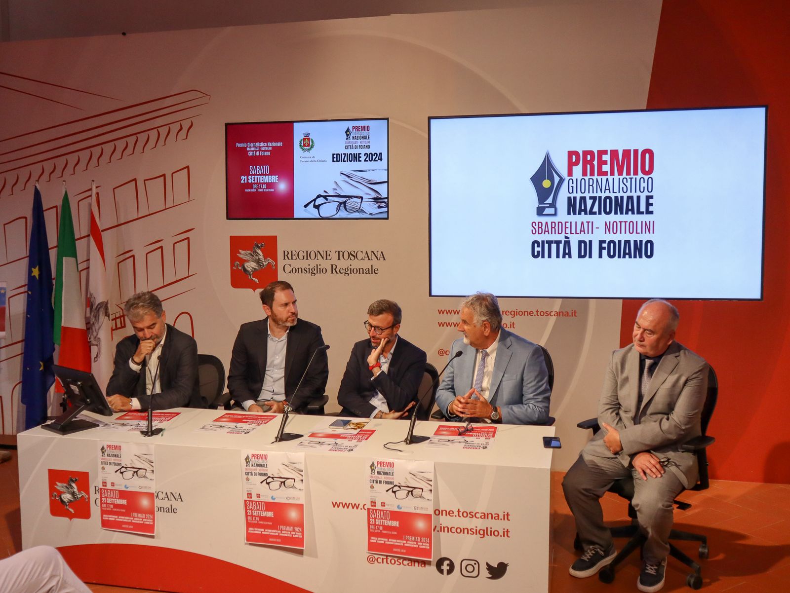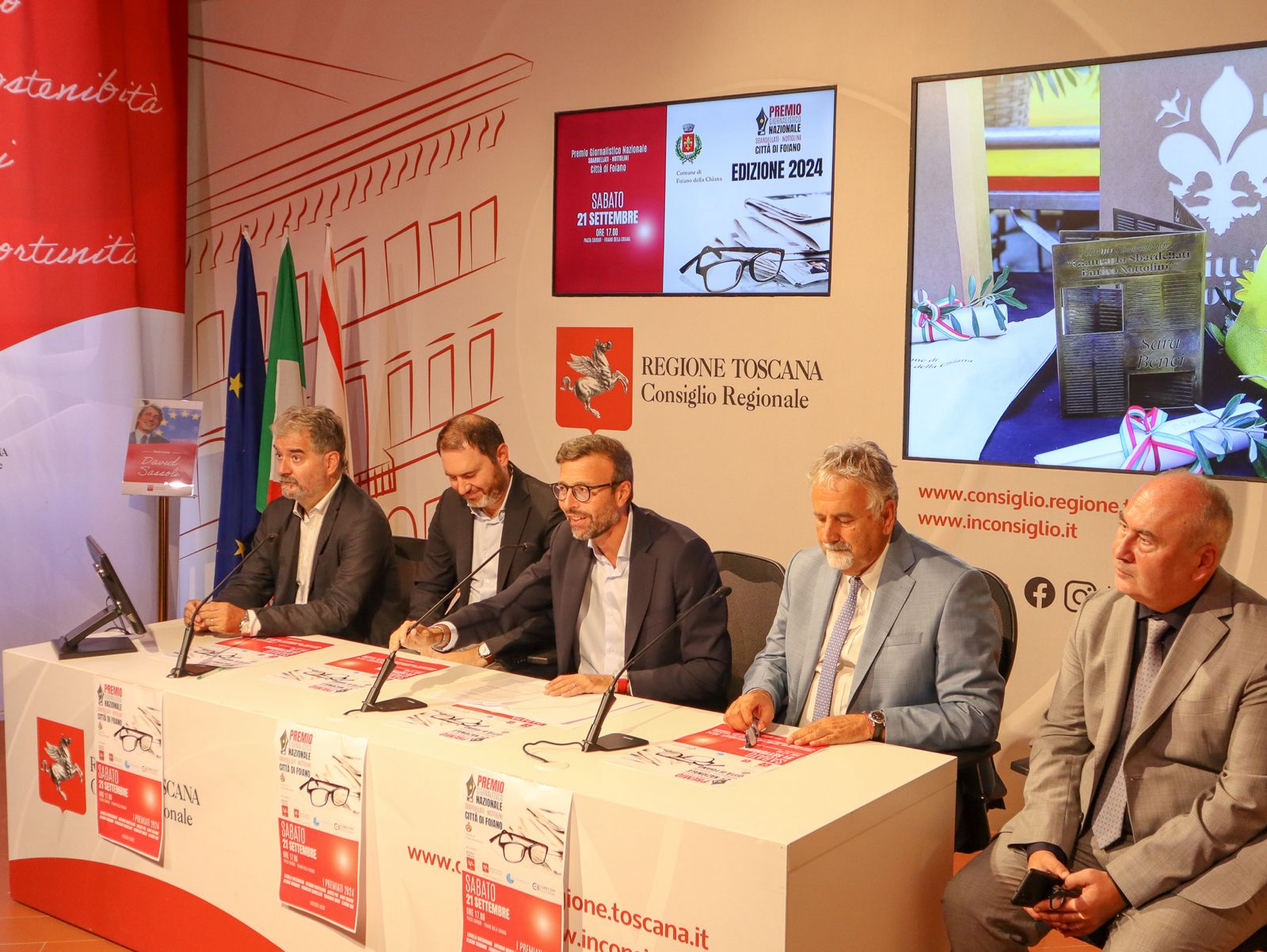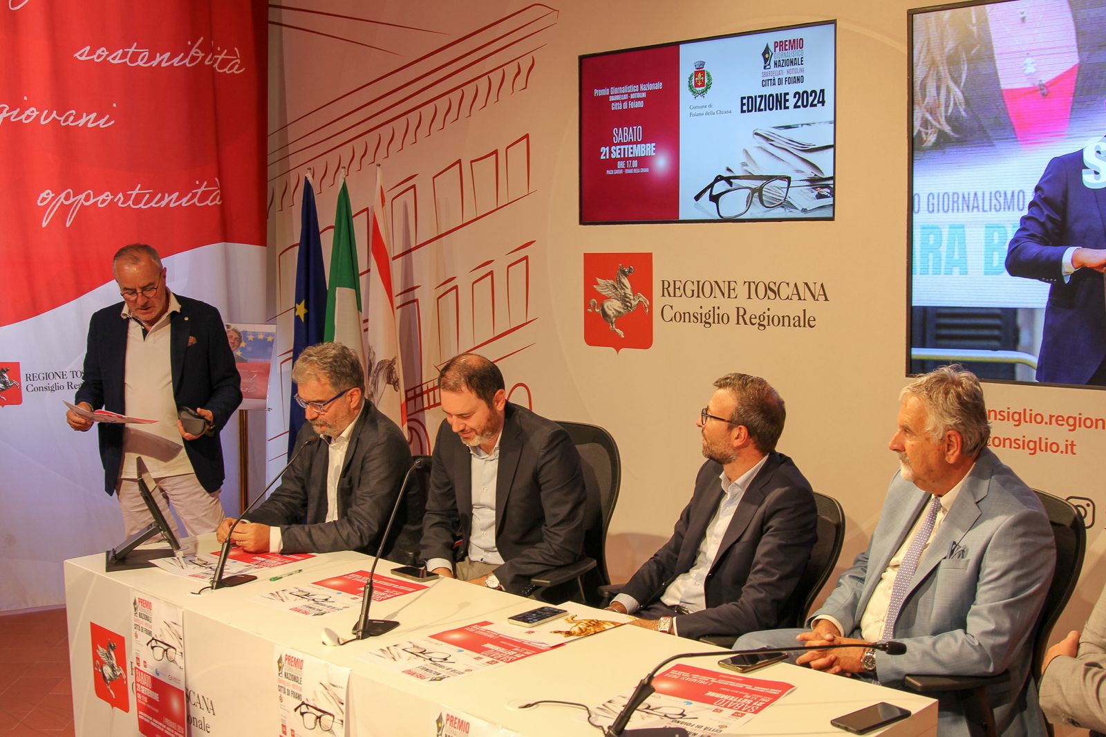 dal presidente del Consiglio Regionale della Toscana Antonio Mazzeo, dal consigliere regionale Vincenzo Ceccarelli, dal sindaco di Foiano della Chiana Jacopo Franci, dal presidente dell’Ordine dei Giornalisti della Toscana Giampaolo Marchini, dal presidente del Corecom Toscana Marco Meacci. L’appuntamento è per sabato 21 settembre, nella centrale piazza Cavour, con la cerimonia di premiazione. Quest’anno al centro del dibattito ci saranno il fenomeno delle fake news, i nuovi linguaggi e la libertà d’informazione.