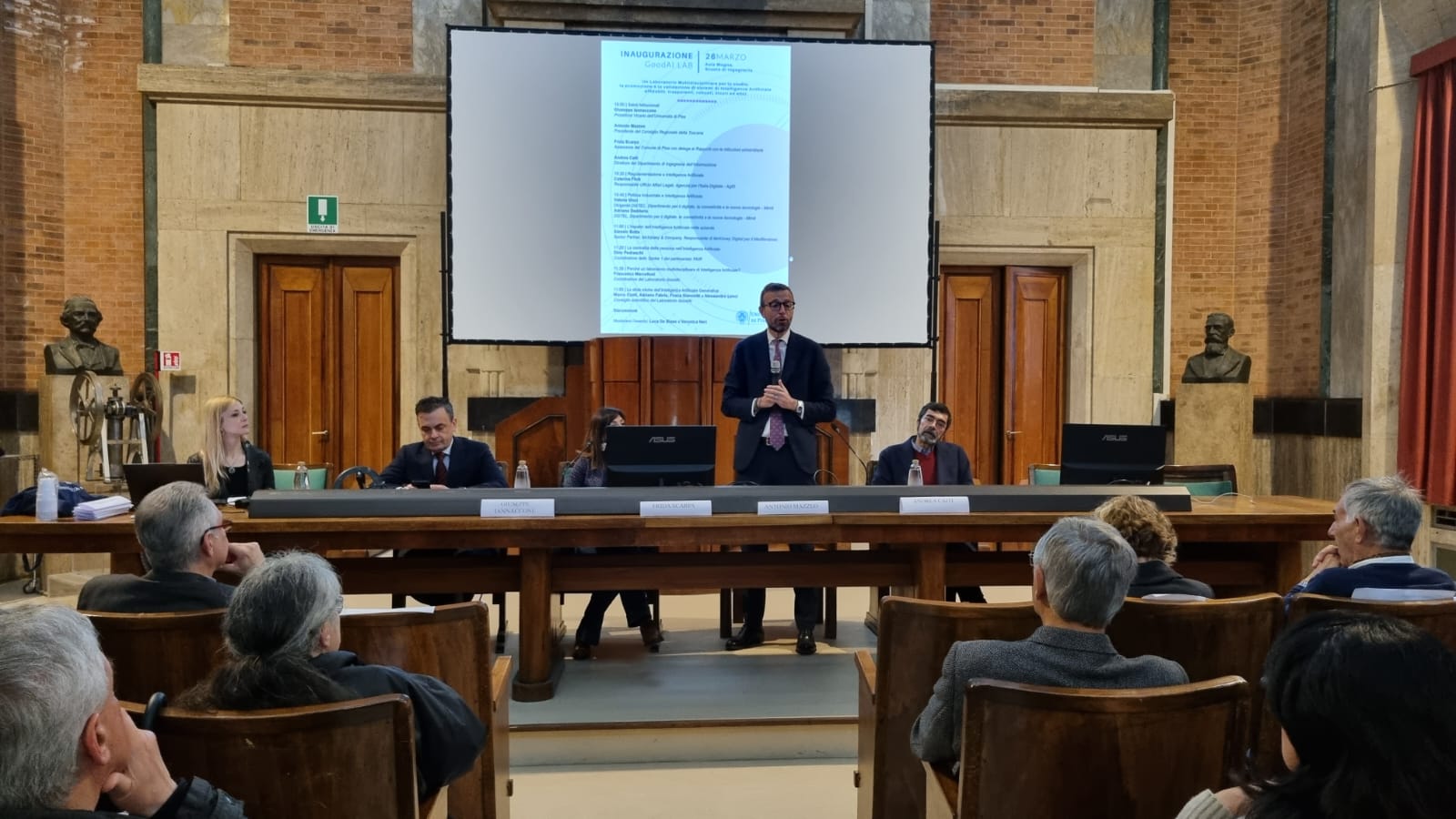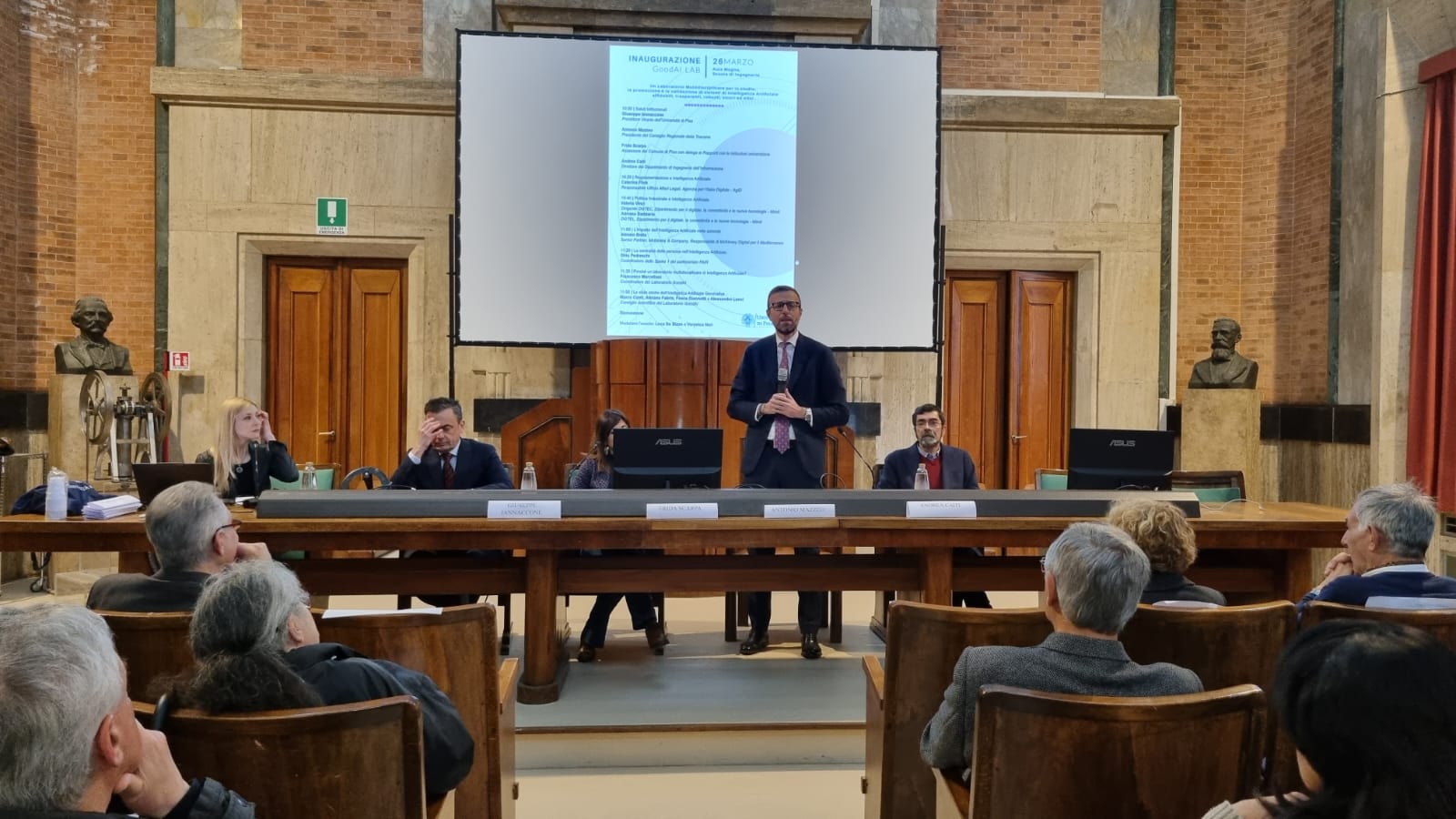 “Quella di oggi è una giornata bella e importante per l’Università di Pisa e per tutta la Toscana – ha continuato Mazzeo -. L’Intelligenza Artificiale sta cambiando completamente il nostro modo di vivere ed è sempre più pervasiva. Il compito della politica deve essere quello di definire la strada giusta da perseguire, facendo in modo che queste tecnologie migliorino la vita dei cittadini e delle cittadine nel campo del lavoro, della sanità e dei diritti. Ecco perché iniziative come questa hanno un grande valore. L’obiettivo è di proteggere i diritti fondamentali, la democrazia, lo stato di diritto e la sostenibilità ambientale dai sistemi di IA ad alto rischio, promuovendo nel contempo l’innovazione e assicurando all’Europa un ruolo guida nel settore. Guardando al futuro, il nostro obiettivo è chiaro: vogliamo che Pisa e la Toscana diventino punti di riferimento in Europa per l’Intelligenza Artificiale”.