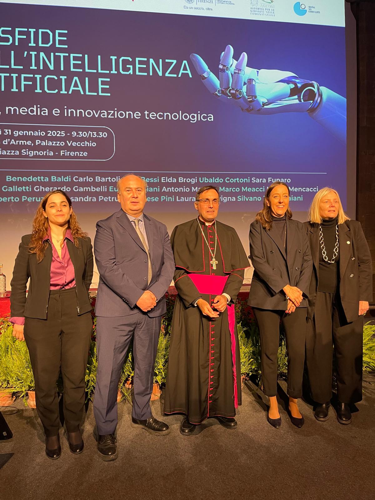 Meacci ha ringraziato la sindaca di Firenze Sara Funaro, l’assessora all’intelligenza artificiale del comune di Firenze Laura Sparavigna, la Diocesi di Firenze, in particolare l’Arcivescovo Monsignor Gherardo Gambelli, “con cui – ha detto – abbiamo condiviso fin dall’inizio l’idea e l’organizzazione di questo evento”, l’Università di Firenze e la sua rettrice, Alessandra Petrucci e all’ordine dei giornalisti, con il presidente nazionale Carlo Bartoli. “Come Corecom della Toscana – continua –, il nostro impegno nel garantire una comunicazione equa, trasparente e rispettosa dei diritti dei cittadini si interseca in modo diretto con le sfide sollevate dalle nuove tecnologie. Il ruolo dei media, la loro responsabilità nell’informare correttamente, nonché il delicato equilibrio tra innovazione tecnologica ed etica, sono temi che richiedono attenzione e un confronto continuo”. “Le opportunità offerte dall’intelligenza artificiale sono immense – ha aggiunto Meacci –, ma lo sono altrettanto i rischi legati all’uso non regolamentato e irresponsabile di tali tecnologie. In questo scenario, il Corecom è chiamato a un ruolo attivo, promuovendo la cultura della responsabilità, della tutela dei diritti dei cittadini e dell’accesso equo alle informazioni”.