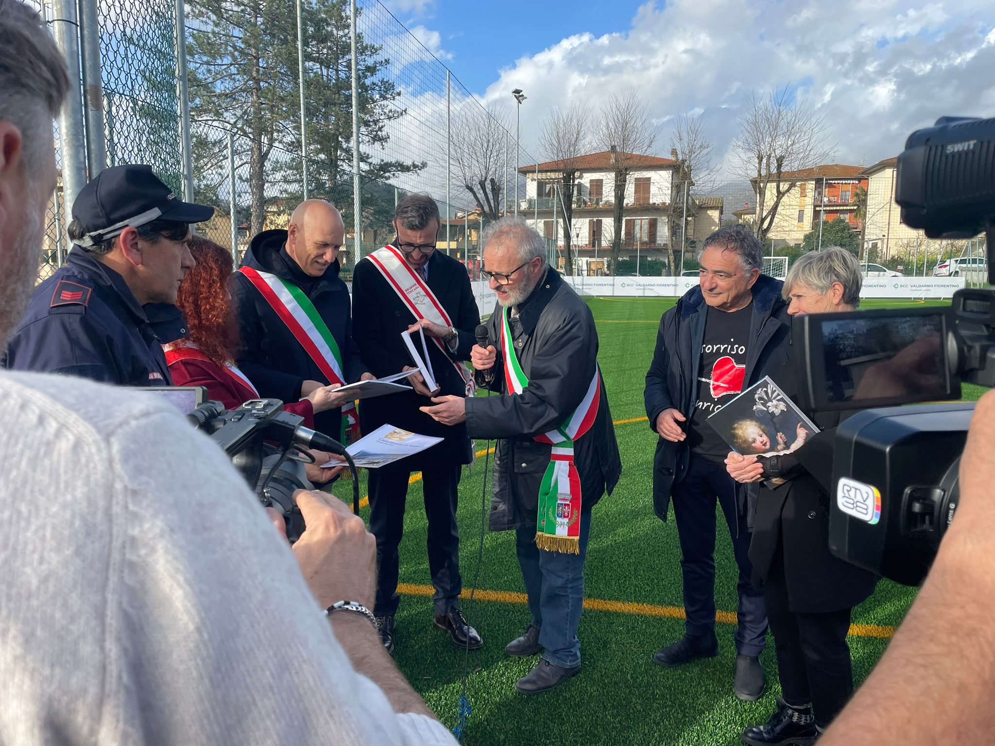 “È un giorno di festa – ha detto il presidente Mazzeo –. L’emozione di Anna e Doriano è il segno della loro fatica in questi anni, ma anche della gioia di mettere a disposizione della comunità uno spazio rivolto soprattutto ai più giovani, di aggregazione giovanile, nel ricordo di Enrico, che con questo campo sarà ancora di più nel cuore e nelle menti di tutta questa comunità. Si tratta di un gesto unico. Spesso ci sono soggetti privati che mettono in piedi iniziative simili, qui invece è una associazione no profit che ha deciso, con tanta fatica e impegno anche economico, di realizzare questo spazio e metterlo a disposizione della comunità. È un grande gesto di amore”. Per le istituzioni, insieme a Mazzeo e al sindaco Cacioli, sono intervenuti anche il consigliere regionale Cristiano Benucci, il sindaco di Reggello, Piero Giunti, e il sindaco di Figline e Incisa Valdarno, Giulia Mugnai.