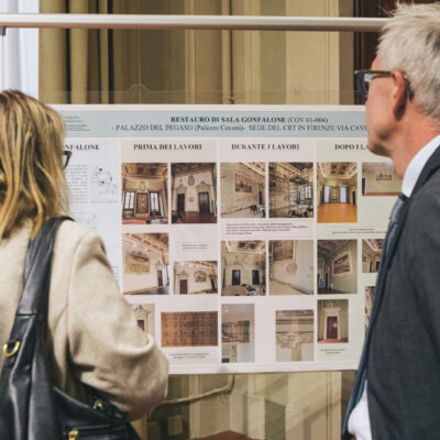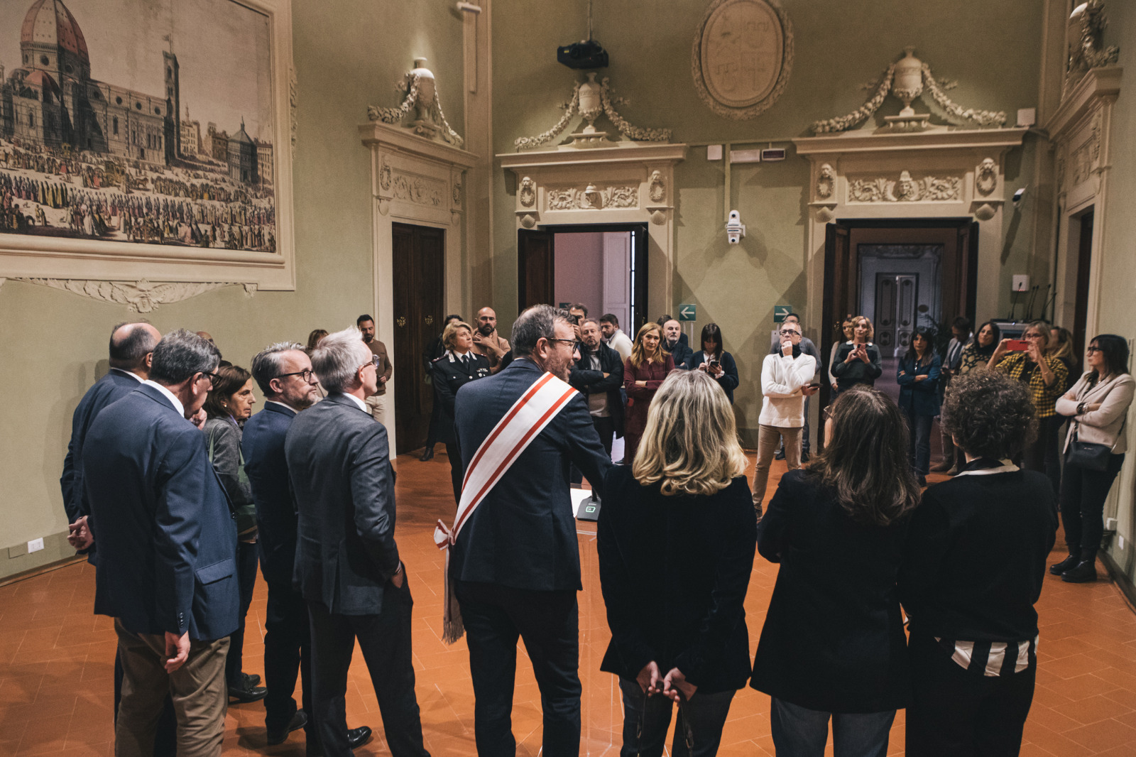 I lavori di restauro della sala Gonfalone sono stati eseguiti dalla ditta esecutrice Sansone srl, con la supervisione della Soprintendenza di Firenze (la storica dell’arte Jennifer Celani e l’architetto Hosea Scelza). Mazzeo ha voluto ringraziare anche i dirigenti e gli uffici che hanno seguito i lavori di restauro “grazie a tutti coloro che hanno contribuito a restituirci questo spazio così bello. Oggi a noi il compito di farlo vivere di più, nel rispetto della bellezza, della sua storia e di tutto quello che rappresenta. Farlo vivere significherà non farlo rimanere uno spazio chiuso”.