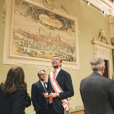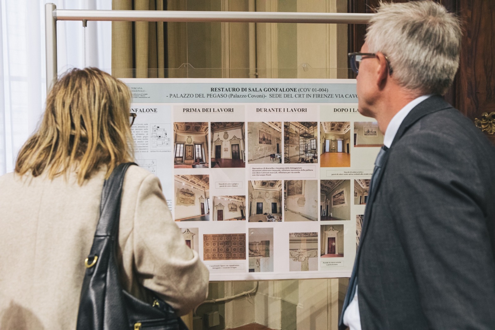 Eugenio Giani, oggi presidente della Toscana, presidente del Consiglio regionale nella passata legislatura si è complimentato “per questo bel lavoro di restauro degli ambienti di due tra i più bei palazzi di Firenze, Panciatichi e Covoni, che da qualche anno abbiamo riassunto nel palazzo del Pegaso e ci restituisce uno spaccato di quel tempo. Grazie davvero per questo restauro”.