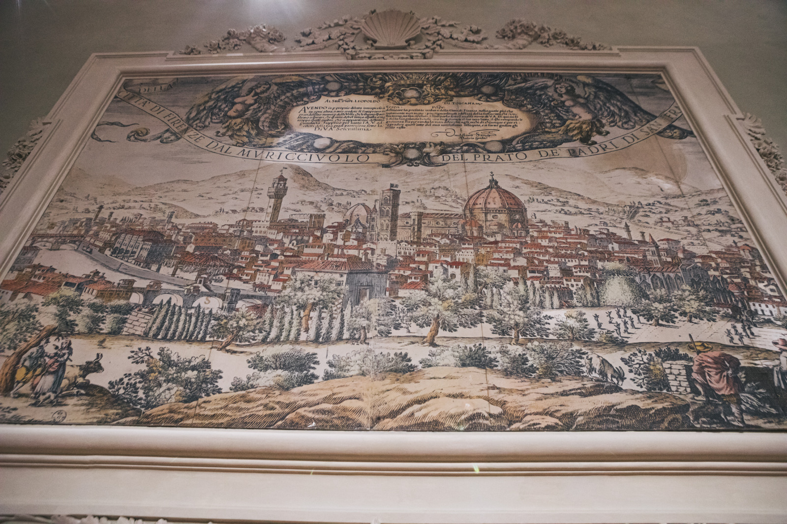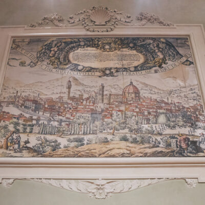 L’apparato decorativo risale alla fine del ’700 e venne realizzato in occasione delle nozze di Zanobi Covoni con la baronessa Teresa Ricasoli.