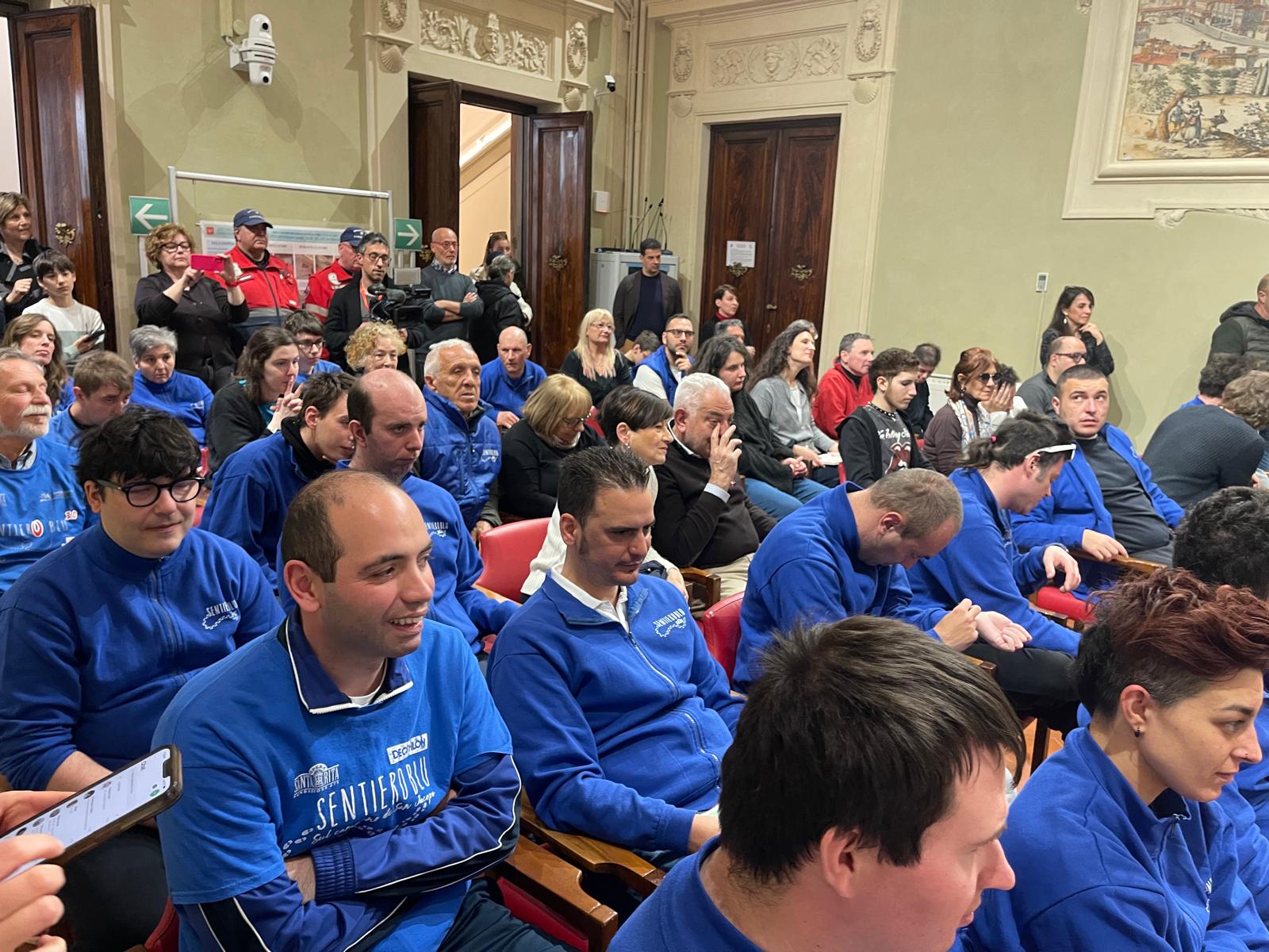 Il presidente della commissione regionale sanità Matteo Biffoni ha evidenziato l’importanza di questa giornata che ha coinvolto oltre cento ragazzi che hanno partecipato al ‘Sentiero Blu’, “un’iniziativa che l’Opera Santa Rita porta avanti insieme alla Misericordia, ai carabinieri in congedo, a tante persone che accompagnano i ragazzi in un percorso lungo la Toscana per arrivare qui in Consiglio regionale, per la prima volta”.