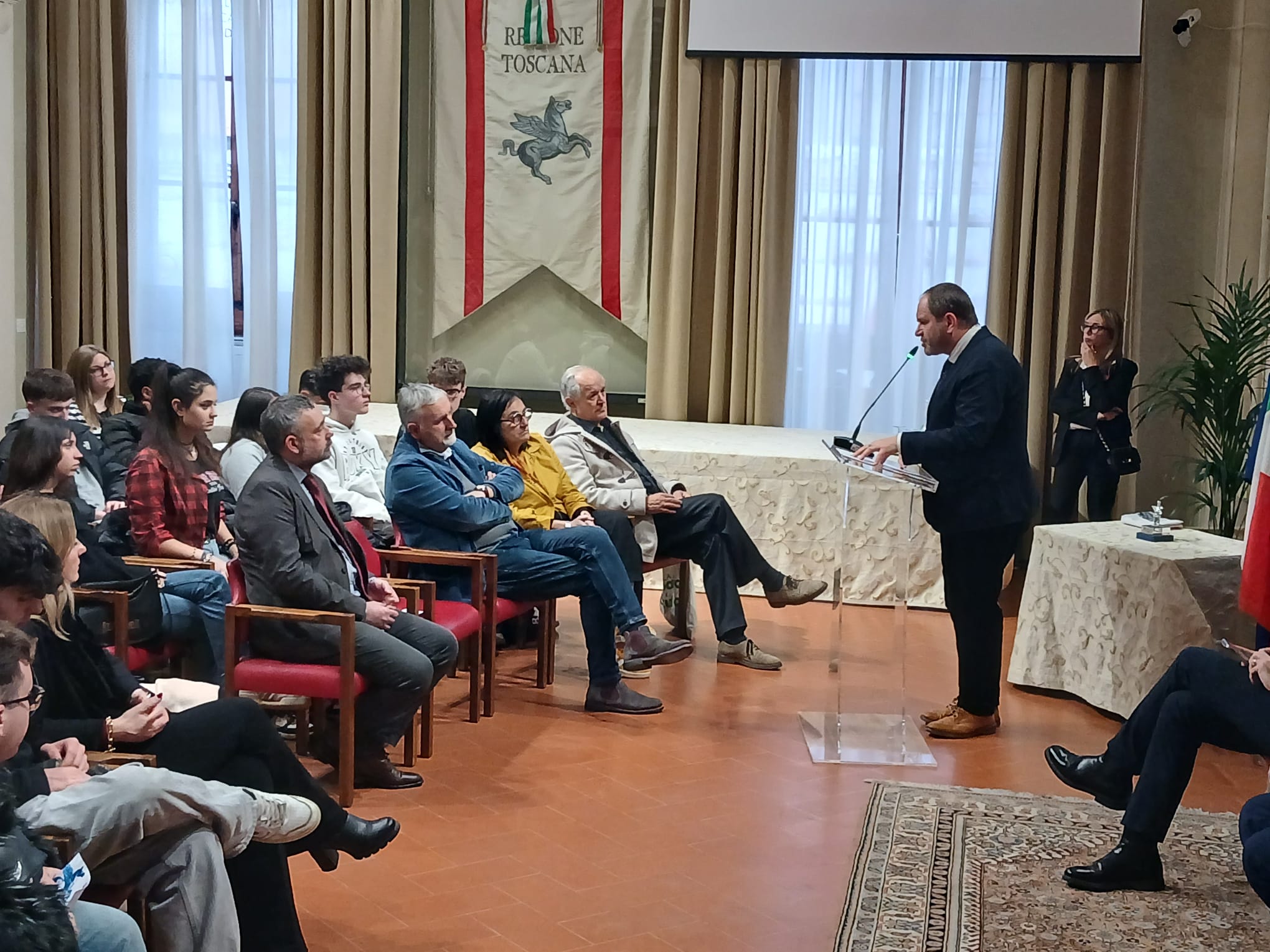Al termine della cerimonia, l’Istituto, attraverso una delegazione di studenti, ha donato al presidente Mazzeo una medaglia dedicata alla figura dell’artista Giorgio Vasari, di cui hanno realizzato il design e lo stampo. Subito dopo, il presidente Mazzeo si è trasformato in cicerone e ha guidato gli studenti nella visita alla sala consigliare di palazzo del Pegaso, dove ha spiegato loro i compiti del Consiglio regionale e il funzionamento dei lavori d’aula.