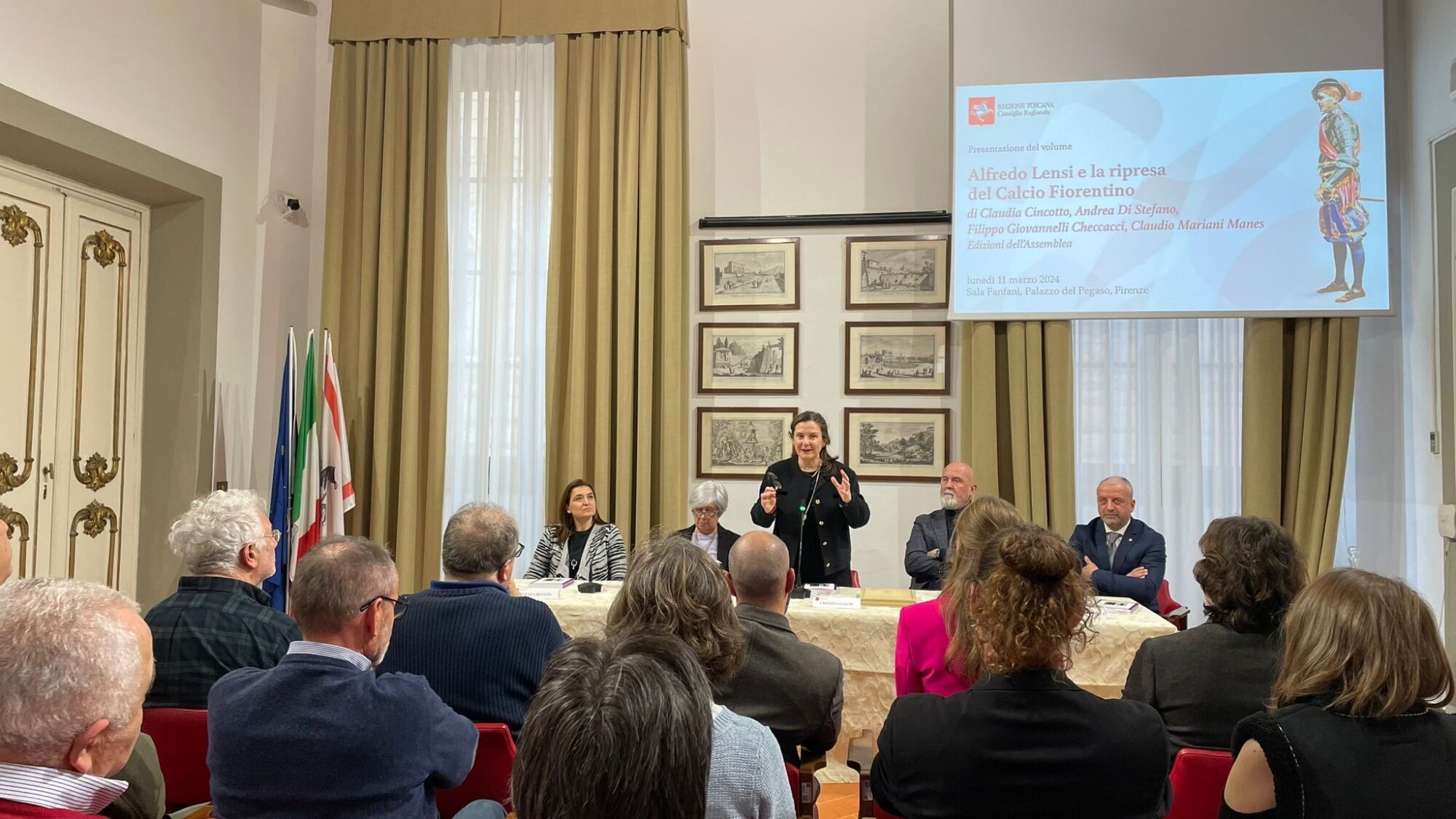 Firenze – “Sono molto orgogliosa di portare il saluto del presidente del Consiglio regionale alla presentazione di questo libro, un pezzo di storia a me caro per i miei precedenti incarichi, ma anche per il senso di appartenenza e per lo spirito di corpo che caratterizza il Calcio storico per la comunità fiorentina”. Così la presidente della commissione Istruzione, formazione, beni e attività culturali, Cristina Giachi, alla presentazione del volume ‘Alfredo Lensi e la ripresa del Calcio Fiorentino’ di Claudia Cincotto, Andrea Di Stefano, Filippo Giovannelli Checcacci, Claudio Mariani Manes (Edizioni dell’Assemblea). “Molti gli elementi interessanti in questo volume – ha continuato Giachi – non solo per il legame con la storia grande di Firenze, basti pensare alla partita dell’assedio, ma anche per le sfide culturali e per la capacità di raccontare una terra, una città, lo spirito di un popolo; in un lavoro che ripercorre le tappe identitarie, sociali, i mutamenti di questa tradizione, parlando di noi al mondo intero”. “Sono grata agli autori del libro – ha concluso – che attraversano questo tratto significativo del passato e del presente della nostra città, cui continuiamo ad essere legati”.