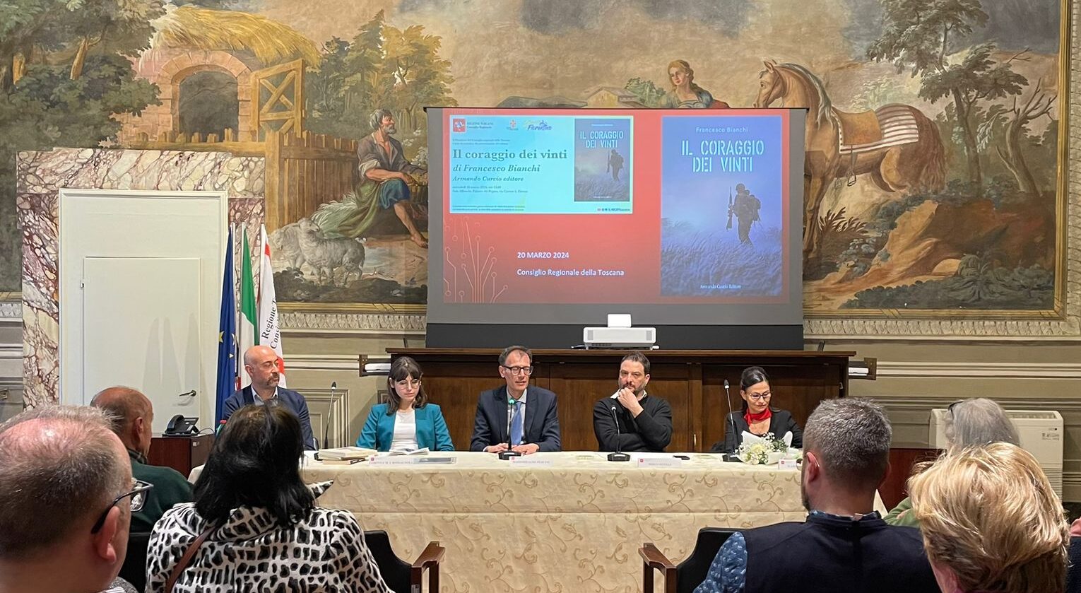 Firenze – Il coraggio dei vinti, di Armando Curcio editore, è il titolo del volume presentato mercoledì 20 marzo nella sala Affreschi di palazzo del Pegaso. “È una storia di resilienza – spiega l’autore Francesco Bianchi – fortemente radicata nel territorio toscano. Il racconto di una deportazione legata al periodo della Seconda guerra mondiale, soprattutto nel periodo dopo l’armistizio. Protagonista è una famiglia contadina di mezzadri che caratterizzava un po’ il centro Italia in quel periodo. Ci sono tre figli che in situazioni molto diverse hanno a che fare con la deportazione e la prigionia”.