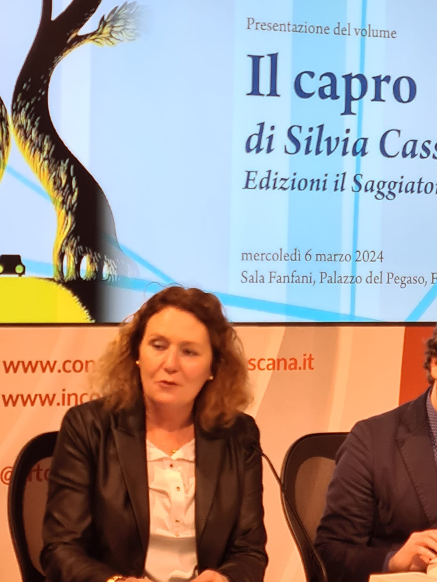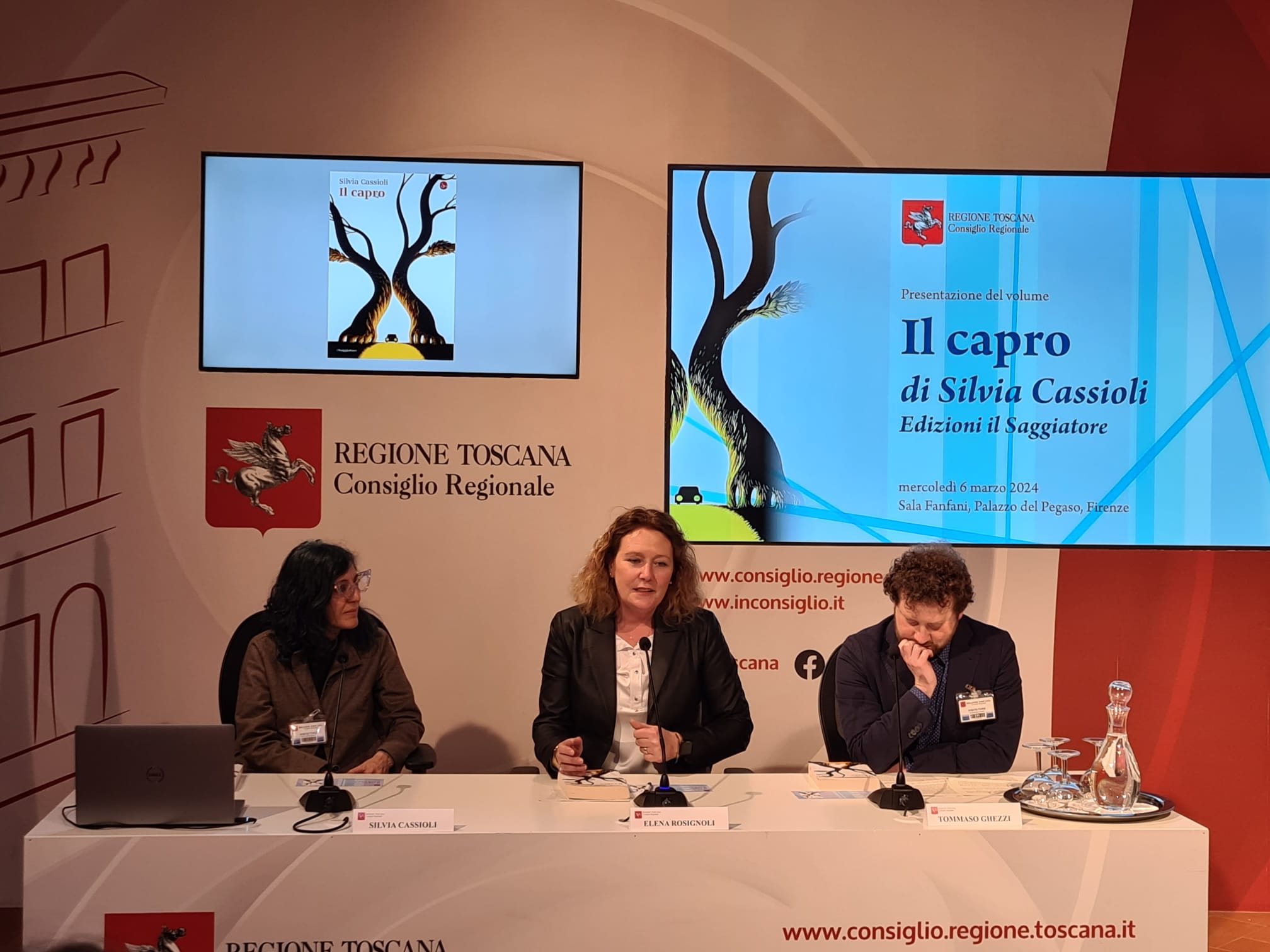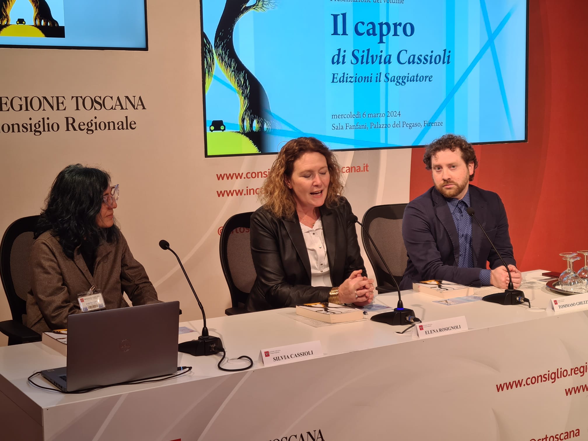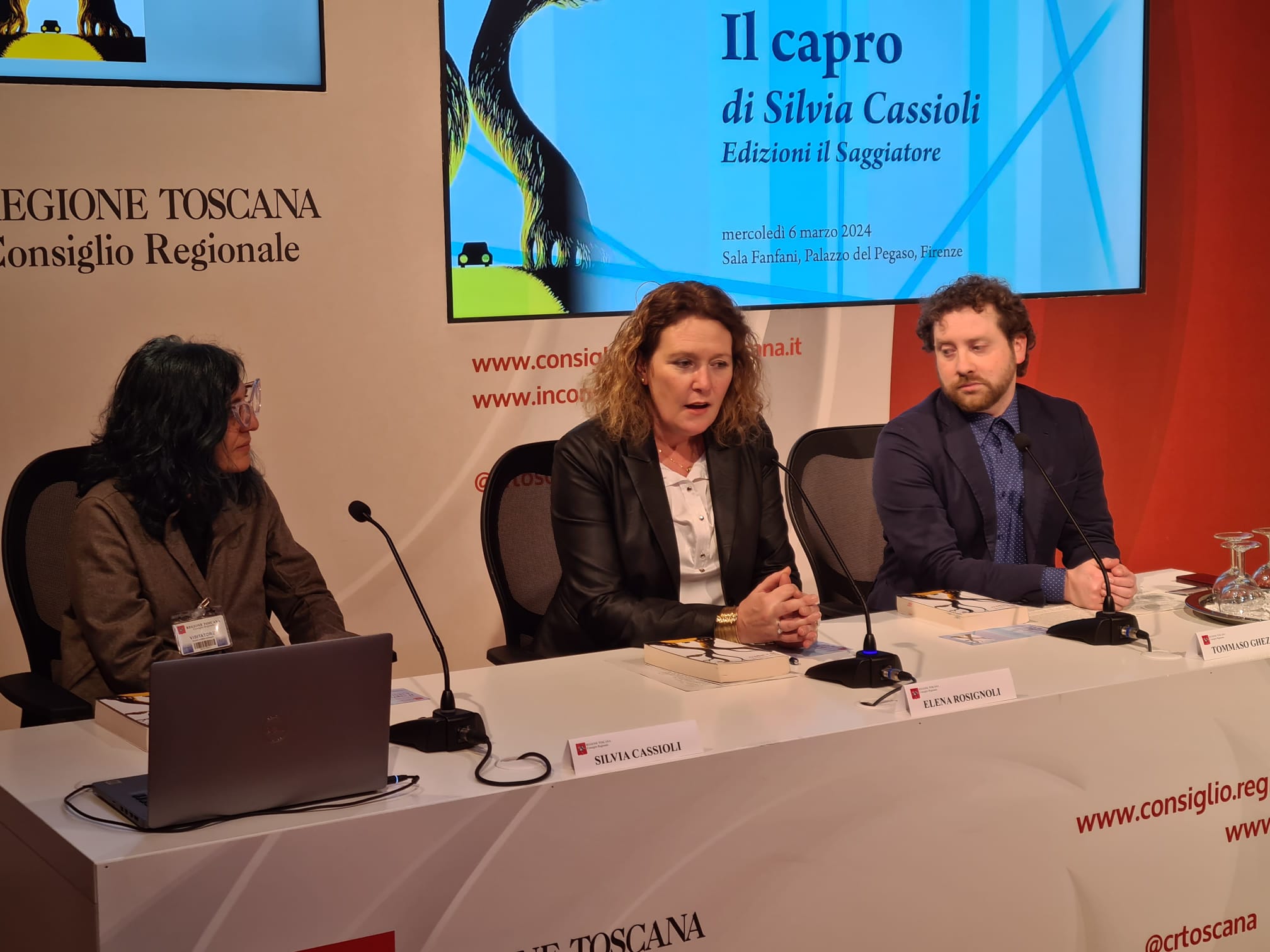 Firenze – ‘Il capro’ è il titolo del romanzo di Silvia Cassioli, che rielabora in forma di racconto le vicende del Mostro di Firenze. Il lavoro della scrittrice e poetessa di Torrita di Siena, edito dal Saggiatore e finalista al Premio narrativa Bergamo 2023, è stato presentato ieri (mercoledì 6 marzo) a palazzo del Pegaso. Sono intervenuti il Consiglio regionale Antonio Mazzeo, che ha portato il saluto istituzionale dell’Assemblea toscana, e la consigliera Elena Rosignoli, insieme all’autrice e al giornalista Tommaso Ghezzi.