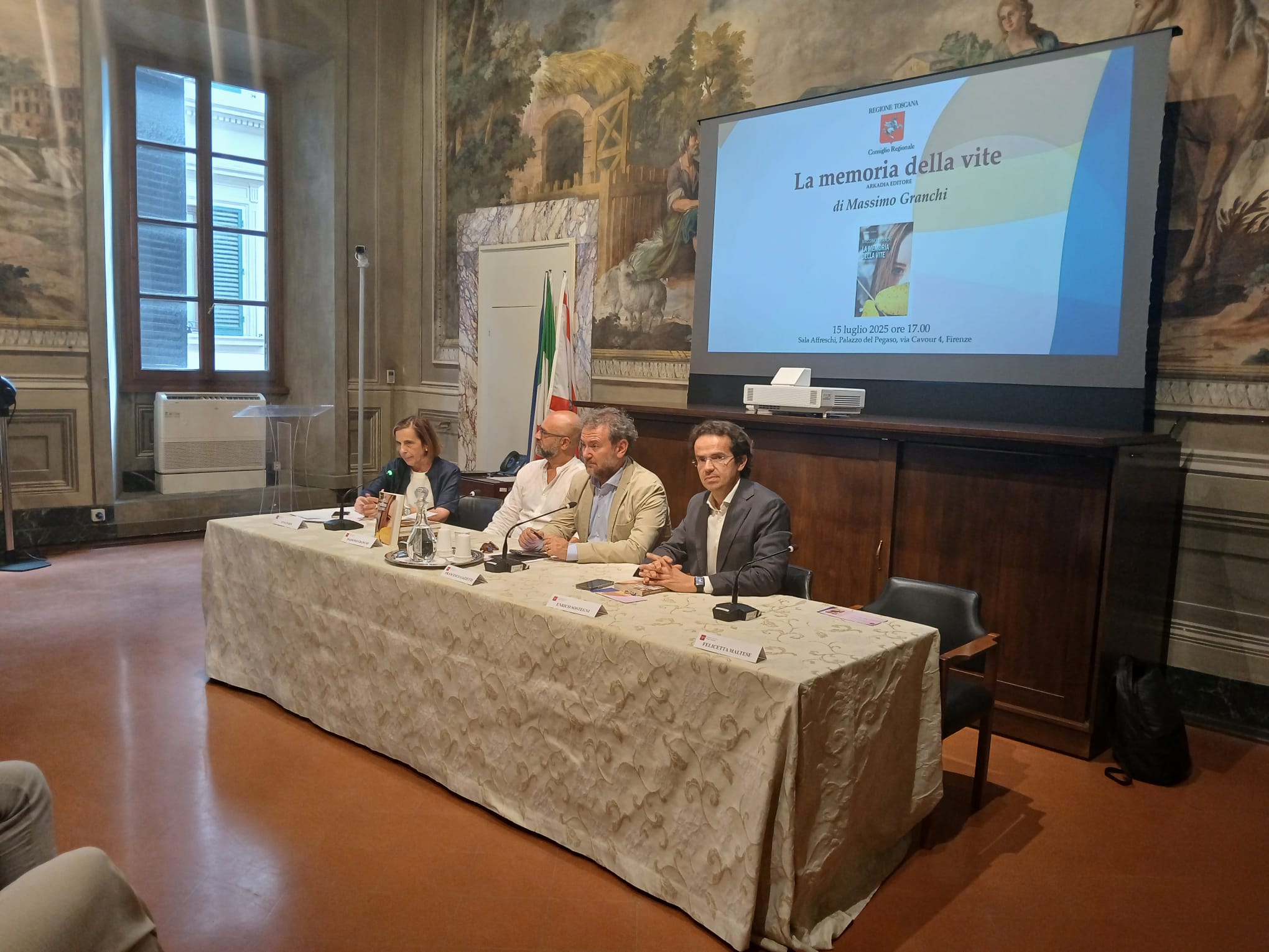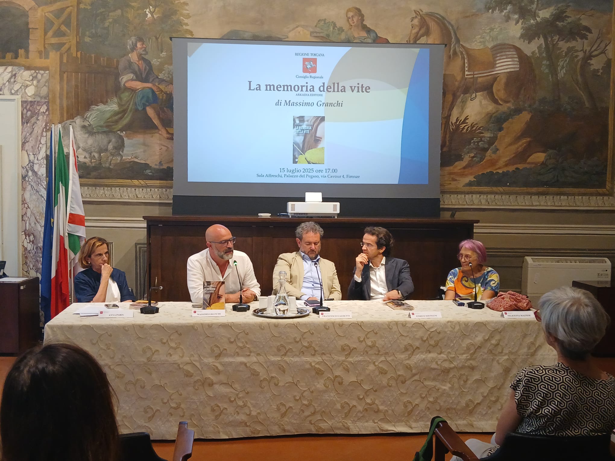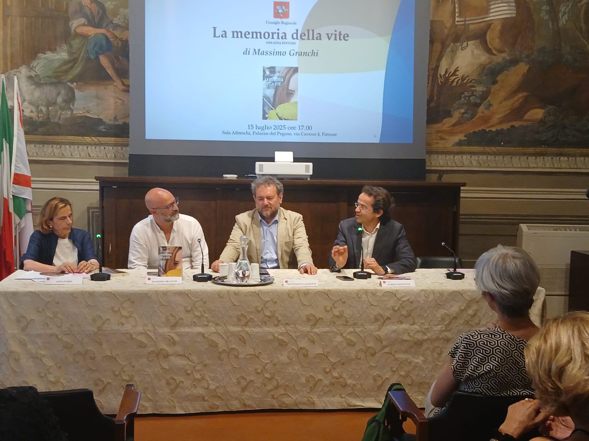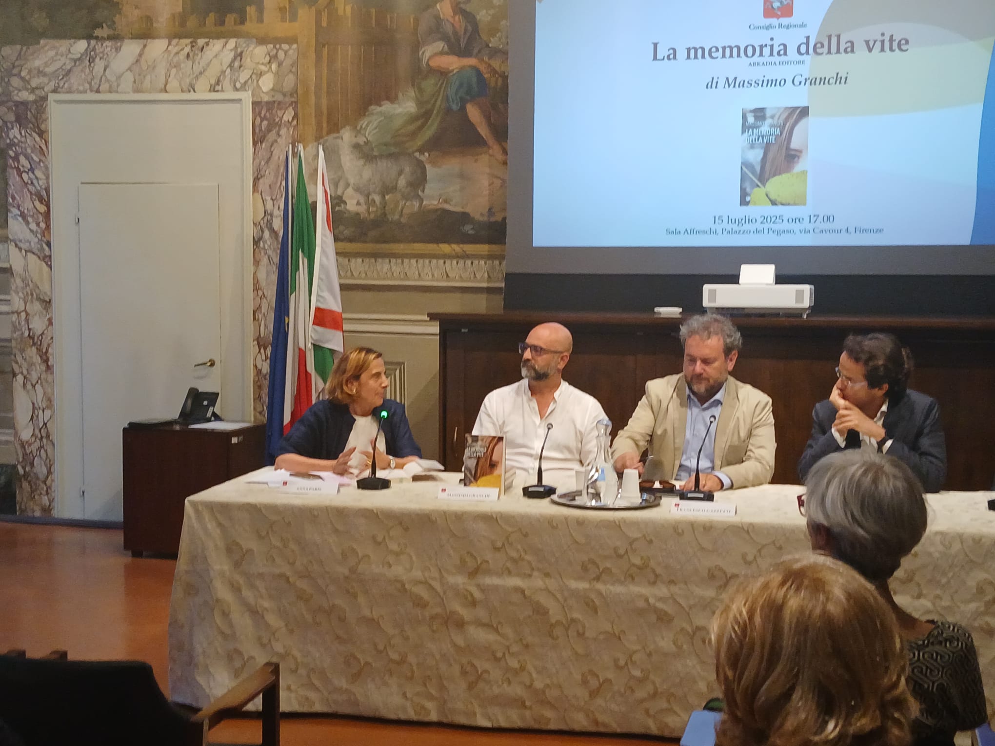 Firenze – Storia di tre vite che si intrecciano e si trovano insieme ad affrontare una tragedia. Si parla di letteratura e di ‘fine vita’ alla presentazione del romanzo di Massimo Granchi ‘La memoria della vite’, edito da Arkadia e uscito nel gennaio di quest’anno. Il libro è stato presentato ieri pomeriggio, martedì 15 luglio, nella sala degli Affreschi del palazzo del Pegaso. Sono intervenuti i consiglieri regionali Francesco Gazzetti, che fa parte dell’Ufficio di presidenza dell’Assemblea legislativa toscana, Anna Paris ed Enrico Sostegni e, insieme all’autore, Felicetta Maltese, consigliera dell’associazione Luca Coscioni di Firenze, attivista e coordinatrice dei volontari della cellula fiorentina dell’associazione.
