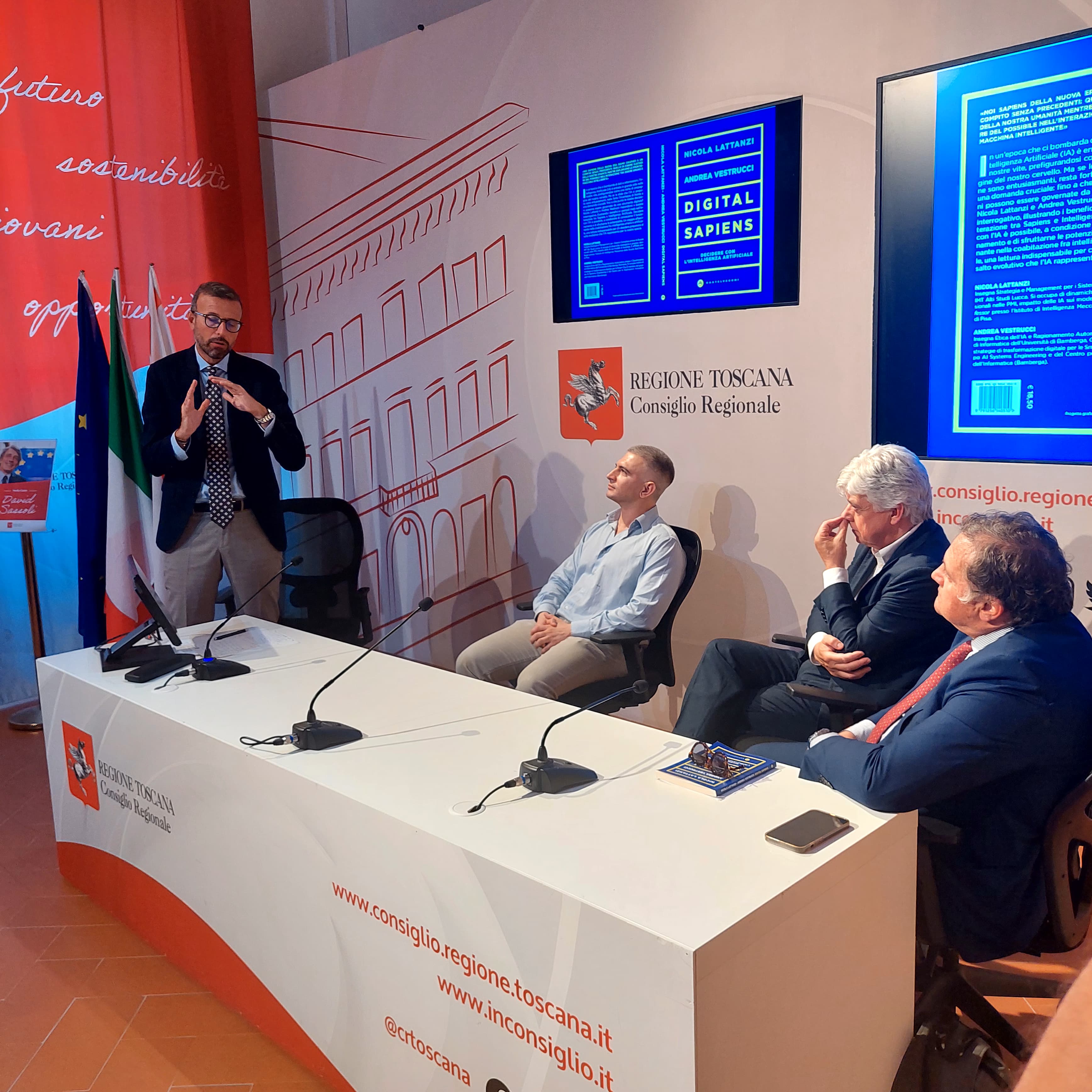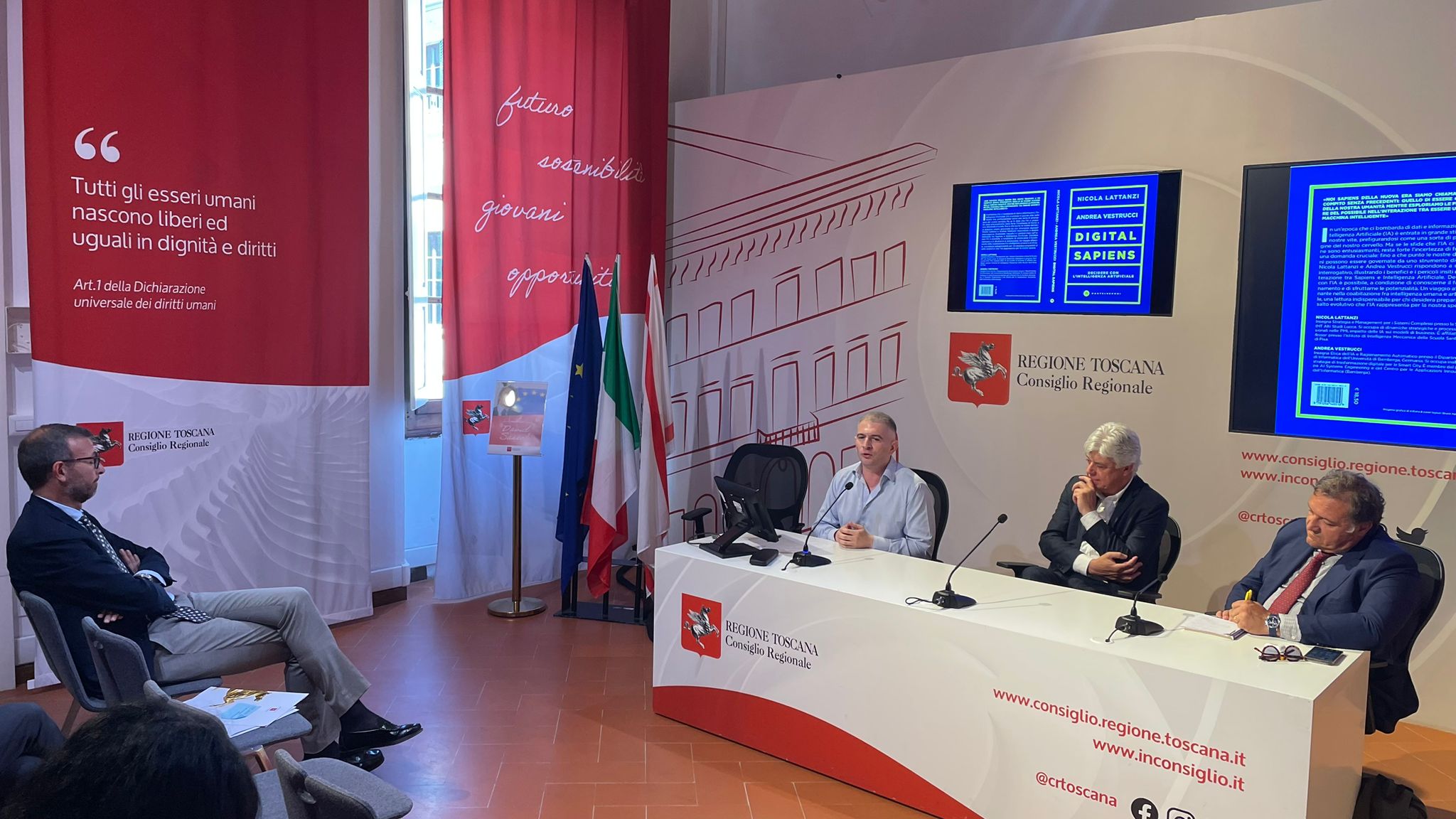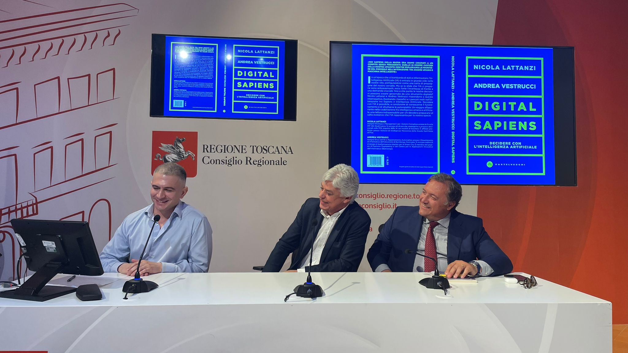 Firenze – Opportunità e problemi dell’intelligenza artificiale. È questa la sfida che abbiamo di fronte e di cui si occupa il libro “Digital Sapiens” (Castelvecchi) di Nicola Lattanzi e Andrea Vestrucci, presentato oggi a palazzo del Pegaso. Insieme agli autori sono intervenuti il presidente del Consiglio regionale, Antonio Mazzeo, e l’assessore regionale all’Economia e turismo, Leonardo Marras.