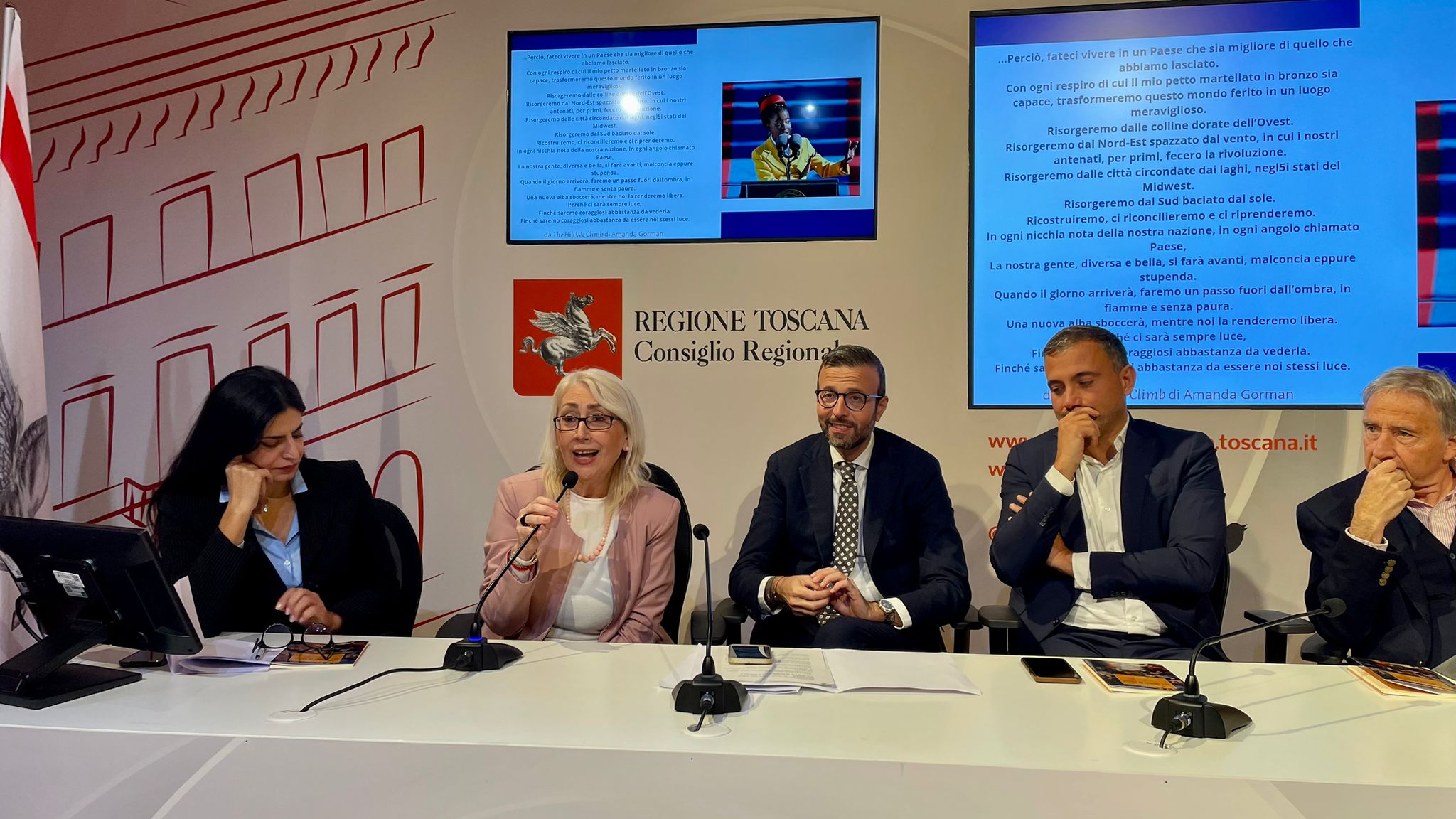 Gli interventi sono stati di Antonio Mazzeo, presidente dell’Assemblea legislativa toscana; Giacomo Bugliani, consigliere regionale; Marina Pratici, autrice; Jacopo Chiostri, presidente dell’associazione ‘Amici delle Giubbe Rosse’; Denata Ndreca, giornalista e attivista per i Diritti umani.