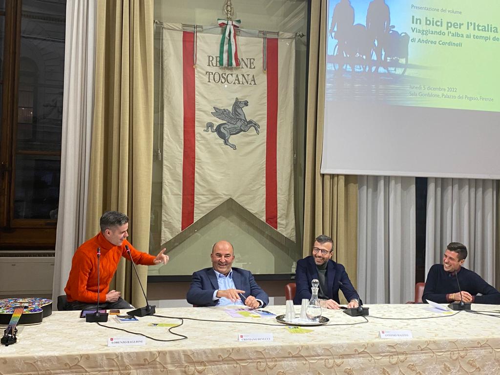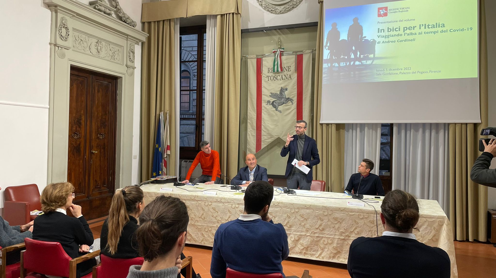 Firenze – Due fratelli, due biciclette e un viaggio partito da Figline e Incisa Valdarno per raccontare l’Italia dal monte Bianco a Bari, da Venezia a Napoli. E’ questa l’esperienza unica che ci trasmette Andrea Cardinali nel volume ‘In bici per l’Italia. Viaggiando l’alba ai tempi del Covid-19’. Il libro è stato presentato lunedì 5 dicembre nella sala Gonfalone a palazzo del Pegaso.