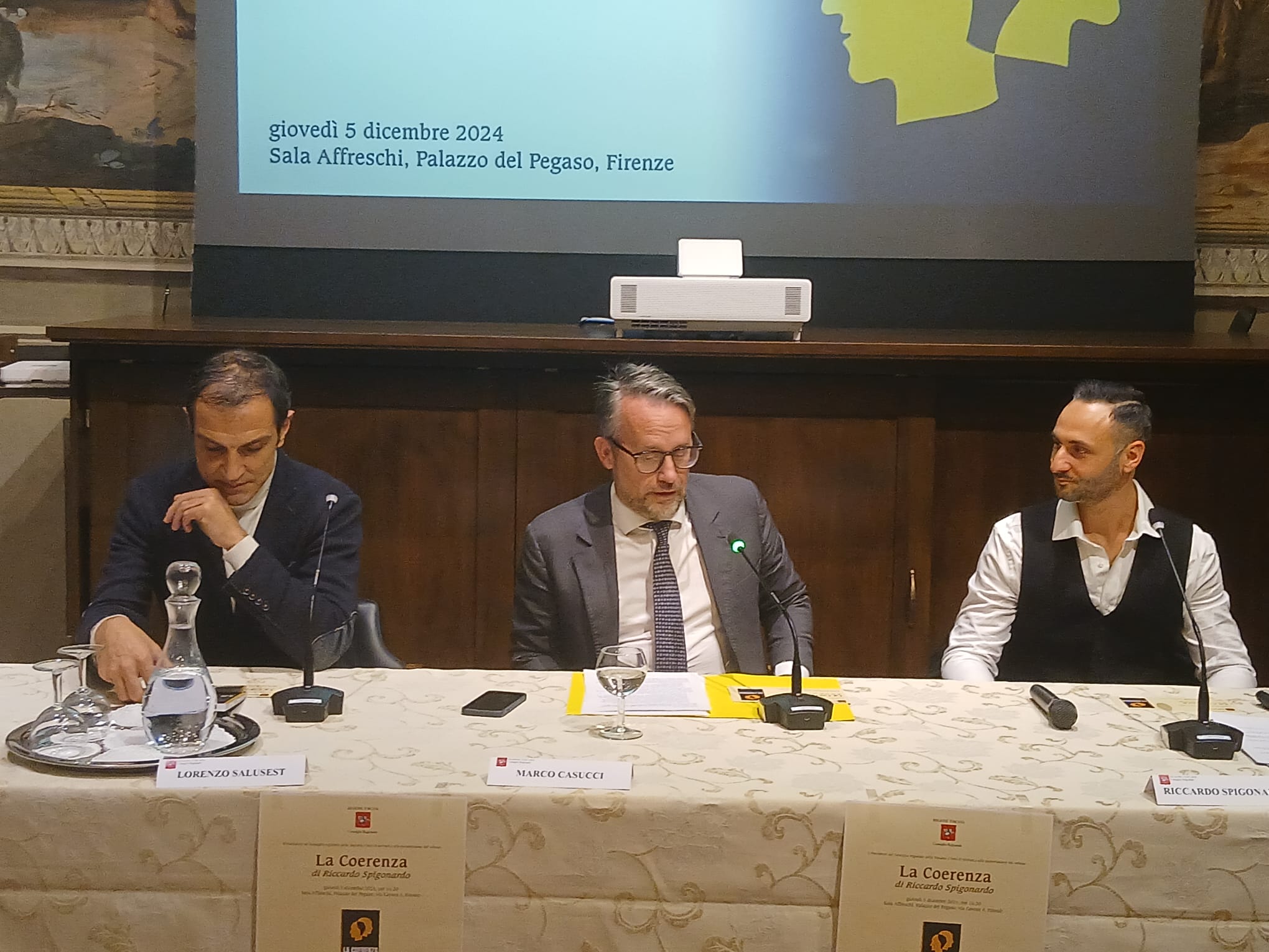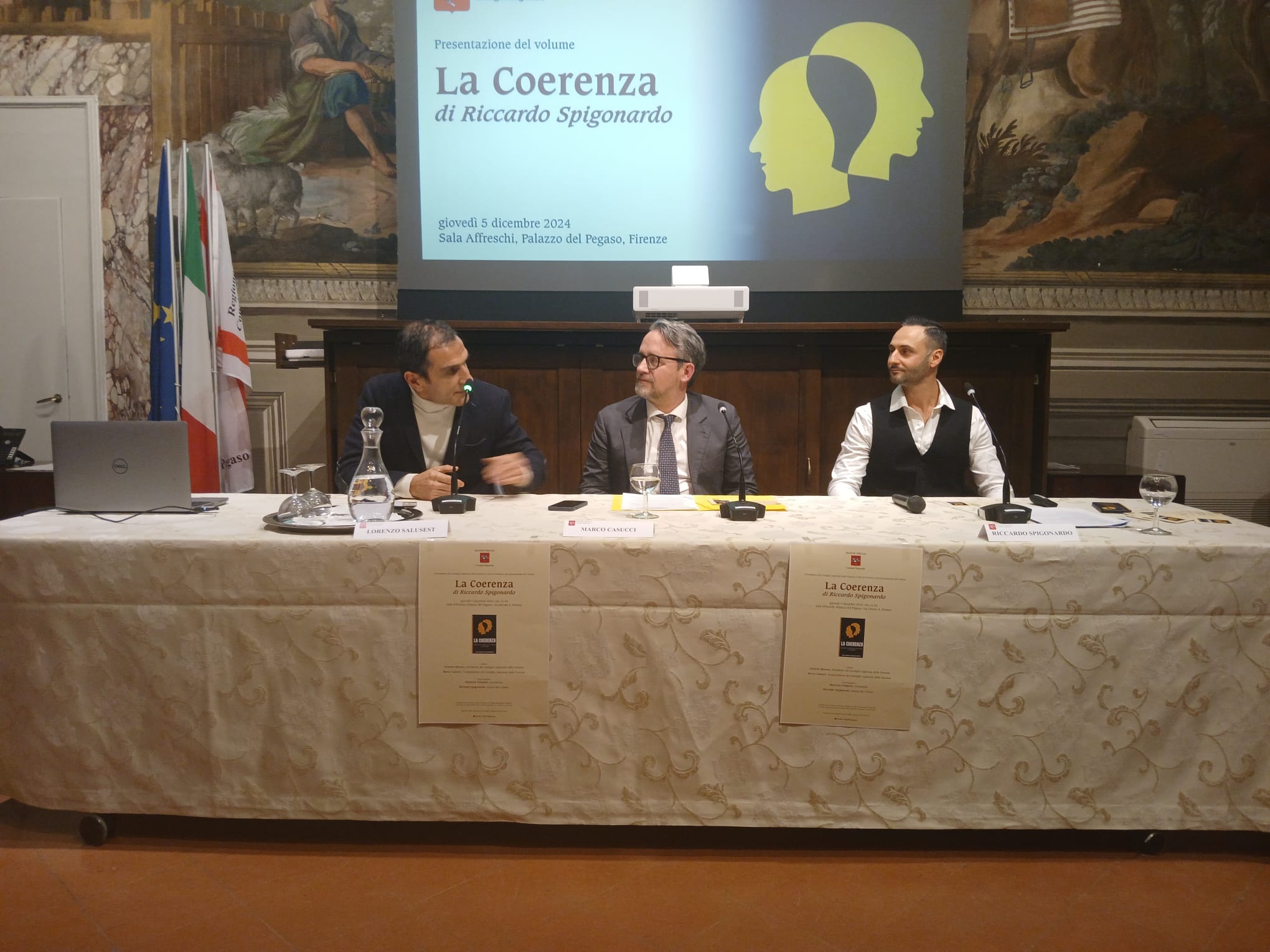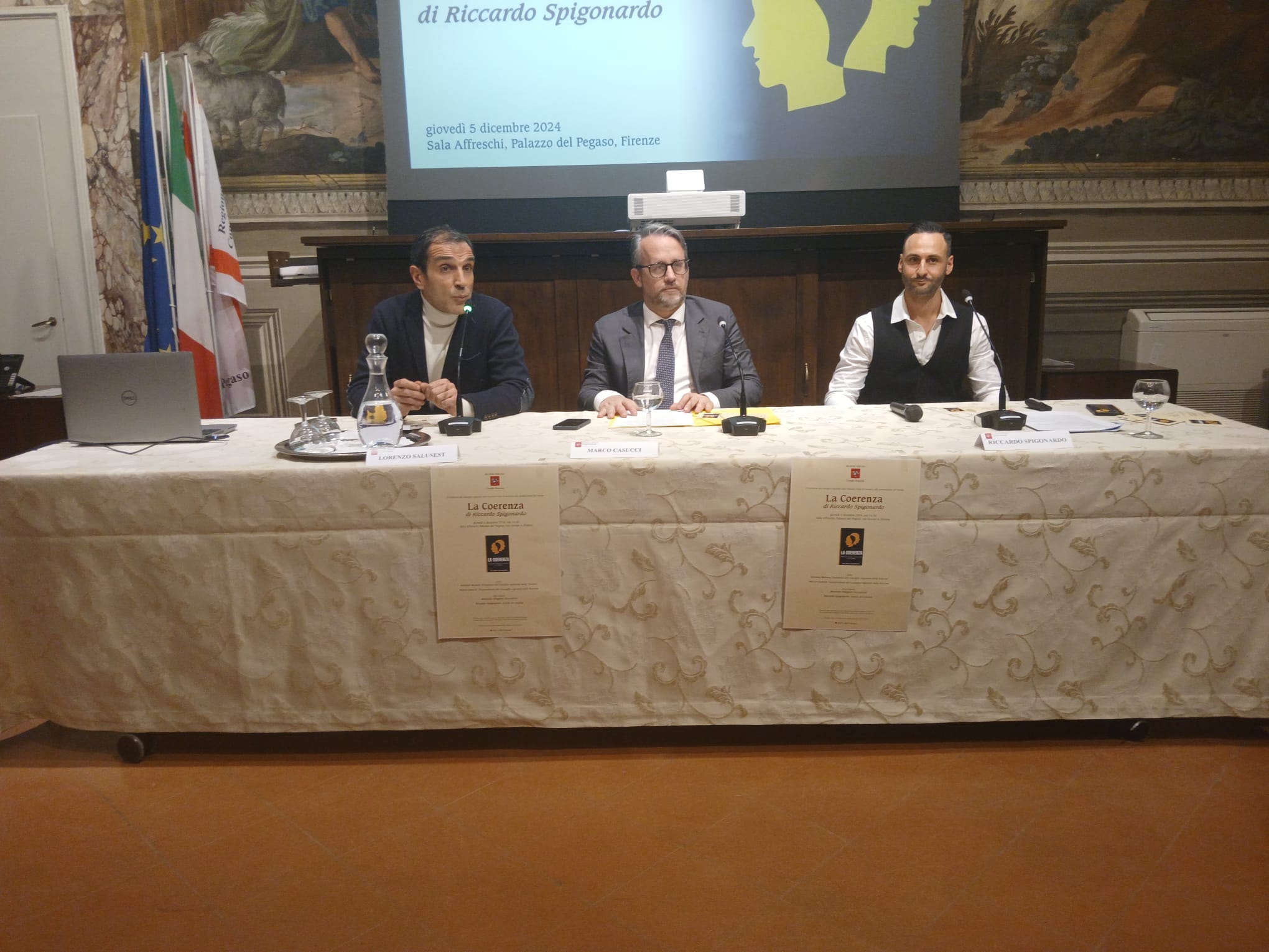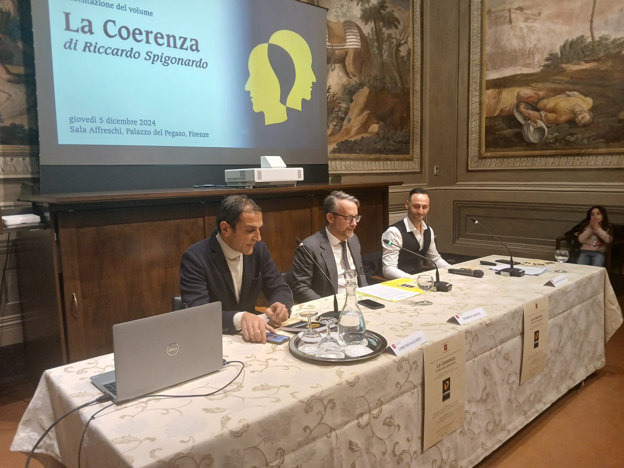 Firenze – Spesso le persone si trovano in situazioni in cui vengono criticate o subiscono tentativi di danneggiamento da parte di altre persone; questo anche a dispetto dell’impegno che le persone mettono in ciò che fanno. Sono situazioni che possono originare momenti bui e in quei momenti bui, quando le parole feriscono e le critiche ingiuste pesano, è essenziale mantenersi coerenti alle proprie idee e ai propri obiettivi. È questo il messaggio del libro “La coerenza. Mantenere l’Integrità tra le Critiche e l’Autostima”, scritto da Riccardo Spigonardo e presentato ieri pomeriggio nella sala degli Affreschi di palazzo del Pegaso. A fare gli onori di casa, il vicepresidente del Consiglio regionale, Marco Casucci. Ha moderato l’incontro il giornalista Lorenzo Salusest.