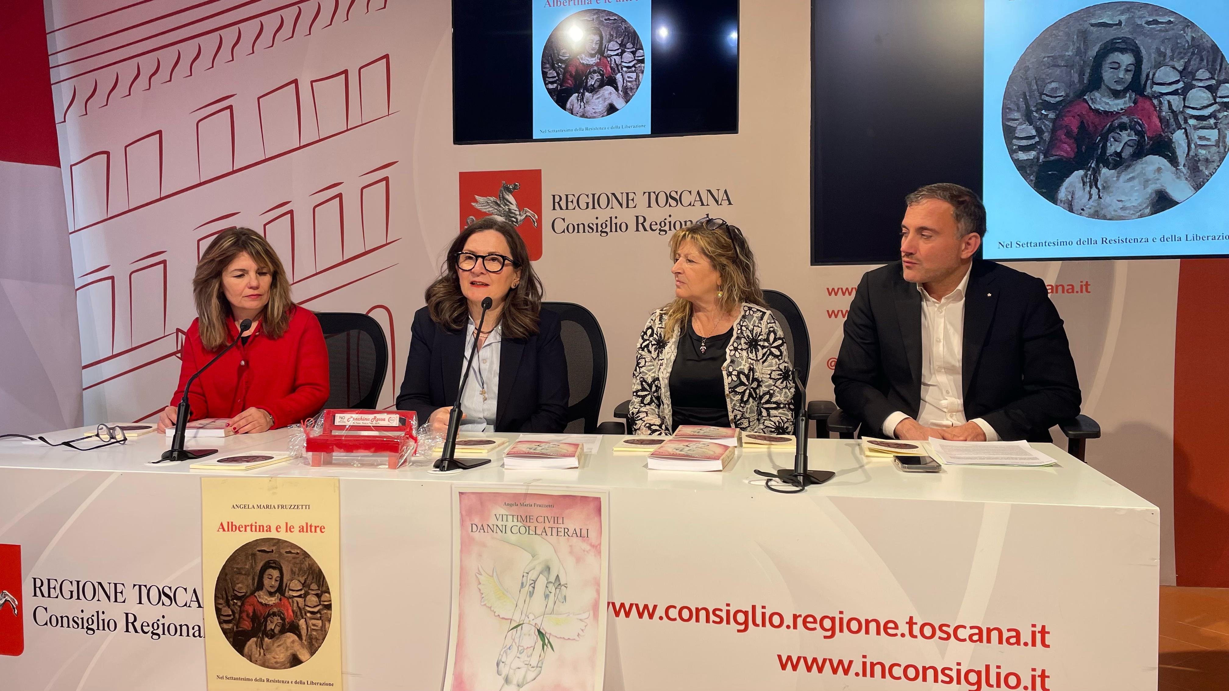 Firenze – Albertina e le altre’ di Angela Maria Fruzzetti è un libro che racconta le storie di donne sopravvissute agli eccidi di Vinca, Forno, Guadine e delle Fosse del Frigido. Il volume scritto per il settantesimo anniversario della Liberazione è stato presentato durante una conferenza stampa nel Media Center Sassoli di palazzo del Pegaso.  Con l’autrice erano presenti la presidente della commissione Cultura dell’Assemblea legislativa toscana Cristina Giachi, il consigliere regionale Giacomo Bugliani, l’avvcato Chiara Diamanti della commissione Pari Opportunità comunale.