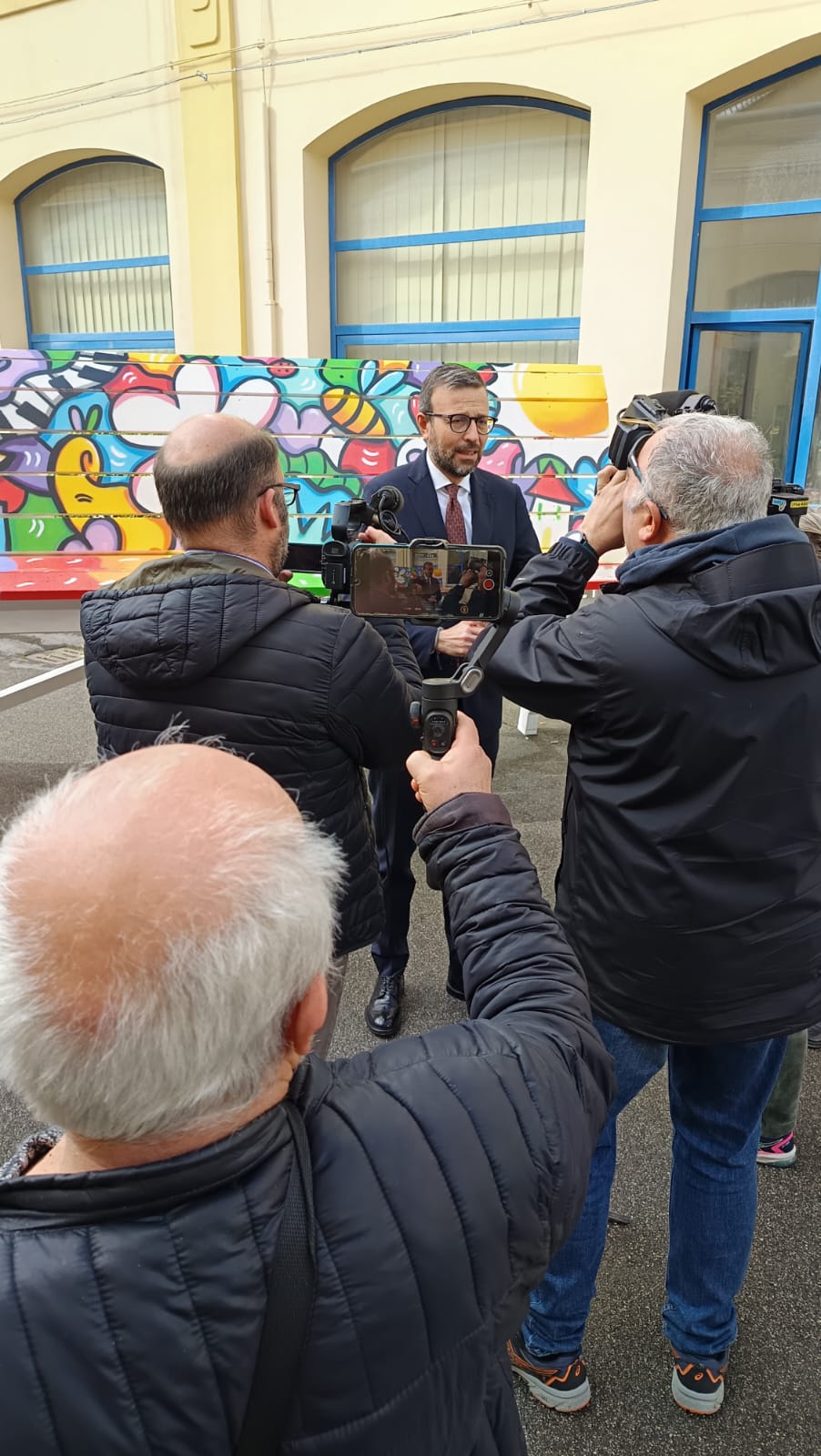 “L’esperienza poetica di Skim racconta una visione del mondo fatta di esuberanza, slancio, colore che compongono un mosaico ricchissimo di suggestioni – ha detto l’assessore alla cultura del comune di Pontedera Francesco Mori – e che raggiunge dei risultati estetici di assoluto rilievo. Vorrei ringraziare anche la galleria Casa d’Arte San Lorenzo che ha reso possibile questa mostra che diventa un segnale importante per la nostra città. Una tela ricca di segni e linguaggi che raccontano una vita positiva che diventa il ritratto vitale della nostra città.”