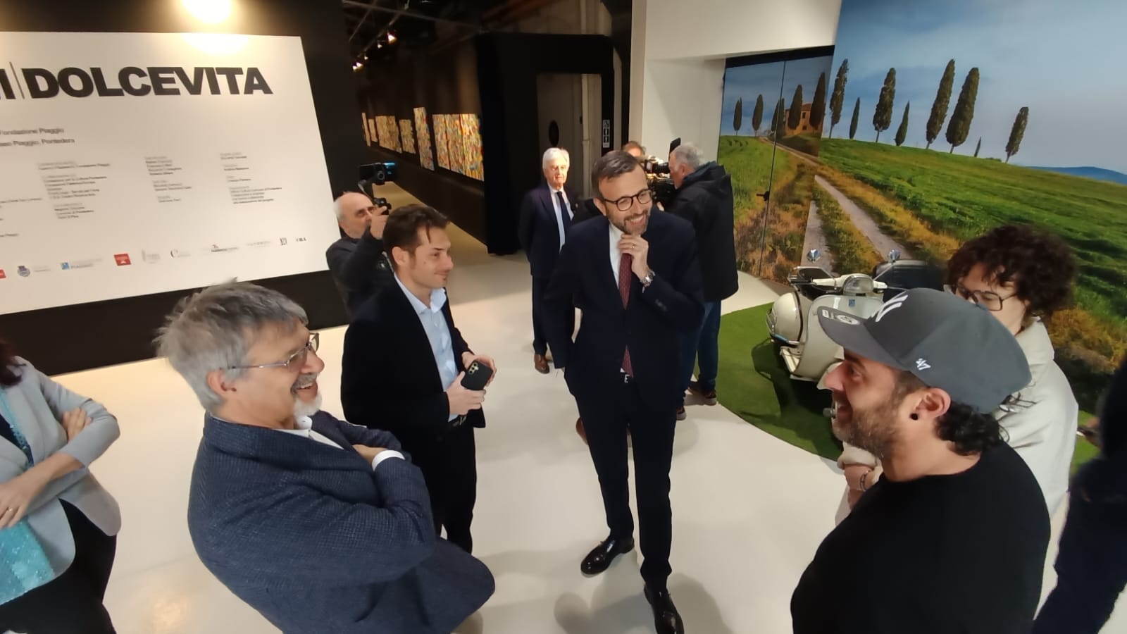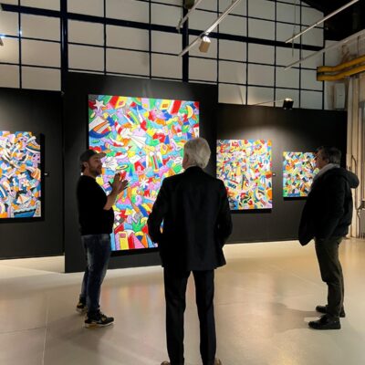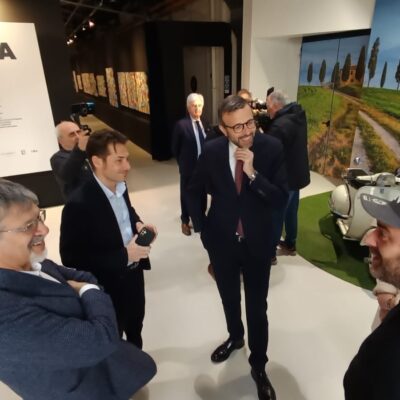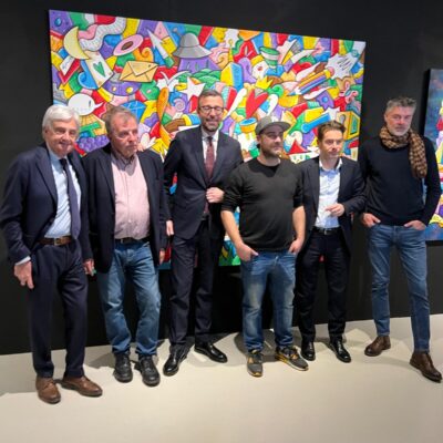 Pontedera – Il presidente del Consiglio regionale, Antonio Mazzeo, ha visitato la mostra di Skim “Dolcevita” in corso al Museo Piaggio di Pontedera. Per questa iniziativa, promossa dalla Fondazione Piaggio, dal Comune di Pontedera, dalla Regione Toscana e dalla Fondazione per la Cultura Pontedera, oltre alla consueta produzione dell’artista, sono esposte una serie di opere inedite che rendono omaggio agli iconici veicoli della Piaggio, dalla Vespa all’Ape, fino al Ciao.  Le opere di Skim, caratterizzate dal suo distintivo “Kaos Armonico”, riflettono la sua ricerca pittorica e interpretano storie e sogni, analizzando la quotidianità e traducendola in forme artistiche che sorprendono per il contrasto tra l’esplosione di colori e i messaggi profondi che veicolano: composte da un accumulo di elementi differenti, si uniscono in modo armonioso, raccontando storie che possono riflettere anche le esperienze personali di ciascun spettatore. Ogni opera invita ad un viaggio unico, dove osservare e interpretare i dettagli può dare vita a moltissime narrazioni. L’arte di Skim si contraddistingue per la sua attrattiva e il suo fascino, e il suo motto “In Color We Trust” sintetizza il suo approccio creativo, che si sta affermando attraverso mostre, performance e opere pubbliche.