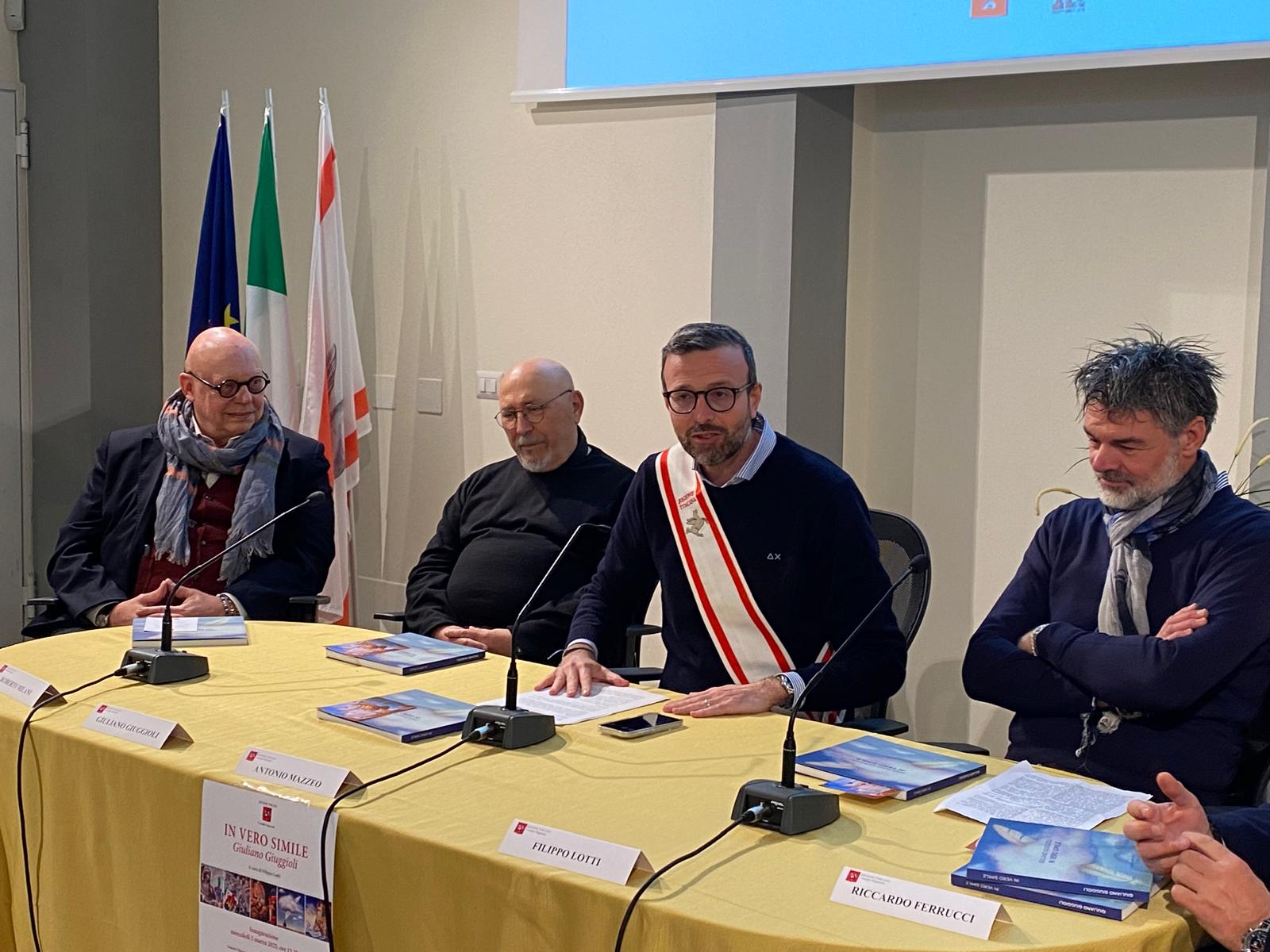 Il curatore della mostra Filippo Lotti ha evidenziato come Giuliano Giuggioli sia “un’artista surreale e simbolico, che dipinge da oltre 50 anni e che esprime in questa mostra il pieno della sua maturità”. “Il suo lavoro – ha proseguito – si muove tra il sogno e la patafisica, la scienza delle soluzioni immaginarie. Non solo immagina e sogna, ma traduce queste visioni in opere di straordinaria qualità tecnica”.
