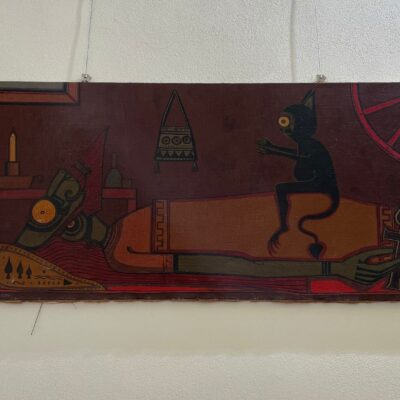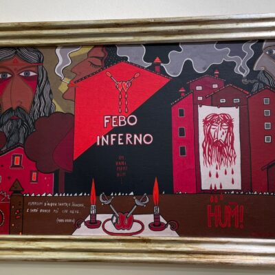 “Artista poliedrico attraverso la sperimentazione e i numerosi viaggi all’estero – ha scritto in catalogo Antonio Mazzeo presidente del Consiglio regionale – ha sviluppato la sua arte in molteplici direzioni, dalla xilografia alla pittura ad olio, approdando con la maturità alla scultura in legno e ceramica. Sandro Giuliani utilizza il segno artistico per dare forma a ciò che non si vede, ricercando i legami profondi che mettono in connessione mondi lontani. Il significato delle sue opere va ben oltre la semplice rappresentazione visiva. Le sue opere sono dominate dai colori rosso e nero, a rappresentare lo scontro tra il bene e il male, restituito in quadri ricchi di simboli e immagini trasfigurate in maniera onirica e, nell’accezione positiva del senso, anche stravagante.”