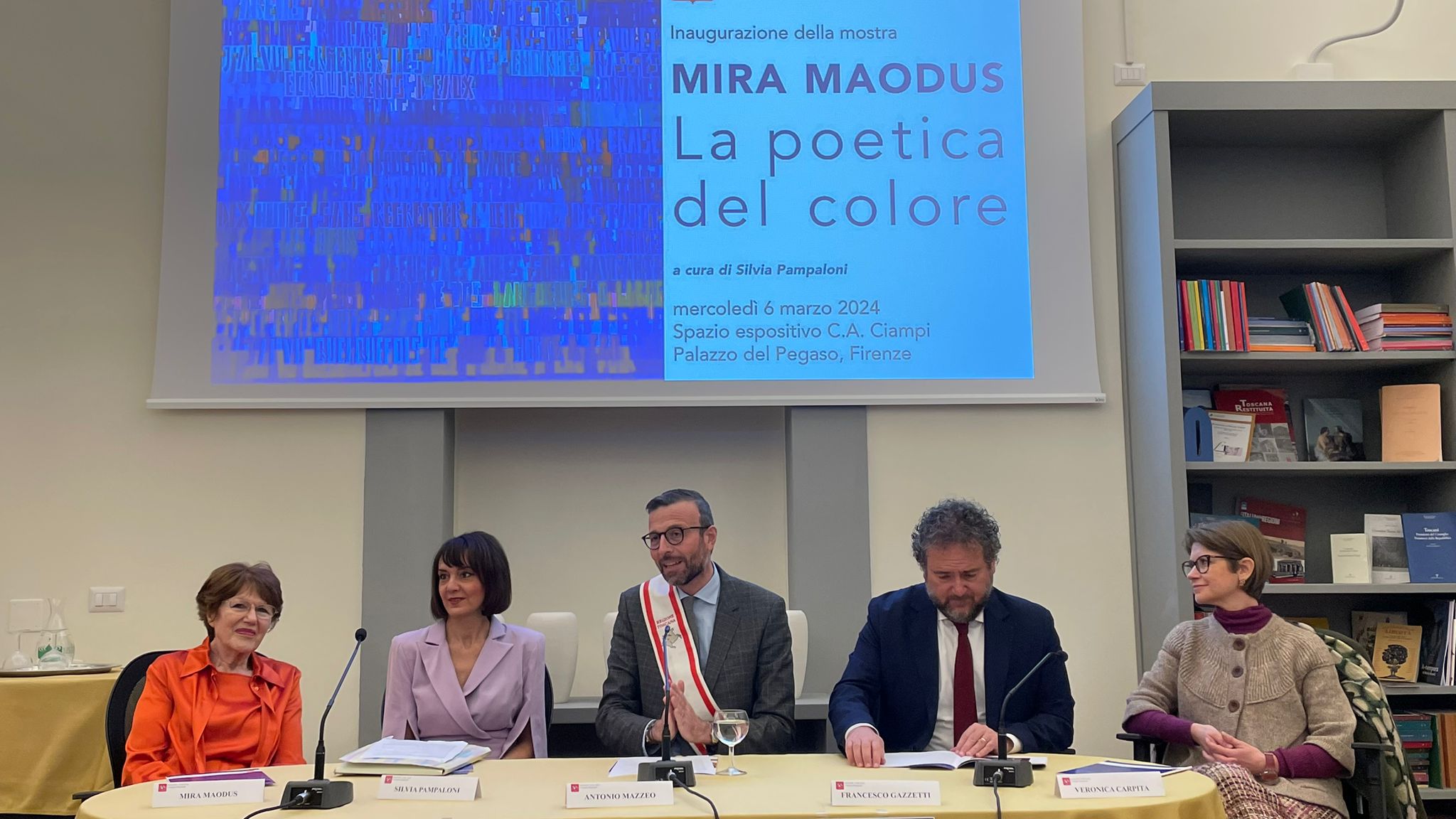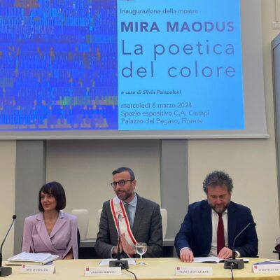 Firenze – Si è inaugurata oggi, negli spazi del Centro Expo di palazzo del Pegaso, la mostra “Mira Maodus, la poetica del colore” dedicata alla artista francese, di origine serba, Mira Maodus. La mostra, curata da Silvia Pampaloni, proseguirà fino al 16 marzo 2024. Alla presentazione sono intervenuti il presidente del Consiglio regionale della Toscana, Antonio Mazzeo, il consigliere segretario dell’Ufficio di presidenza, Francesco Gazzetti, la storica dell’arte Veronica Carpita, la curatrice e l’artista.