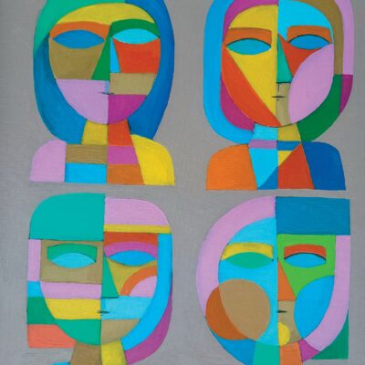 - Facce colorate (ocra), 2024, olio su tela, 50×40