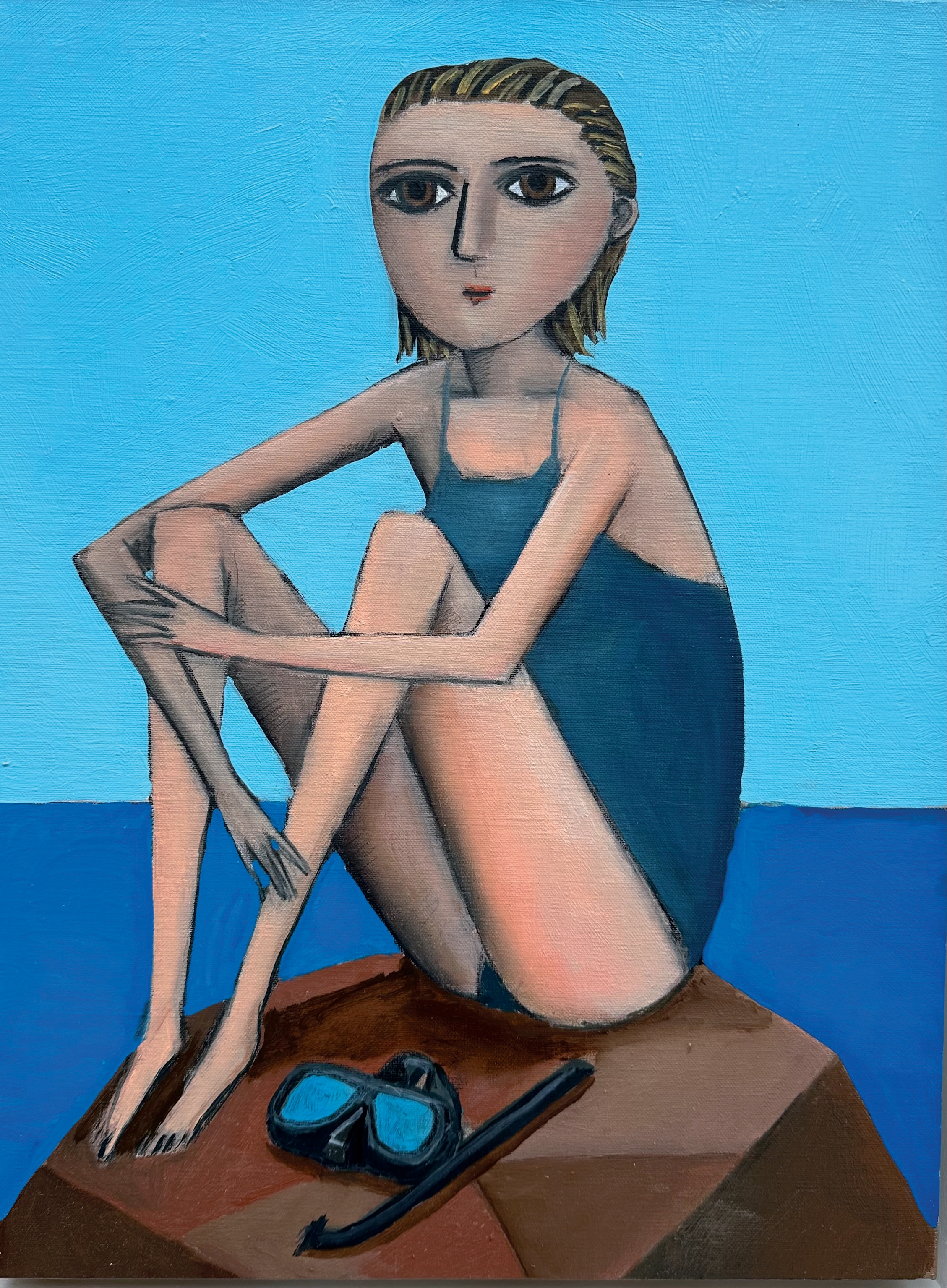 - Ragazza su scoglio, 2022, 50×40, olio su tela