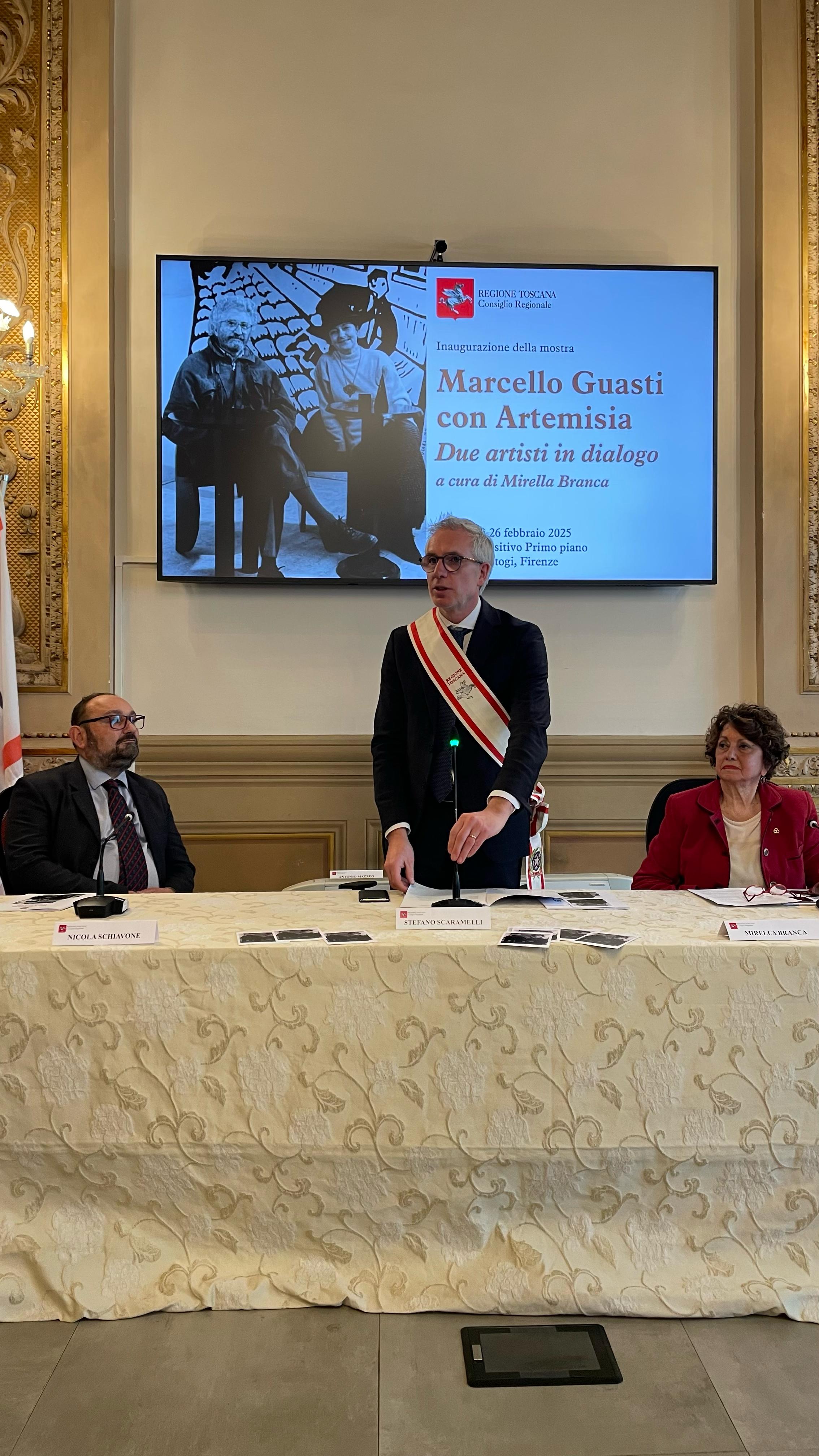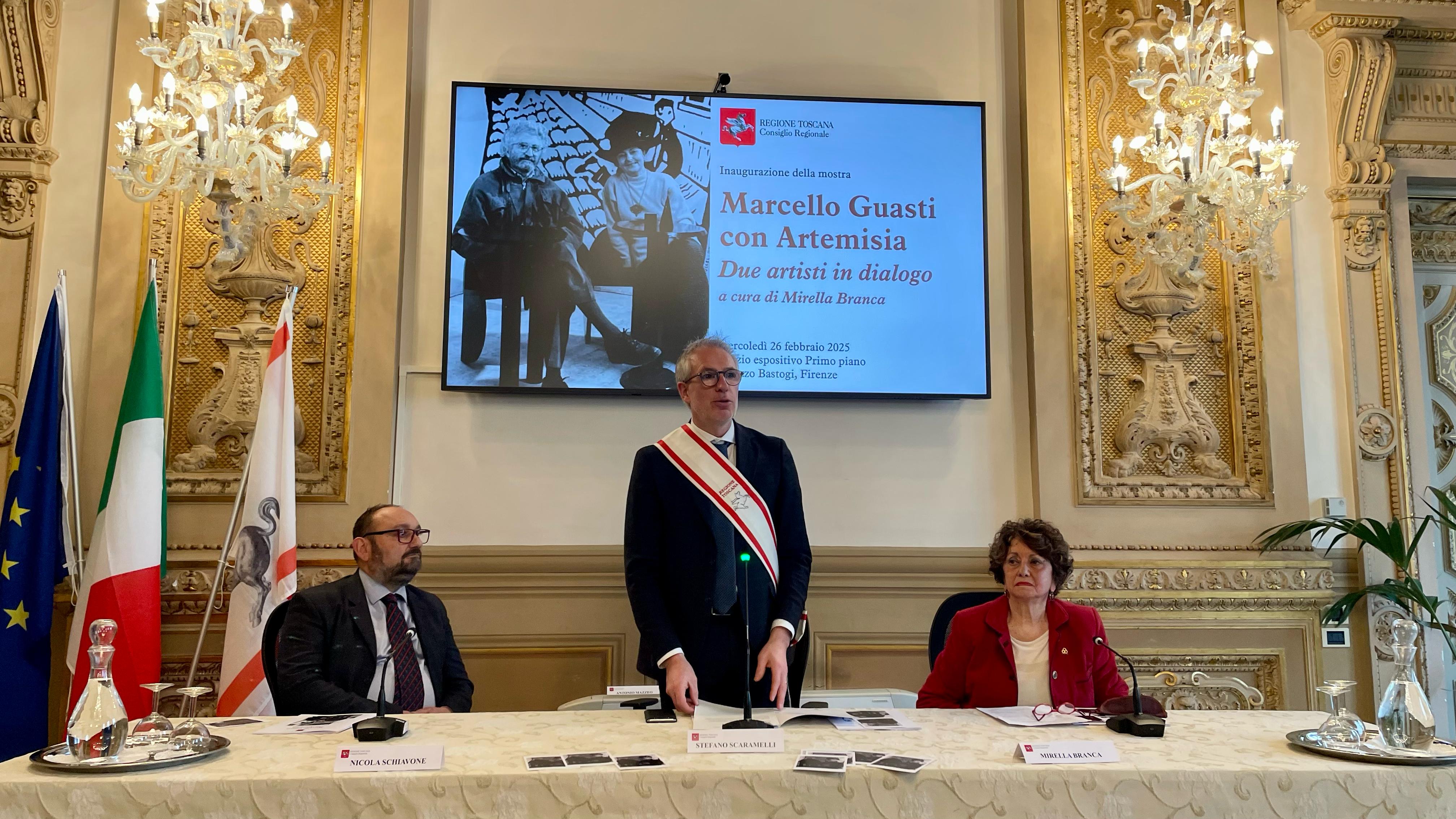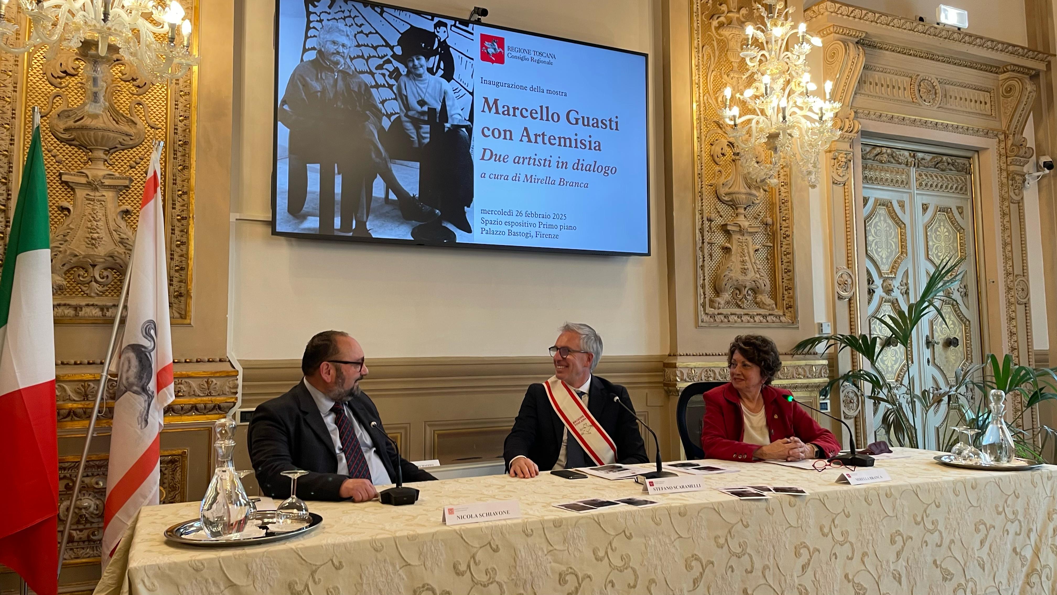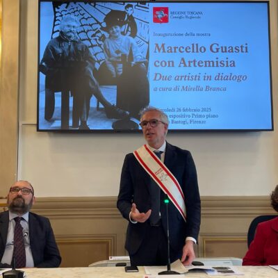 “Questa mostra rappresenta non solo un contributo dovuto a due grandi artisti quali sono stati Marcello Guasti e Artemisia Viscoli – scrive in catalogo Antonio Mazzeo presidente del Consiglio regionale – ma anche un’adeguata rappresentazione di uno dei tratti caratteristici del contributo della Toscana alla vita culturale e artistica del nostro Paese. La Toscana infatti soprattutto nel secolo scorso si è distinta come luogo privilegiato di discussione e di dialogo intorno all’arte e alla cultura. La loro Casa di Terzano, nella campagna di Bagno a Ripoli, da cui provengono molte delle opere esposte in questa mostra, è stata punto di incontro per artisti e intellettuali.”