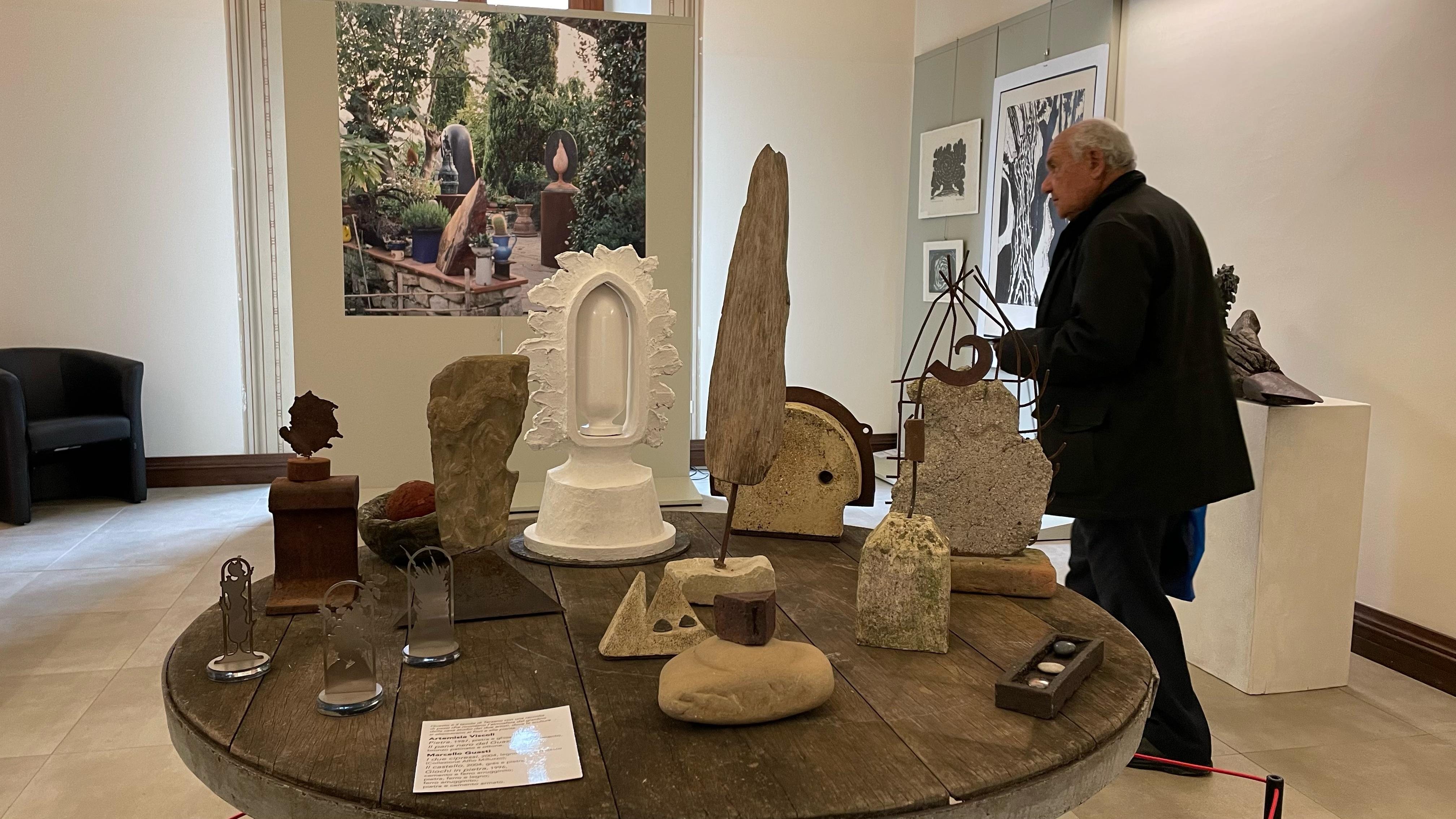 “Una mostra incentrata sulla memoria – ha detto la storica dell’arte Mirella Branca – e sul ricordo della loro casa di Terzano che, nel secondo novecento, era luogo d’incontro per artisti e intellettuali. Le opere di Marcello Guasti e Artemisia Viscoli che vengono presentate vanno dall’inizio degli ottanta al secondo decennio del duemila. È un dialogo tra le loro opere con particolare riferimento alla scultura, alle xilografie, ai libri d’artista. In questo confronto di parole, poesia, immagini che c’erano a Firenze in quegli anni attorno alla figura del poeta Mario Luzi.