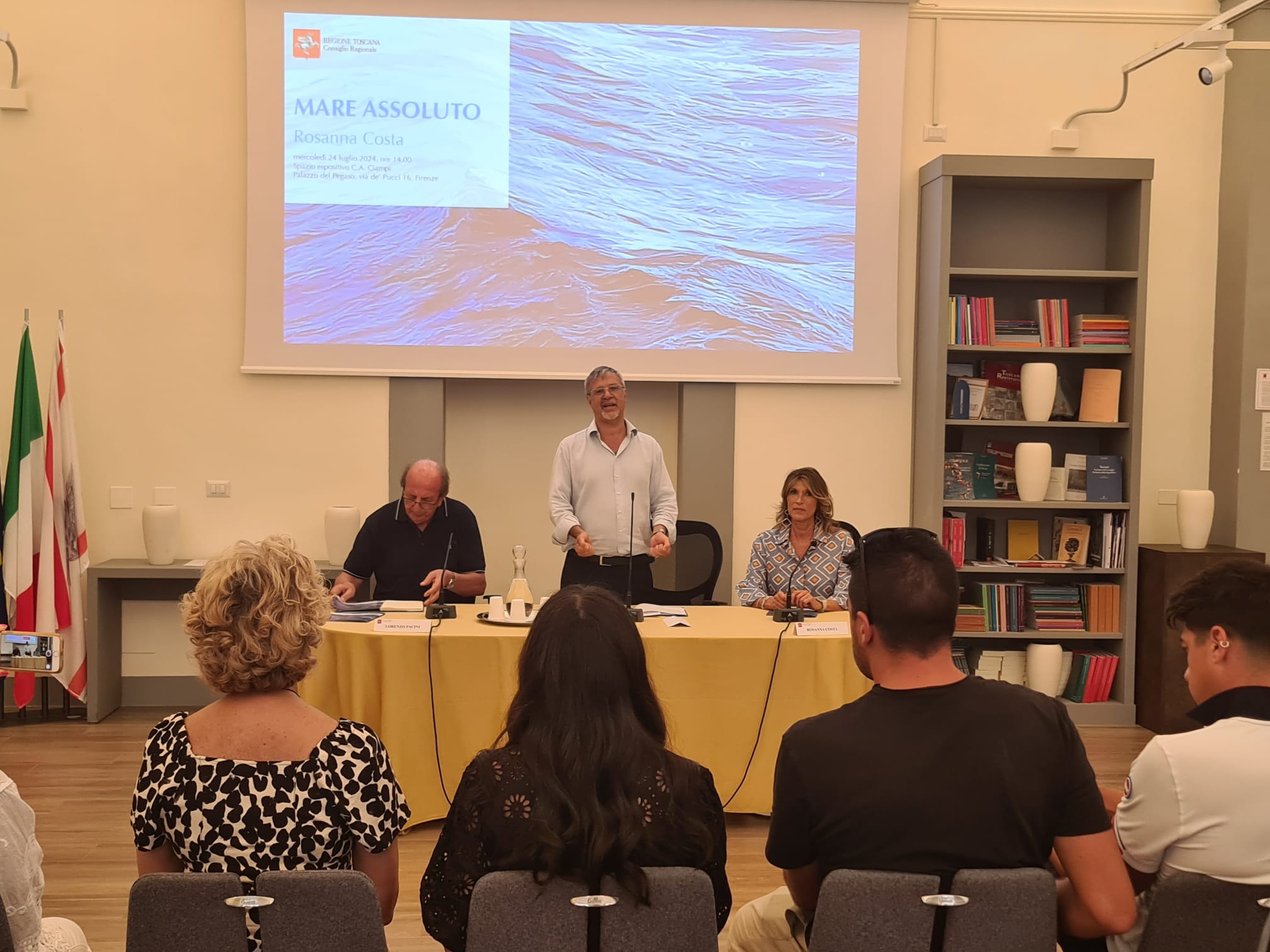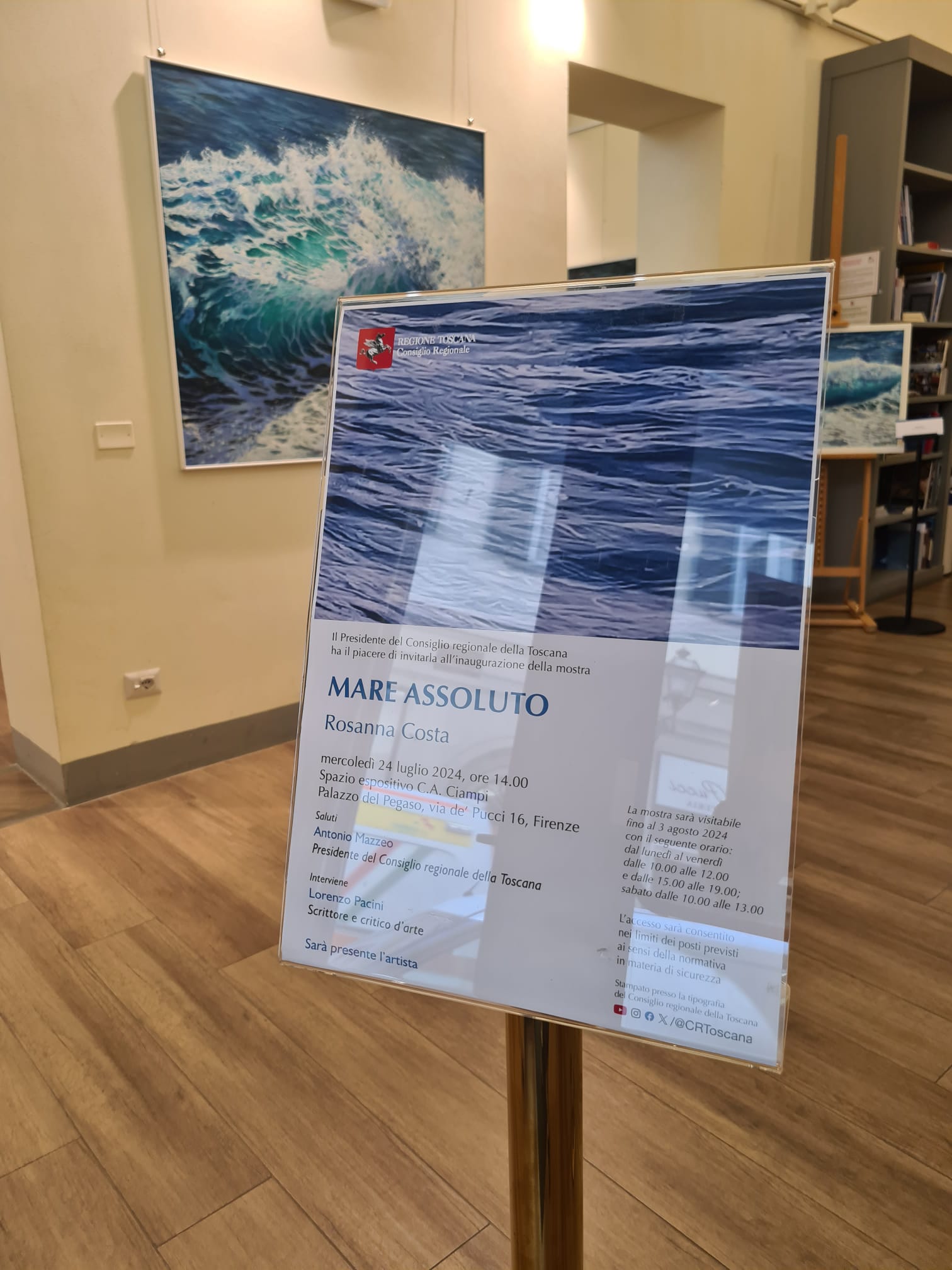 Il presidente del Consiglio regionale Antonio Mazzeo nel catalogo della mostra scrive che l’opera di Rosanna Costa “ci immerge nello spazio sconfinato del mare, nell’immenso blu che ci affascina e ci attrae. Uno spettacolo che fa parte della nostra esperienza perché appartiene alla nostra terra, alla Toscana”. E più avanti aggiunge: “Possiamo dire che ciascuno ritrova nel mare che contempla le paure e le speranze, le gioie e i dolori, che segnano la vita di ciascuno. Il mare è il grande specchio che aiuta a conoscerci in profondità”.