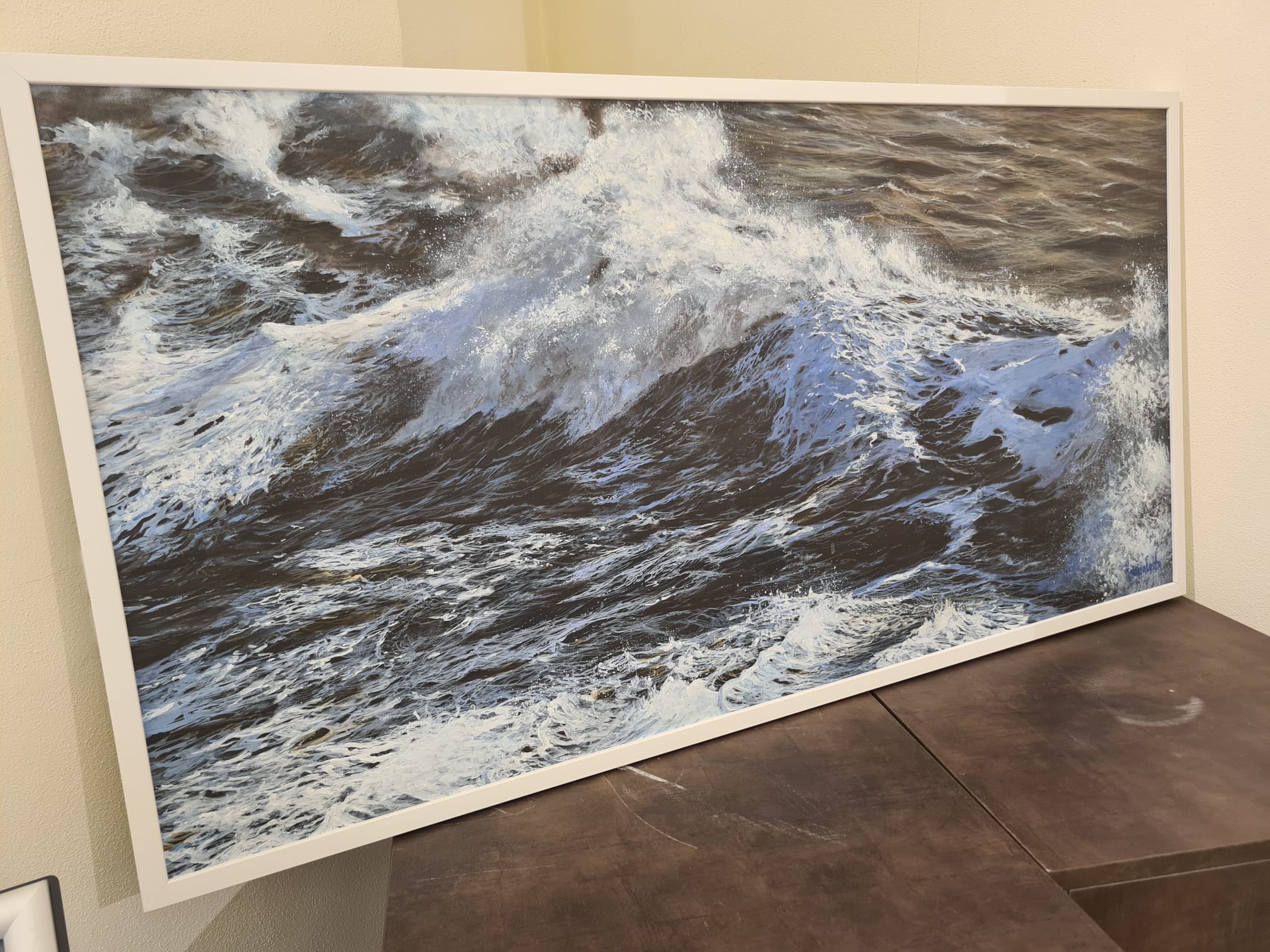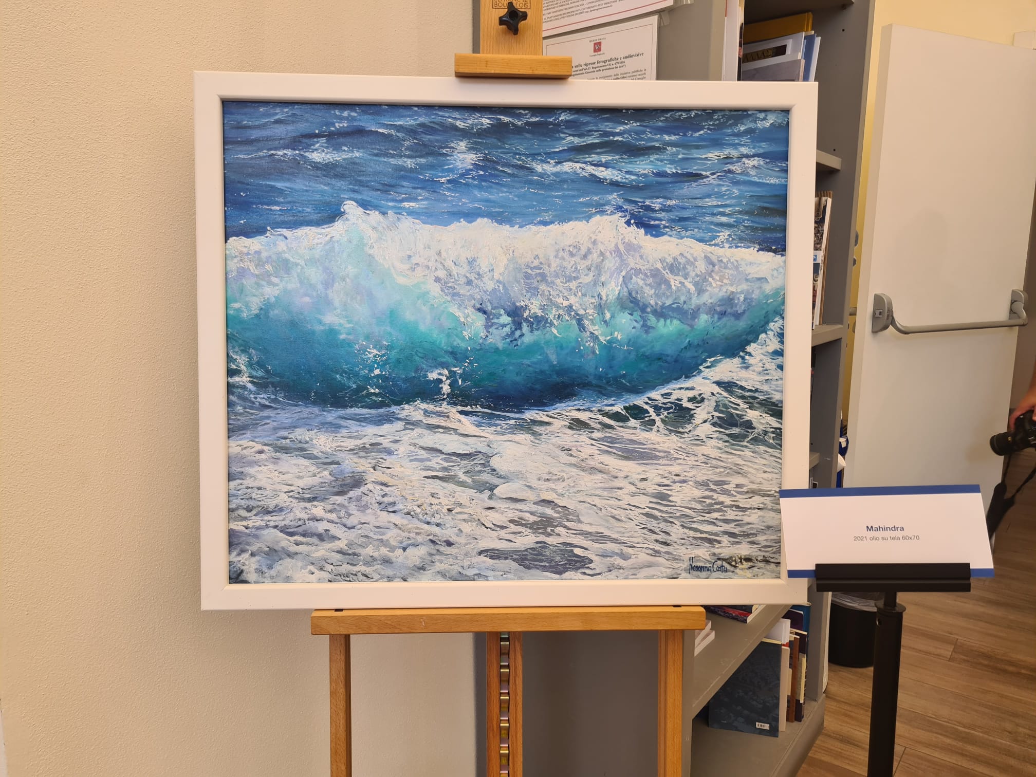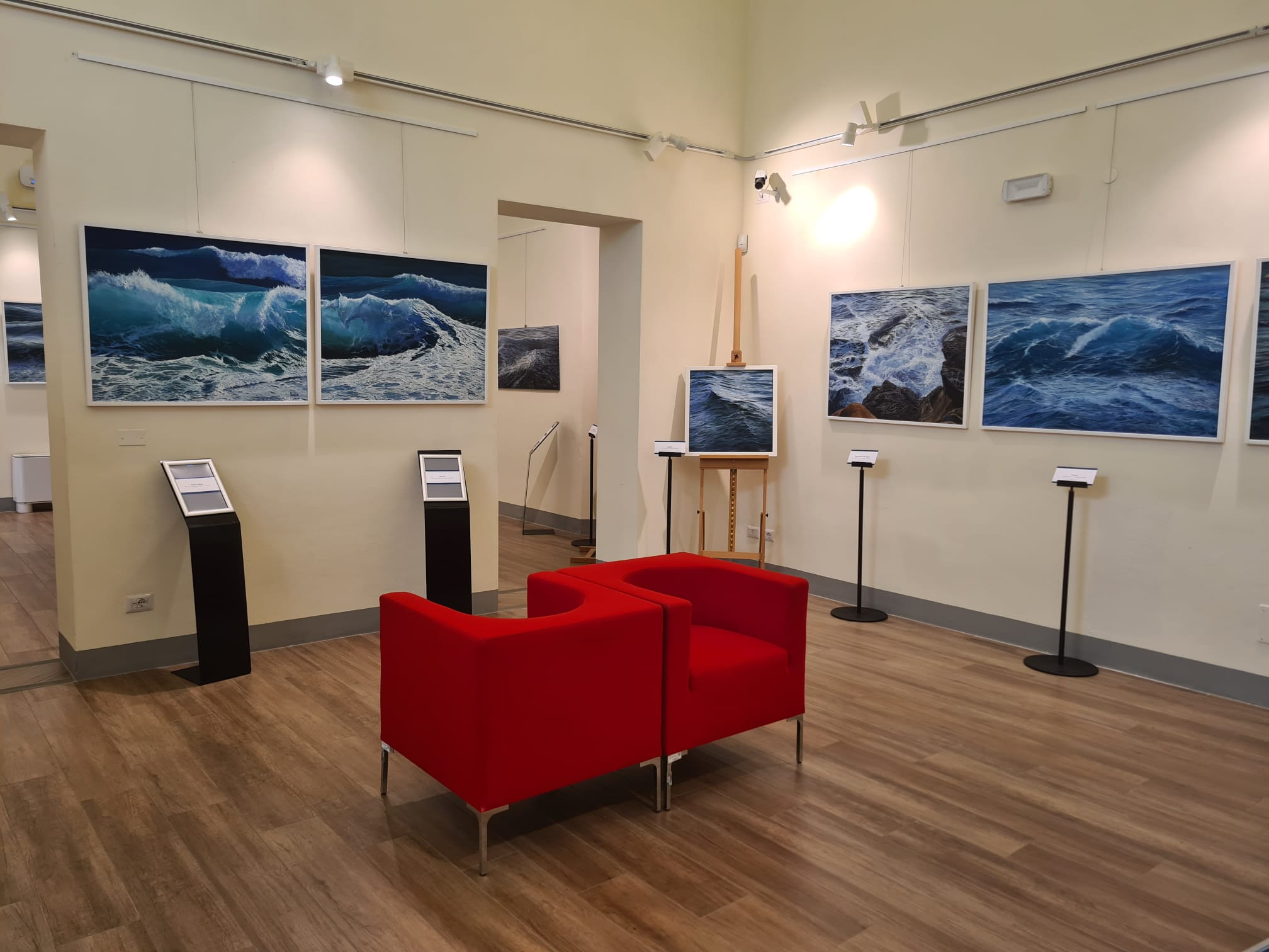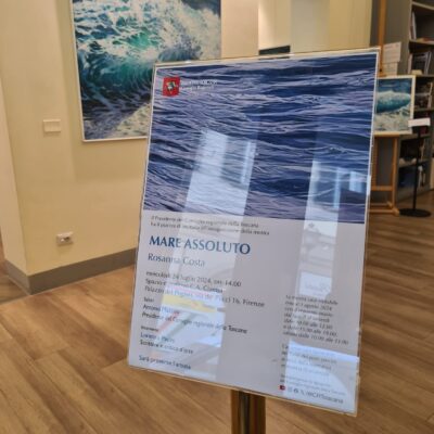 Firenze – Il mare come unico elemento di rappresentazione sulla tela. Senza figure umane, senza cieli, senza barche. Solo il mare e il suo movimento, spesso mosso, a volte tempestoso. Come a voler rappresentare, attraverso di esso, l’animo umano, quasi mai del tutto tranquillo e pacificato. È questo il tema di fondo di “Mare assoluto”, la mostra di pitture di Rosanna Costa, artista di Ponsacco, che si è inaugurata oggi pomeriggio nel centro espositivo C.A. Ciampi del Consiglio regionale. Nell’ultima sala, in realtà, sono esposti anche dipinti con altri soggetti (alcuni autoritratti, scorci di spiaggia, fiori, ambienti con sedie) e che però riprendono il tema di fondo dell’inquietudine in cui si dibatte il genere umano. Al taglio del nastro, con l’artista, era presente lo scrittore e critico d’arte Lorenzo Pacini.