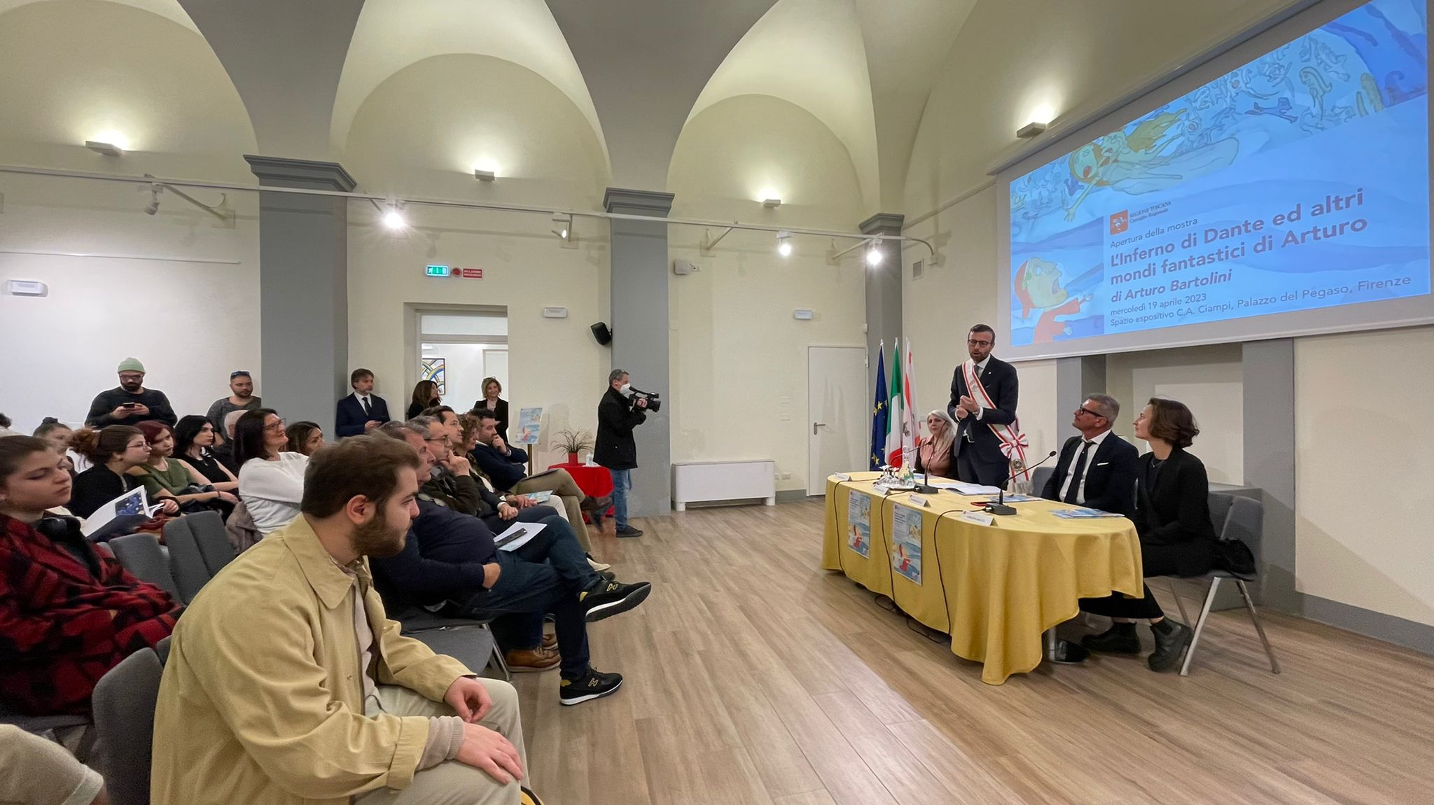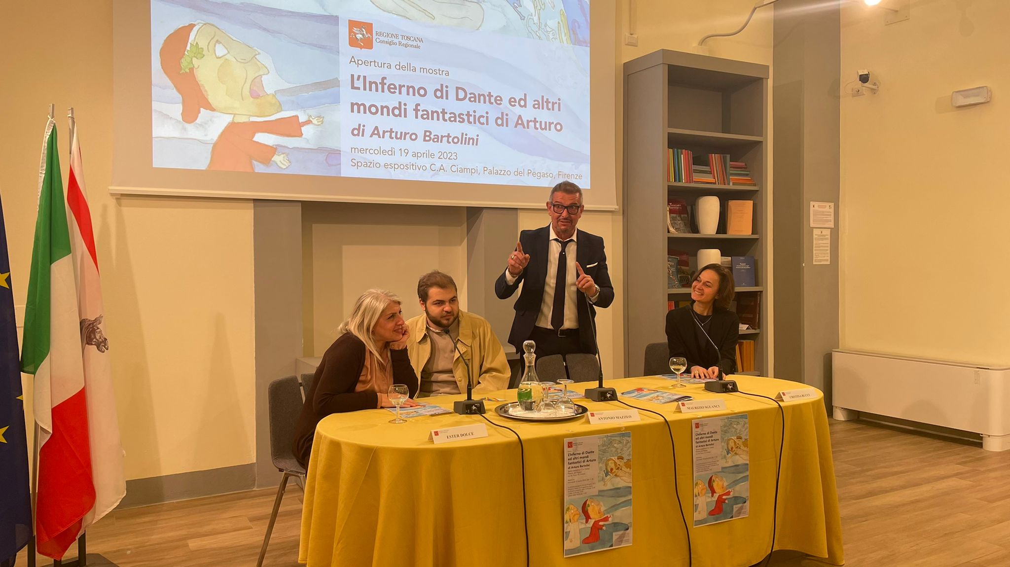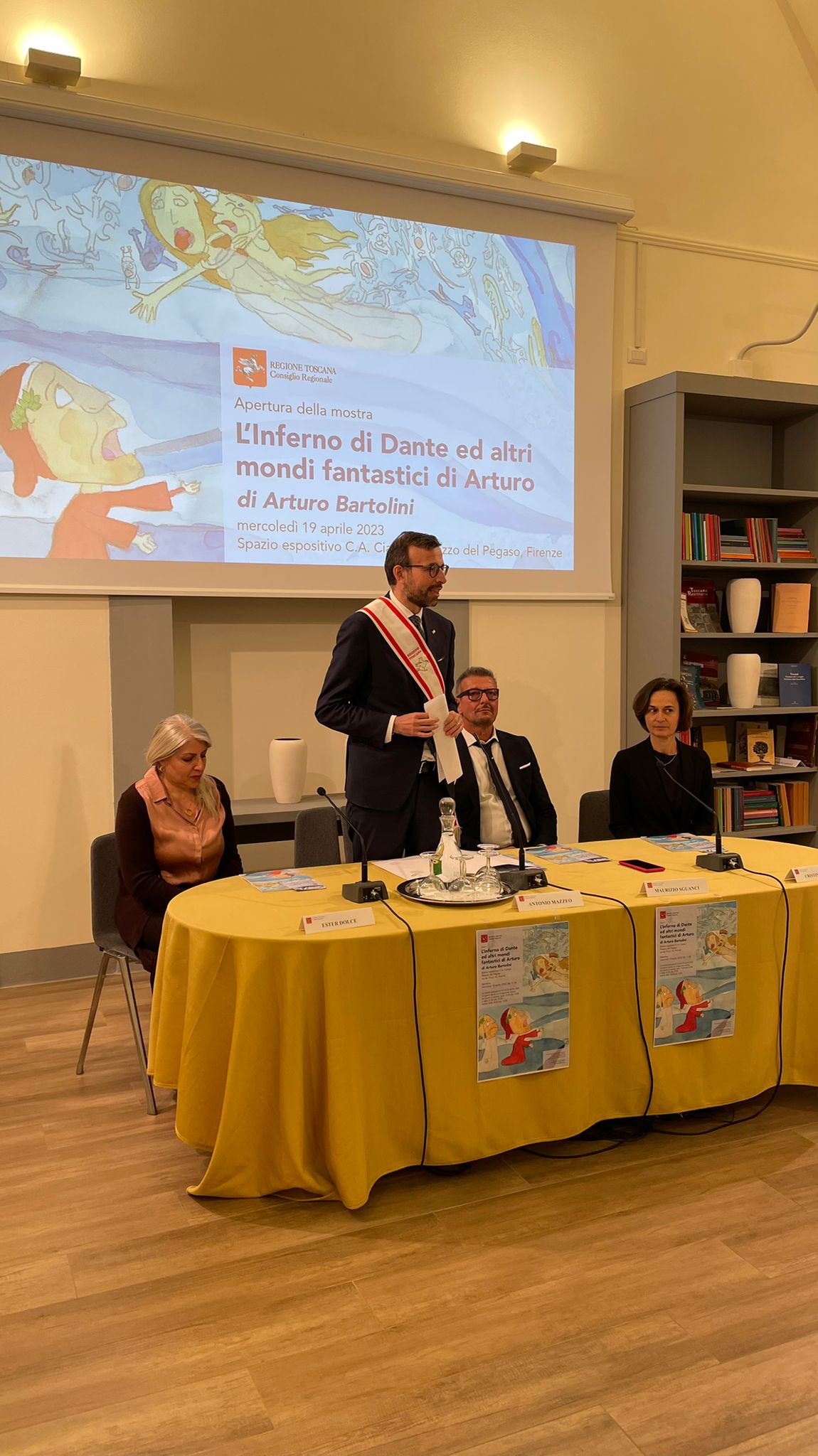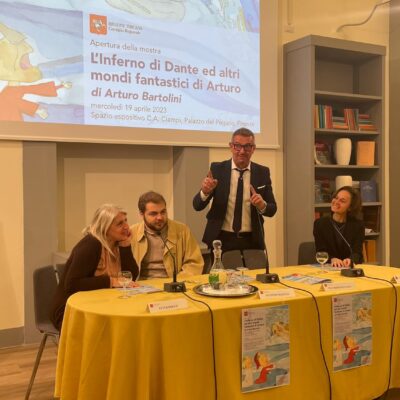 Firenze – Inaugurata con successo in Consiglio regionale dal presidente Antonio Mazzeo e dal consigliere regionale Maurizio Sguanci l’interessante mostra di Arturo Bartolini che compie un viaggio nel mondo dell’inferno dantesco. Arturo Bartolini è nato nel 2003, si è diplomato brillantemente nel 2022 presso il Liceo Artistico Virgilio di Empoli, attualmente frequenta il corso triennale di Illustrazione Pittorica presso l’Accademia The Sign di Firenze.