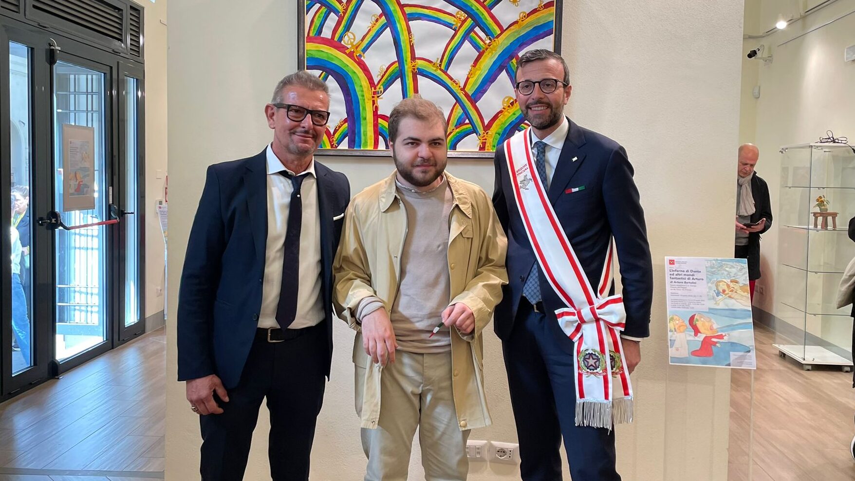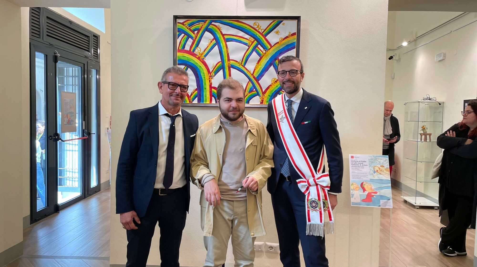 a stupirci della vita, a non considerare tutto così scontato, senza soprese, grigio e fermo. Il suo è veramente un inno potente alla bellezza dell’arte e un invito a tutti noi, a partire da chi rappresenta le istituzioni, di riconoscer fino in fondo questo valore, di essere aperti a raccogliere le tante espressioni belle dell’arte da chiunque ci arrivino, superando le sterili categorie della cosiddetta “normalità”. Grazie Arturo per questo bellissimo regalo che fai alle Toscane e ai Toscani. Non ti stancare di riempire con la tua fantasia libera e potente i fogli, i cartoni, le tele e tutti i materiali che prendi in mano per farli diventare queste opere d’arte che con te in questi giorni ammiriamo felici.”