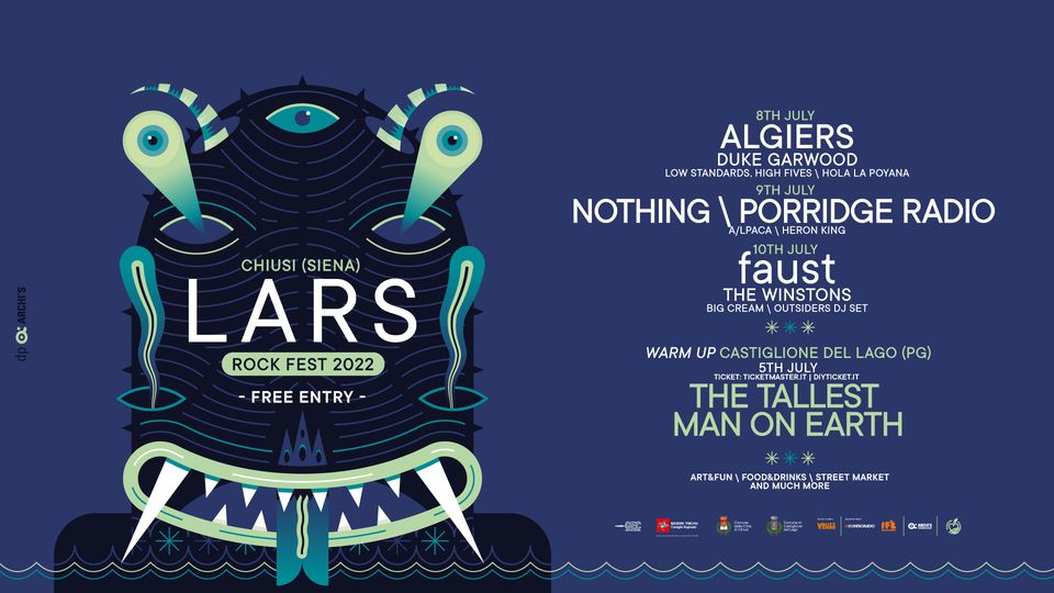 Firenze – Torna dall’8 al 10 luglio il Lars Rock Fest, l’attesa rassegna musicale che si terrà nel parco dei giardini pubblici di Chiusi, in provincia di Siena, e che porterà sul palco artisti come gli Algiers, i Porridge Radio, i Nothing e i Faust.