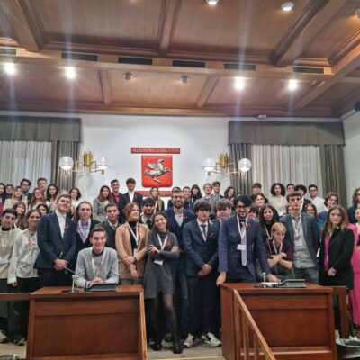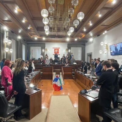 Firenze – Seduta di insediamento, questa mattina, per il Parlamento regionale degli studenti della Toscana. Il Parlamento ha iniziato la sua attività in coincidenza con la celebrazione della Giornata per l’eliminazione della violenza contro le donne, e per questo in aula campeggiava un paio di scarpe rosse, il simbolo della lotta per i diritti delle donne e contro la violenza di genere, posto sopra la bandiera italiana e quella europea. Ad aprire la seduta con i suoi saluti il presidente del Consiglio regionale della toscana Antonio Mazzeo, presente assieme ai consiglieri Francesco Gazzetti e Diego Petrucci.