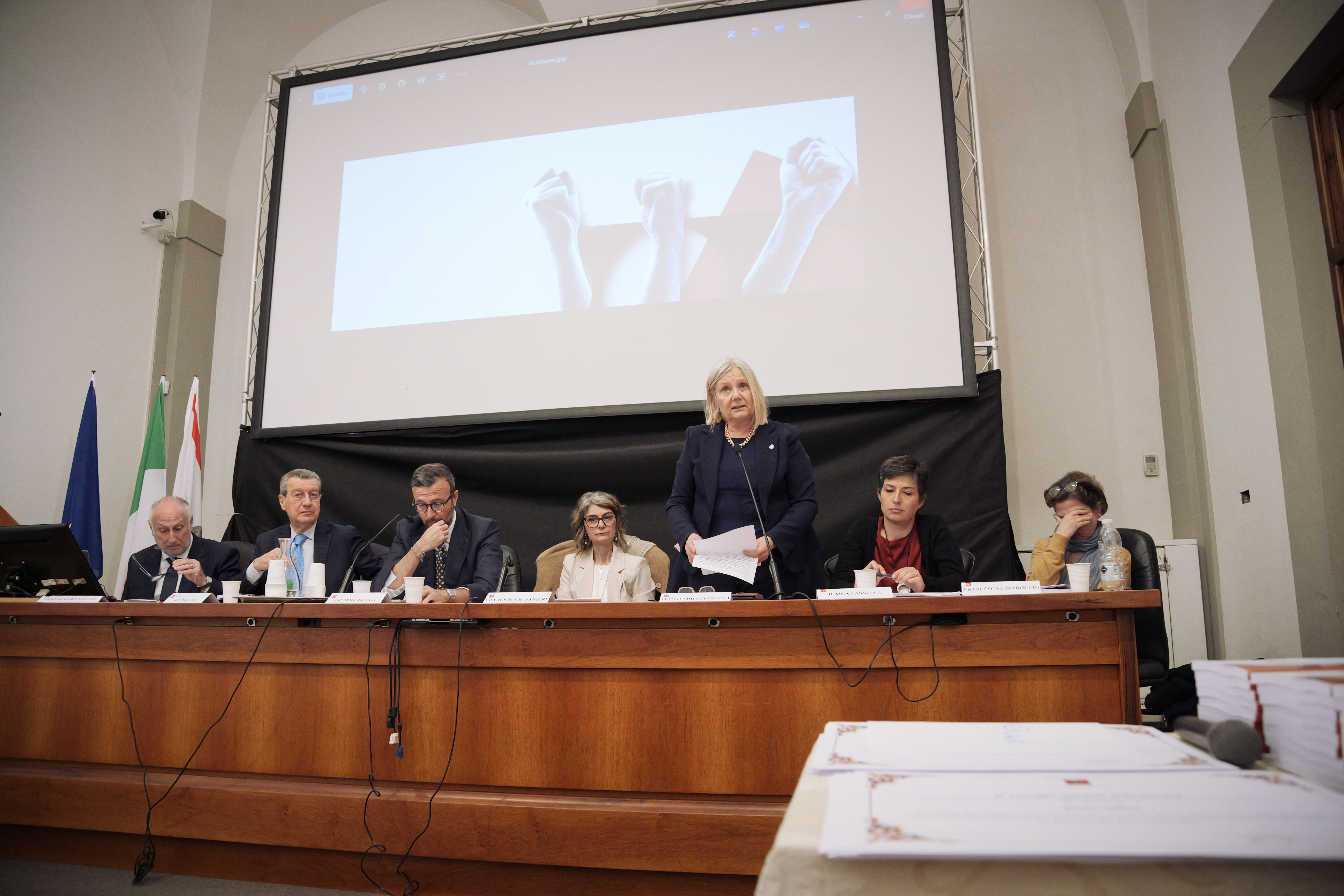 Sulla stessa lunghezza d’onda Alessandra Petrucci, rettrice dell’Università di Firenze: “con grande piacere ma anche con tanta amarezza considero questo volume una sorta di Spoon River, in quanto raccoglie le biografie delle donne toscane che hanno partecipato attivamente alla Resistenza e di cui conosciamo ancora troppe poche storie” ha detto. “Questo libro è un passo importante per colmare una grande lacuna. I nomi che scorrono tra queste pagine non sono nomi famosi, altisonanti, noti alla grande Storia, ma queste pagine elevano le donne alla dignità di protagoniste in un’opera importante, che rende loro giustizia, trascinandole fuori dall’anonimato. Questo è il loro monumento, inteso non tanto come simbolo o simulacro, ma come documento, testimonianza, ricordo” ha ribadito aggiungendo: “le donne, uniche ‘volontarie a pieno titolo nella Resistenza’, come sono state definite, volontarie perché non sottoposte ai bandi di reclutamento, non sono state figure di spicco dei libri di storia, ma lo sono state nelle bande armate, nelle manifestazioni, nella clandestinità, come staffette, davanti e dietro le quinte della lotta alle forze nazifasciste, negli anni bui della Seconda guerra mondiale”.
