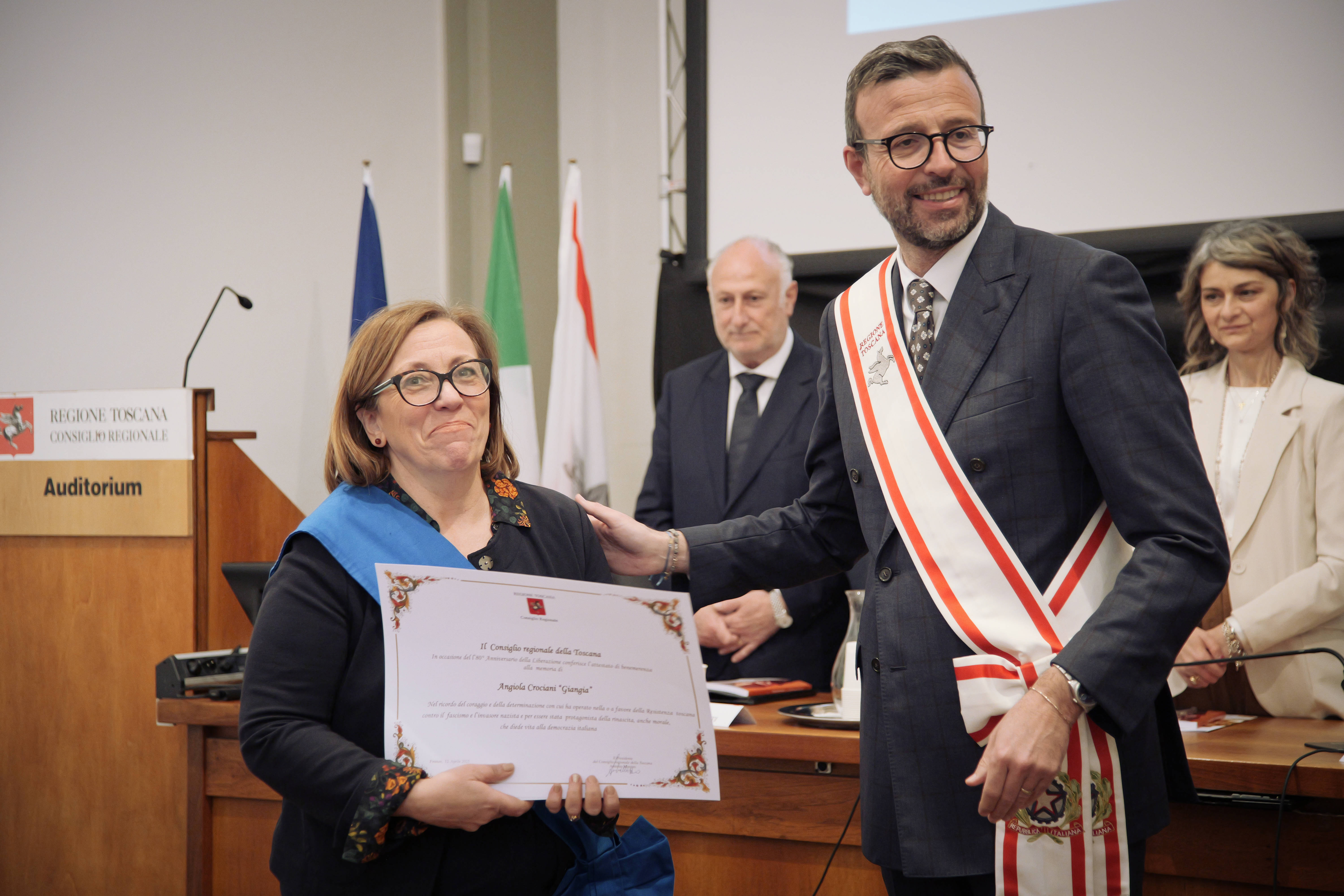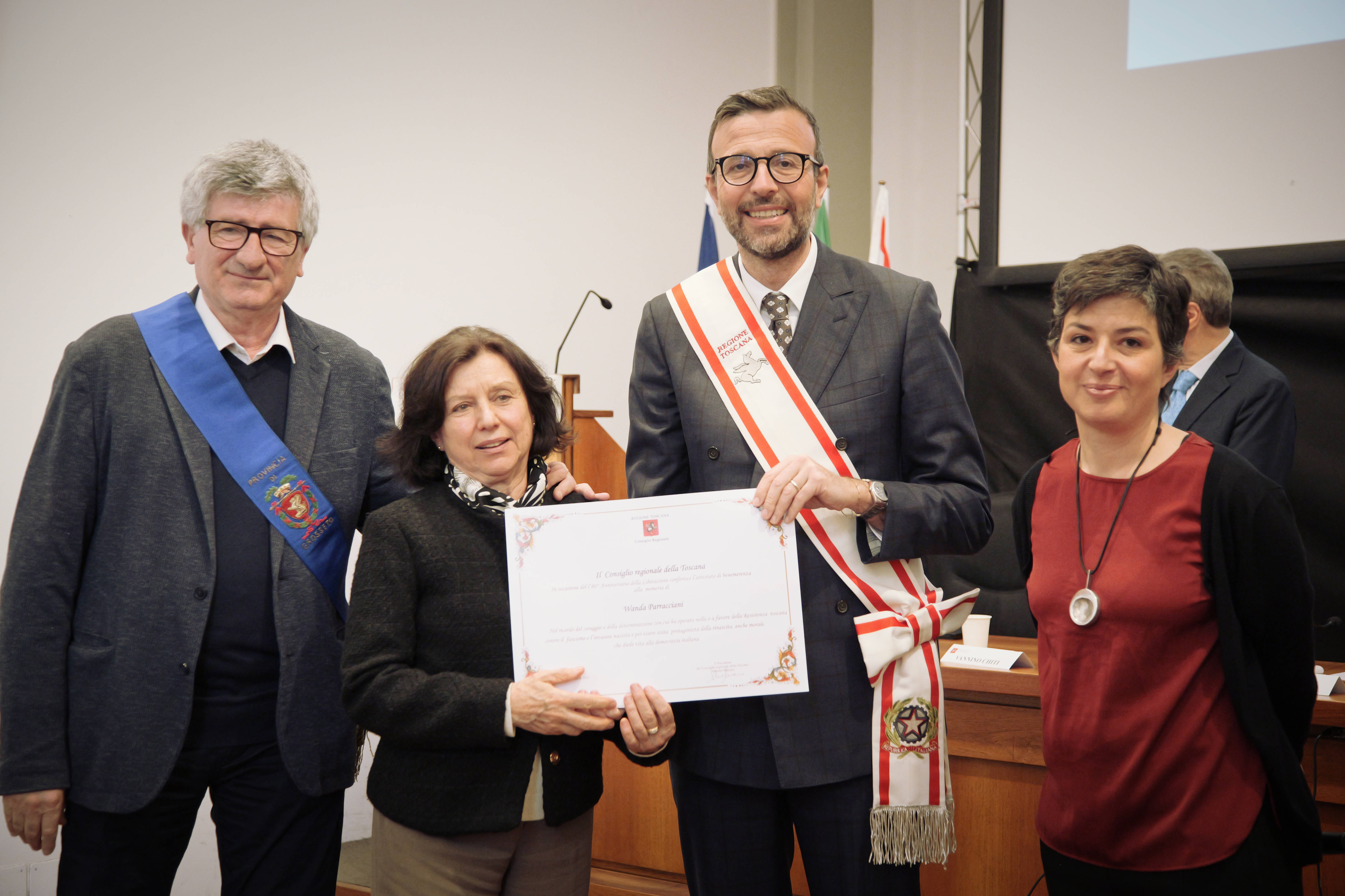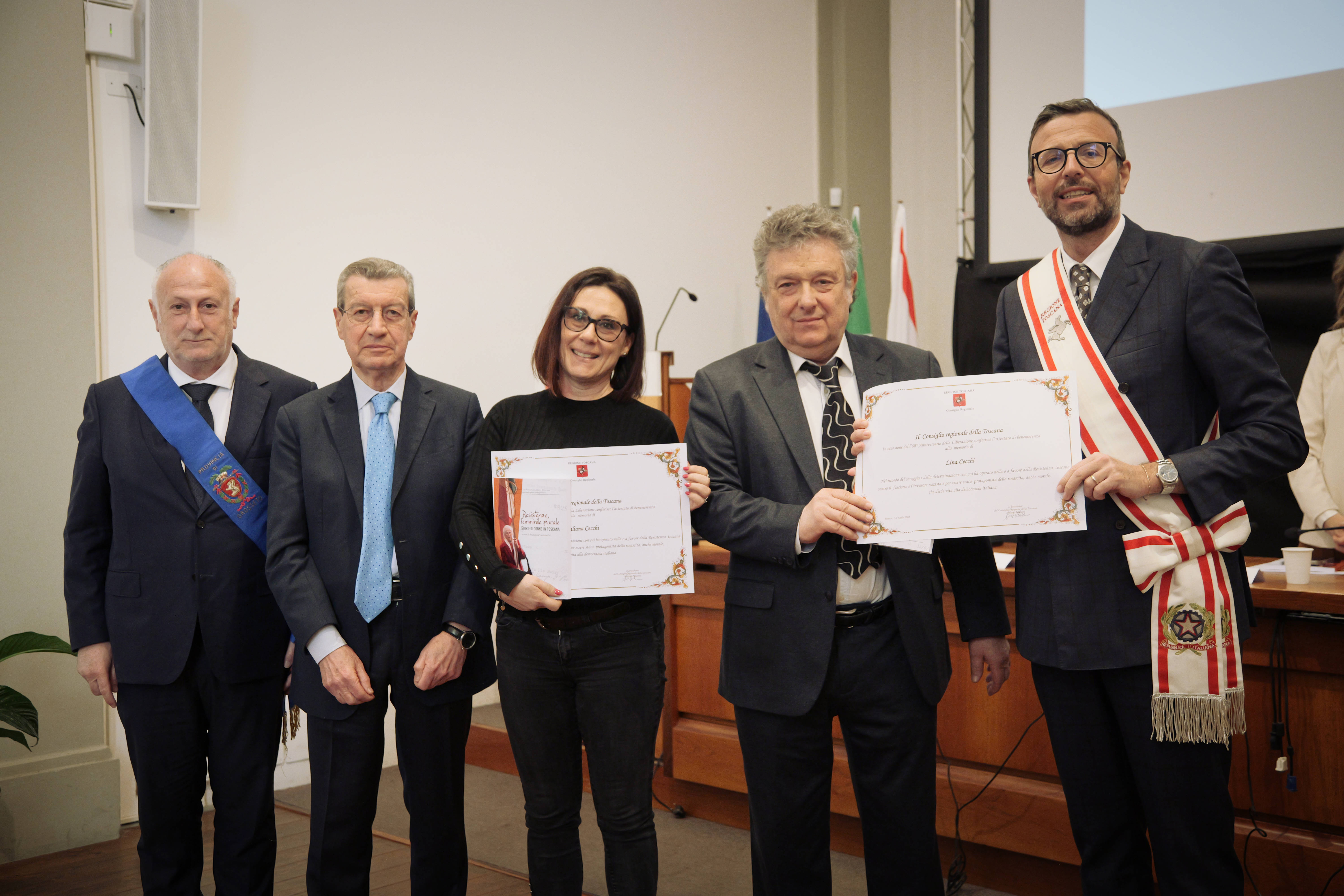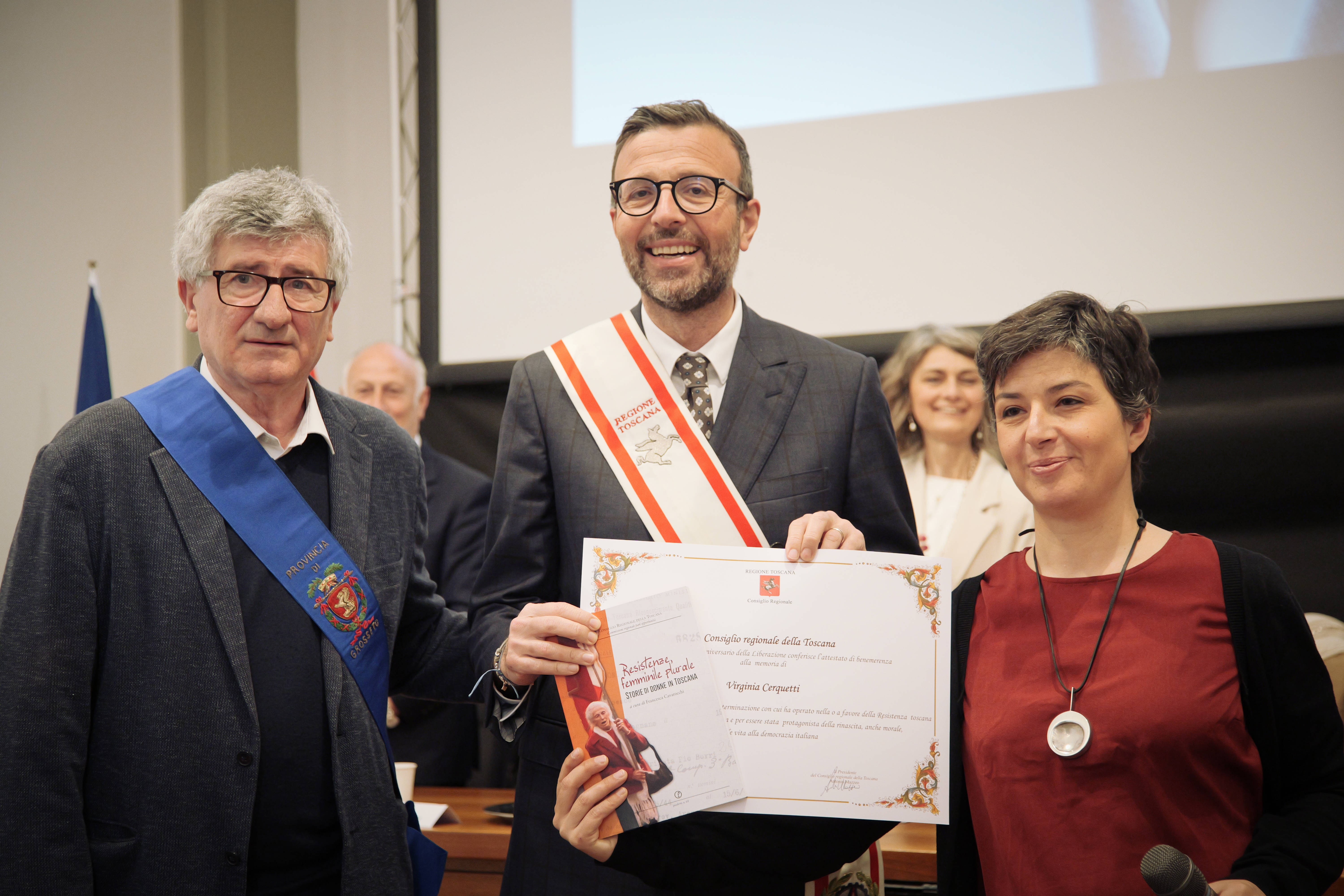 Ed è per rendere onore a quelle donne che, con un gesto dall’alto valore simbolico, sono state consegnate alle loro famiglie pergamene, a testimonianza della volontà di riconoscerne il posto meritato nella storia per chi operò con coraggio e determinazione per la sconfitta del nazifascismo e per l’affermazione dei valori della democrazia. Ed il volume, che raccoglie le schede biografiche di 50 donne (cinque per ogni Provincia toscana) è il frutto di un lavoro corale, come sottolineato negli interventi di Ilaria Cansella, direttrice dell’Istituto Storico della Resistenza di Grosseto, che ha coordinato il progetto della Rete Toscana degli Istituti Storici della Resistenza, e di Francesca Cavarocchi, dell’Università di Firenze, curatrice del volume, che si avvale della documentazione raccolta negli archivi degli stessi istituti.