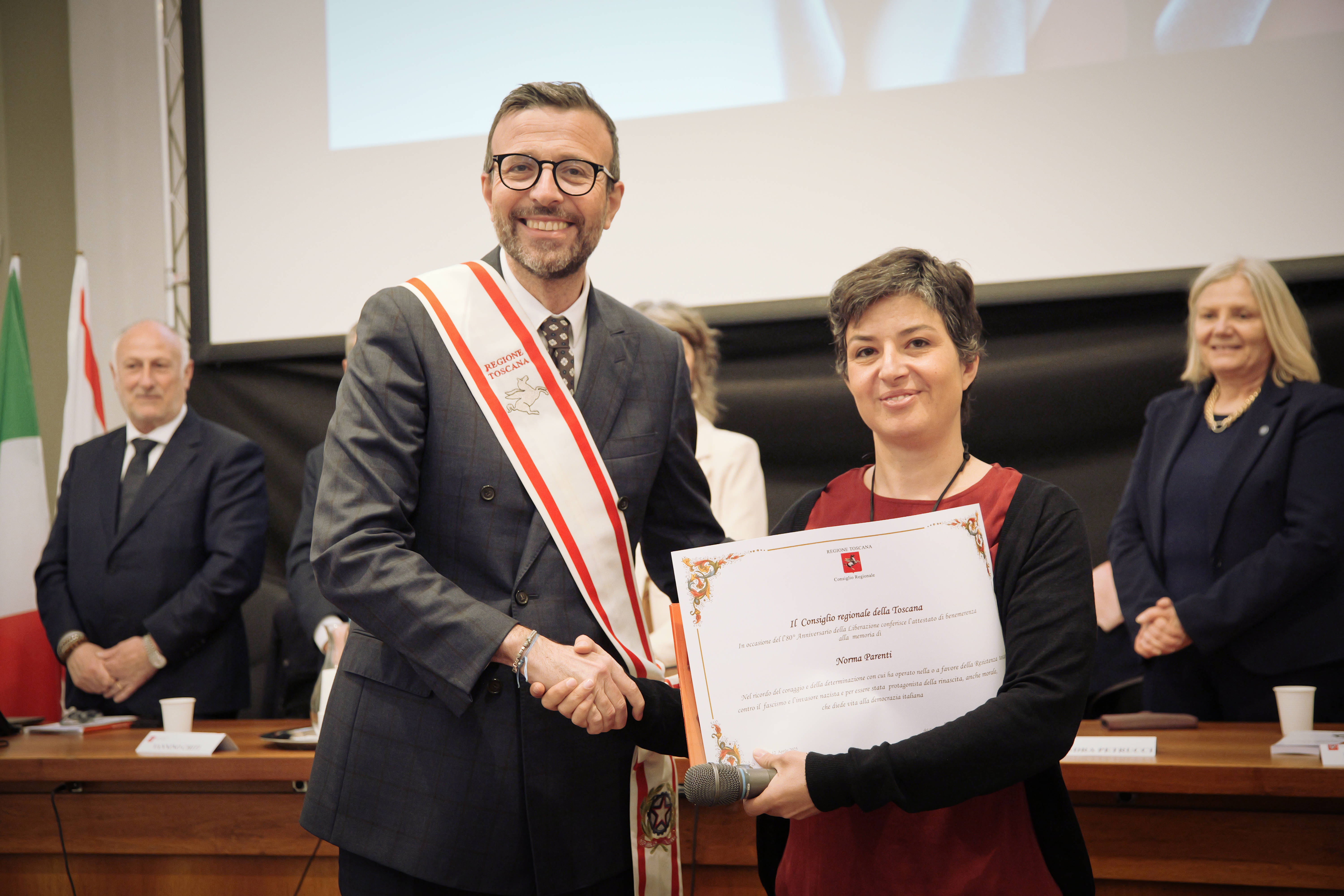 Come sottolineato da Antonio Mazzeo, presidente del Consiglio regionale: “Ci sono pagine della nostra storia che non si possono dimenticare. Pagine che non sono scritte solo con l’inchiostro, ma con il coraggio, le scelte, i sacrifici di donne e uomini che hanno creduto in un futuro migliore, anche quando tutto intorno parlava solo di guerra, sopraffazione e paura. Questo libro è una di quelle pagine. Una raccolta viva e potente di voci femminili che ci raccontano la Resistenza in Toscana, attraverso lo sguardo, le azioni e l’impegno di tante donne che hanno contribuito in modo fondamentale alla lotta di Liberazione”. “Non ci troviamo – ha continuato il presidente – davanti a una semplice ricostruzione storica. Queste sono storie vere, spesso dimenticate o messe ai margini, che meritano oggi di essere riportate al centro del nostro racconto collettivo. Donne giovani e meno giovani, contadine e studentesse, madri e figlie, che hanno scelto di resistere. Hanno rischiato tutto, in molti casi hanno perso tutto, ma non hanno mai smesso di credere nella libertà”. Come presidente dell’Assemblea legislativa della Toscana, Mazzeo ha detto di “sentire il dovere umano, prima ancora che istituzionale, di rendere omaggio a queste figure straordinarie. Lo faccio – ha spiegato – con profonda riconoscenza, ma anche con la consapevolezza che la memoria, da sola, non basta. Va coltivata, protetta, trasmessa. E per questo, da anni, il Consiglio regionale ha scelto di investire risorse, energie e progettualità nella difesa dei valori antifascisti, nella promozione della cultura della pace e della democrazia, nella costruzione di una cittadinanza attiva e consapevole”. “Gli Istituti storici della Resistenza e dell’età contemporanea della Toscana, che sosteniamo con forza (il Consiglio regionale ha recentemente approvato una legge per dare stabilità di finanziamenti agli Istituti storici e a seguire la Giunta ha stanziato 750mila euro per tenere viva la cultura della Memoria ndr), sono preziosi custodi della memoria. Questo volume parla al cuore e alla coscienza: ci ricorda che la libertà è una conquista quotidiana, mai scontata” ha ribadito Mazzeo. “Difendere i valori della nostra democrazia significa anche far tesoro della memoria e assumere decisioni conseguenti – ha concluso il presidente – come ha fatto il comune della città laniera: con la revoca dell’onorificenza concessa nel 1924 Mussolini non sarà più cittadino onorario di Prato, una decisione storica, non ideologica”.