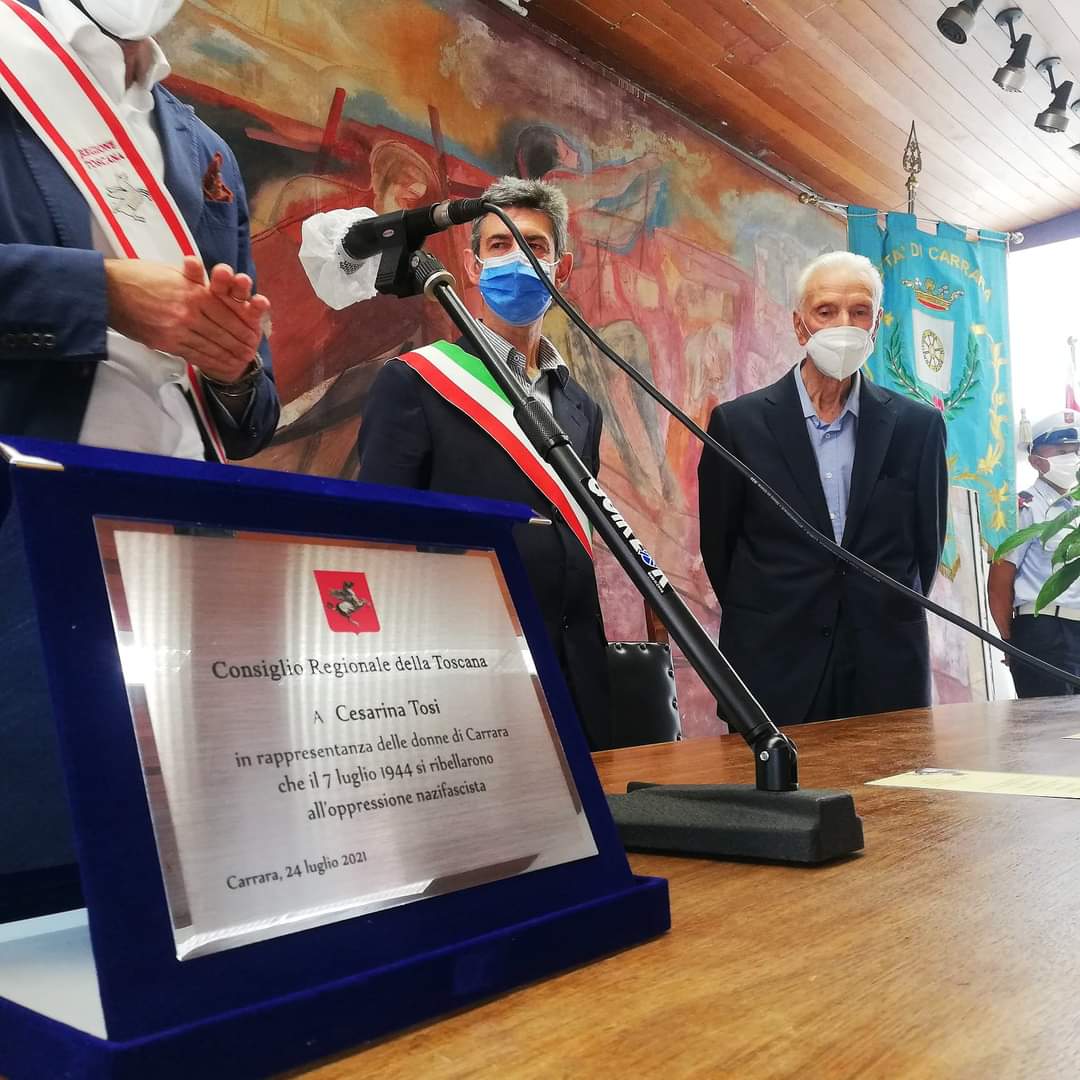 “A Cesarina Tosi rivolgiamo l’ultimo saluto con commozione e devozione. Le diciamo ancora una volta grazie per quello che insieme alle sue compagne di allora e agli uomini come suo marito Giorgio Mori seppe fare, giovane ragazza, a difesa della propria terra e della democrazia”, dice oggi il presidente Mazzeo. “Lei e le donne di Carrara hanno scritto la storia – aggiunge –. Un atto di sfida civile dal profondo significato democratico, precursore delle ragioni che hanno portato alla costruzione della nostra Repubblica democratica”.