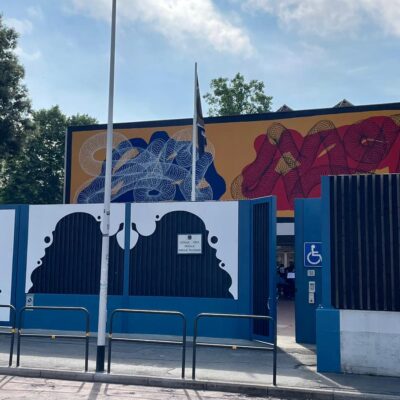 Firenze – La street-art colora l’ingresso su viale Morgagni della scuola media ‘Agnolo Poliziano’ di Firenze, dove questa mattina, venerdì 9 giugno, sono state inaugurate le opere degli artisti Moneyless e Muz. Si tratta del primo dei tre interventi di rigenerazione urbana finanziati direttamente dal Consiglio regionale ai sensi della legge 3/2022 per “iniziative di promozione sociale, culturale e di aggregazione rivolte alle nuove generazioni” nell’ambito della valorizzazione e riqualificazione del patrimonio urbano attraverso l’arte di strada. Muz ha realizzato un murale sulle barriere antirumore della scuola e sul cancello, Moneyless sul frontone.
