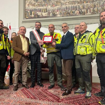 La cerimonia di conferimento si è tenuta a palazzo del Pegaso. Mazzeo: “A loro il nostro grazie più grande per il ruolo fondamentale svolto all’Abetone. Siamo vicini a quei territori che sono più in difficoltà, ma hanno una grande forza”. Petrucci: “Oltre trecento volontari, pronti in ogni momento, con attrezzatura all’avanguardia e personale sicuramente qualificato”