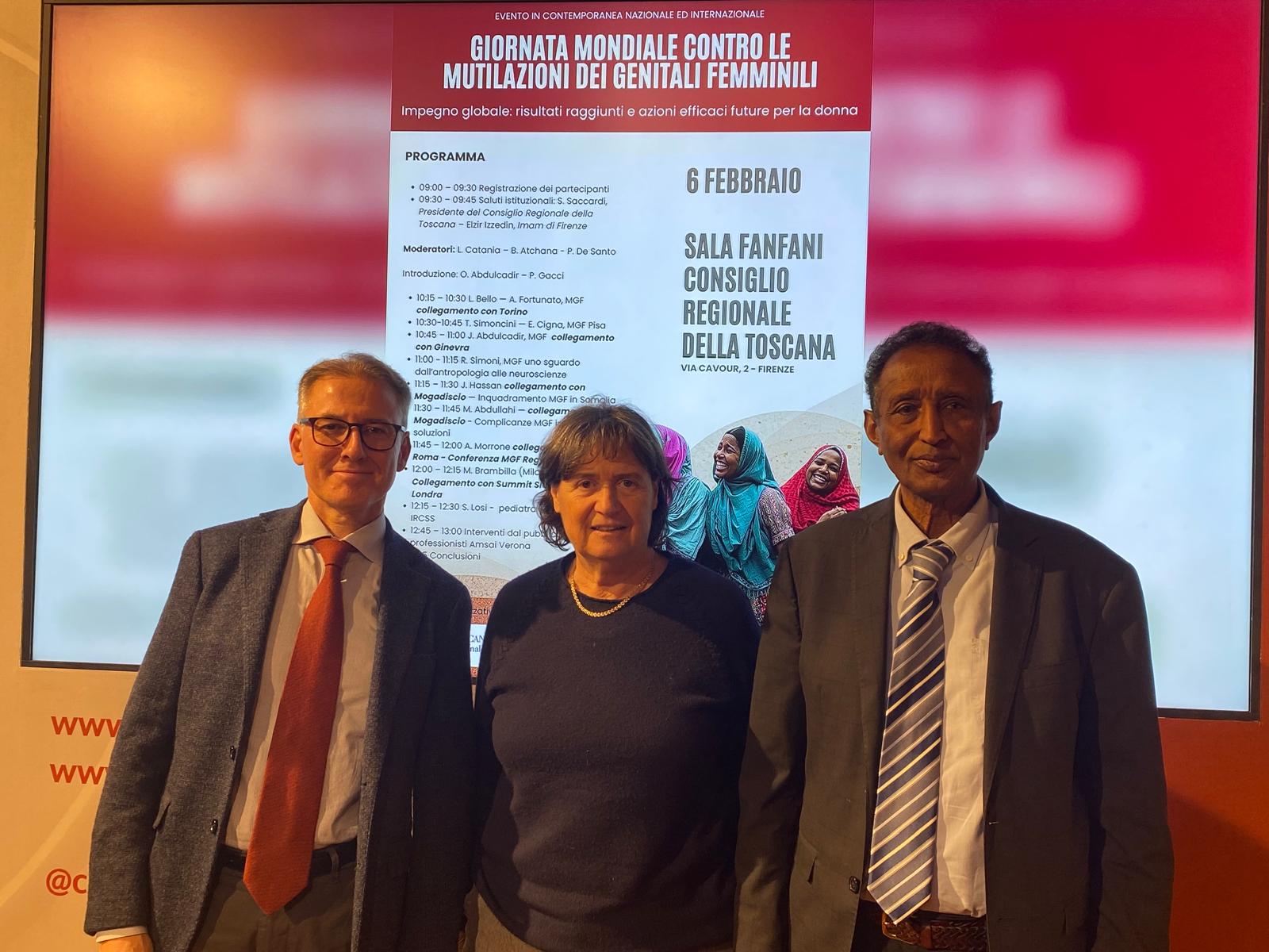 Apriranno il convegno i saluti della presidente del Consiglio regionale Stefania Saccardi, ed Elzir Izzedin, Imam di Firenze. A moderare saranno Lucrezia Catania, ginecologa, Bertrand Atchana, cardiologo e vicepresidente AMSAI, Piermario De Santo, avvocato. Introdurranno Omar Abdulcadir e Paolo Gacci. Interverranno Tommaso Simoncini, ginecologo ed Emanuele Cigna, chirurgo plastico, entrambi del Centro di riferimento regionali per le Mutilazioni genitali femminili dell’AOU Pisa; Stefania Losi, pediatra dell’AOU Meyer; Riccardo Simoni, psichiatra. In collegamento da Torino Luca Bello, ginecologo e Anita Fortunato, ostetrica. In collegamento da Ginevra Jasmine Abdulcadir, ginecologa e capo della clinica Mutilazioni genitali femminili di ginecologia dell’ospedale universitario di Ginevra. In collegamento da Mogadiscio Jihan Hassan, pediatra e Maryan Abdullahi, ginecologa. In collegamento da Roma Aldo Morrone, dermatologo. In collegamento da Milano Massimiliano Brambilla, chirurgo plastico.