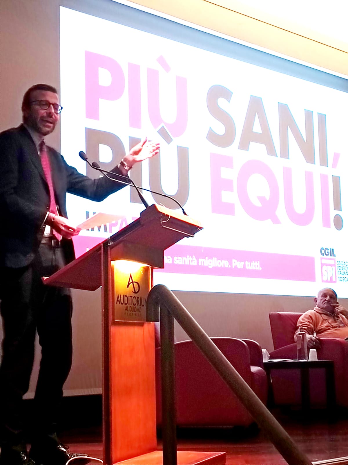 Firenze – “Lavoriamo insieme perché sia possibile investire sempre di più sul sistema sanitario pubblico, sui servizi di prossimità e sulla presa in carico del paziente, garantendo a tutti, indipendentemente dall’età, dal luogo di residenza e dalla loro condizione sociale, di poter avere pieno accesso a quello che è e deve continuare ad essere un diritto fondamentale di ogni cittadina e cittadino toscano”. È questo il messaggio che il presidente del Consiglio regionale, Antonio Mazzeo, ha voluto lanciare questa mattina (lunedì 26 febbraio) intervenendo a Firenze all’iniziativa “Più sani, più equi” organizzata dallo Spi-Cgil.