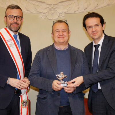 Una targa raffigurante il Gonfalone d’argento, idealmente consegnato a tutti gli operatori della sanità, resterà esposta da oggi nelle sale del palazzo del Pegaso, con l’iscrizione “Al personale socio sanitario della Toscana vittima del Covid-19, nel ricordo del sacrificio della propria vita”. Il Trofeo Pegaso, statuetta raffigurante il Pegaso alato, è stato consegnato a ciascun ordine e organizzazione. Erano presenti la presidente Rosa Barone per l’Ordine degli assistenti sociali della Toscana; il vice presidente Simone Mangini, per Ordine degli psicologi; il presidente Renato Fani, per l’Ordine dei biologi della Toscana e dell’Umbria; il coordinatore regionale Salvatore Ingrosso, per l’Ordine dei farmacisti; Lorenzo Vanni per l’Ordine dei Medici Chirurghi e Odontoiatri della Toscana, che accoglie “questo riconoscimento in nome e per conto dei 383 colleghi deceduti in Italia per il Covid”, le presidenti Antonella Cinotti e Martha Traupe per l’Ordine della professione di ostetrica; il presidente Opi Livorno, Lorenzo Taddeucci, per l’Ordine delle professioni infermieristiche; Adriana Taddeucci, del consiglio direttivo dell’Ordine regionale dei chimici e dei fisici; Raffaele Lamanna, vicepresidente dell’Ordine dei tecnici sanitari di radiologia medica e professioni sanitarie tecniche della riabilitazione e della prevenzione; il portavoce del Forum Terzo Settore della Toscana, Gianluca Mengozzi, che: il presidente Anpas Pubbliche Assistenze Toscane, Dimitri Bettini; il segretario regionale della Croce rossa italiana Comitato Regionale Toscana, Pasquale Morano, e Andrea Ceccherini, membro esecutivo regionale della Federazione regionale delle Misericordie della Toscana. Alla cerimonia, che si è tenuta nella sala del Gonfalone, hanno assistito anche la consigliera Silvia Noferi e il consigliere Marco Martini.