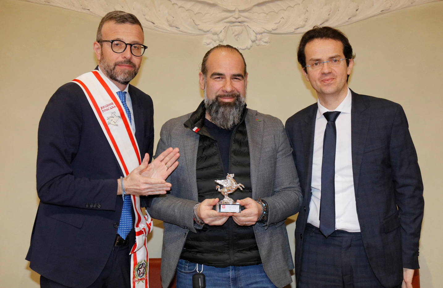 Una targa raffigurante il Gonfalone d’argento, idealmente consegnato a tutti gli operatori della sanità, resterà esposta da oggi nelle sale del palazzo del Pegaso, con l’iscrizione “Al personale socio sanitario della Toscana vittima del Covid-19, nel ricordo del sacrificio della propria vita”. Il Trofeo Pegaso, statuetta raffigurante il Pegaso alato, è stato consegnato a ciascun ordine e organizzazione. Erano presenti la presidente Rosa Barone per l’Ordine degli assistenti sociali della Toscana; il vice presidente Simone Mangini, per Ordine degli psicologi; il presidente Renato Fani, per l’Ordine dei biologi della Toscana e dell’Umbria; il coordinatore regionale Salvatore Ingrosso, per l’Ordine dei farmacisti; Lorenzo Vanni per l’Ordine dei Medici Chirurghi e Odontoiatri della Toscana, che accoglie “questo riconoscimento in nome e per conto dei 383 colleghi deceduti in Italia per il Covid”, le presidenti Antonella Cinotti e Martha Traupe per l’Ordine della professione di ostetrica; il presidente Opi Livorno, Lorenzo Taddeucci, per l’Ordine delle professioni infermieristiche; Adriana Taddeucci, del consiglio direttivo dell’Ordine regionale dei chimici e dei fisici; Raffaele Lamanna, vicepresidente dell’Ordine dei tecnici sanitari di radiologia medica e professioni sanitarie tecniche della riabilitazione e della prevenzione; il portavoce del Forum Terzo Settore della Toscana, Gianluca Mengozzi, che: il presidente Anpas Pubbliche Assistenze Toscane, Dimitri Bettini; il segretario regionale della Croce rossa italiana Comitato Regionale Toscana, Pasquale Morano, e Andrea Ceccherini, membro esecutivo regionale della Federazione regionale delle Misericordie della Toscana. Alla cerimonia, che si è tenuta nella sala del Gonfalone, hanno assistito anche la consigliera Silvia Noferi e il consigliere Marco Martini.