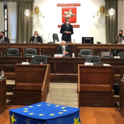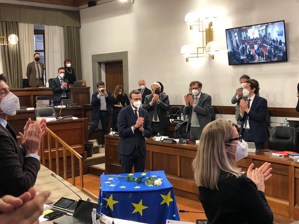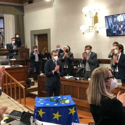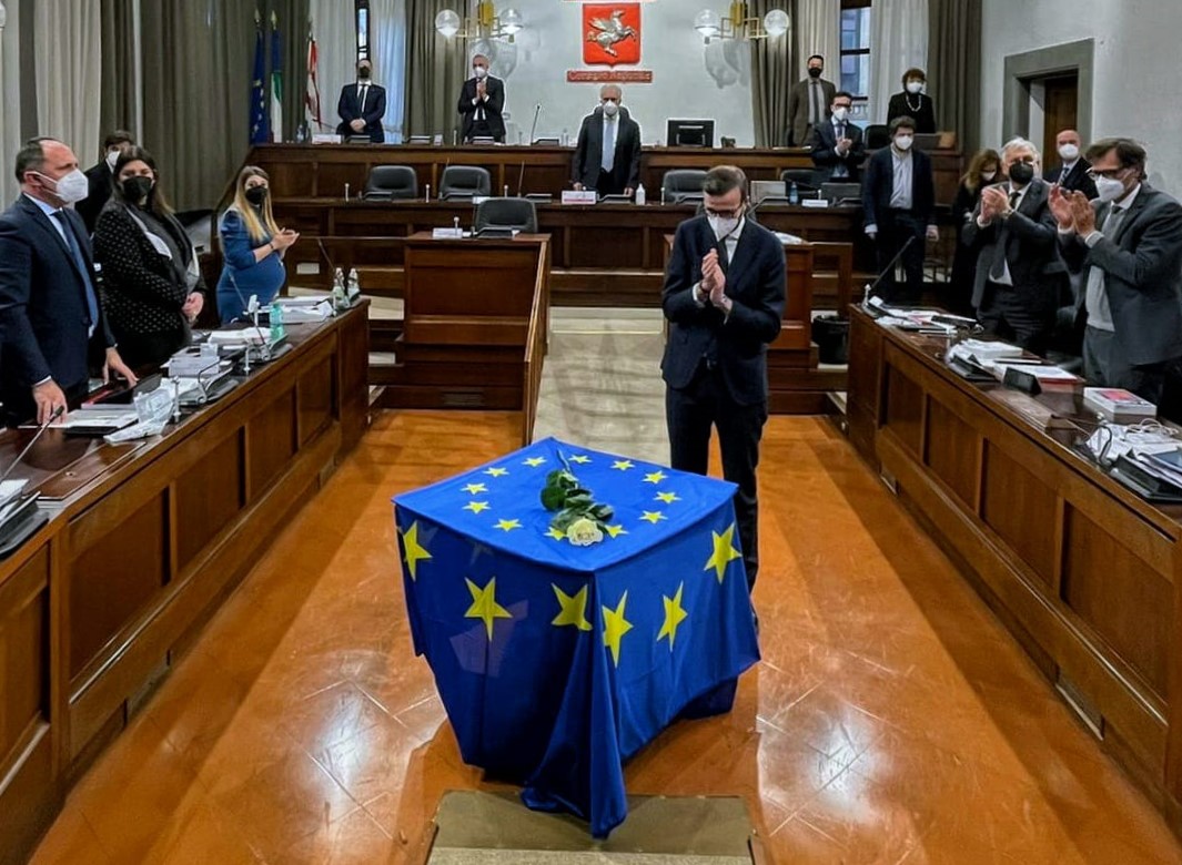 Una rosa bianca poggiata su un tavolo, accanto alla bandiera blu stellata dell’Unione europea, nell’Aula riunita, in memoria di David Sassoli. Poi, in ascolto del videomessaggio che il presidente del Parlamento europeo inviò all’Assemblea toscana, in occasione della seduta solenne per la Festa dell’Europa, lo scorso 11 maggio, salutato al termine con un lungo applauso. Il Consiglio regionale della Toscana ricorda così la figura di David Sassoli, morto l’11 gennaio scorso. “Abbiamo perso un riferimento importante, autorevole, un protagonista della scena politica internazionale che ha dato lustro al nostro Paese fra i partner europei. Un toscano, che amava la nostra terra in maniera forte, non ci ha mai fatto mancare il suo supporto in questi anni e ha fatto sentire l’affetto vero e sincero che provava per la nostra Regione”, dice il presidente, Antonio Mazzeo, in apertura della seduta. “Un uomo delle istituzioni, serio, che si è messo a disposizione delle nostre comunità. David Sassoli ha fatto dei valori della libertà e della tutela dei diritti umani una bandiera, insieme alla parità di genere e al cambiamento climatico. Per noi – spiega Mazzeo – le parole di quel suo video messaggio rappresentano la strada da percorrere”.