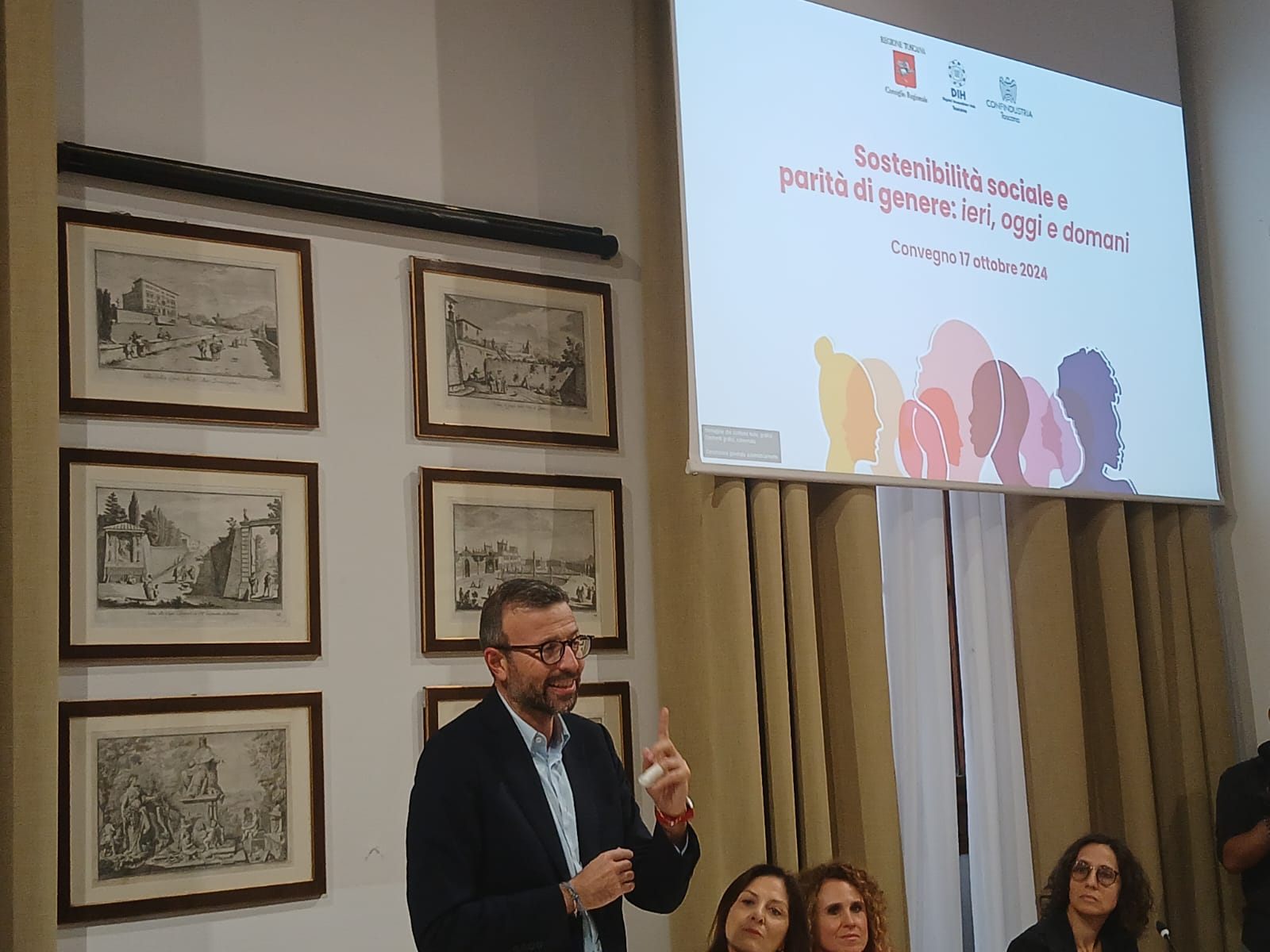 “Una iniziativa come questa merita di svolgersi in Consiglio regionale, perché il tema della sostenibilità sociale e della parità di genere spesso figura come una delle ultime, se non l’ultima, delle scelte strategiche delle aziende. Invece, investire in questa direzione significa investire in fiducia e nel coraggio di costruire un mondo migliore di come lo abbiamo trovato”, ha detto il presidente del Consiglio regionale, Antonio Mazzeo, introducendo i lavori del convegno e ricordando il faticoso iter che l’Assemblea legislativa ha dovuto percorrere per giungere ad affermare, nel campo delle nomine, una assoluta parità di genere. “Rompere il tetto di cristallo – aggiunge infatti Mazzeo – non è mai facile, e la prima responsabilità ce l’abbiamo noi come istituzioni, perché il cambiamento deve partire di qui”. Il presidente ha poi sottolineato che in questi anni “alcune imprese hanno provato a fare tanto in questa direzione, costruendo condizioni lavorative che permettano di ridurre il gender gap, ma certo si può fare di più e meglio e molto passa dal cambiamento di un paradigma culturale a favore del quale noi, anche con iniziative come questa, possiamo dare il nostro contributo”.