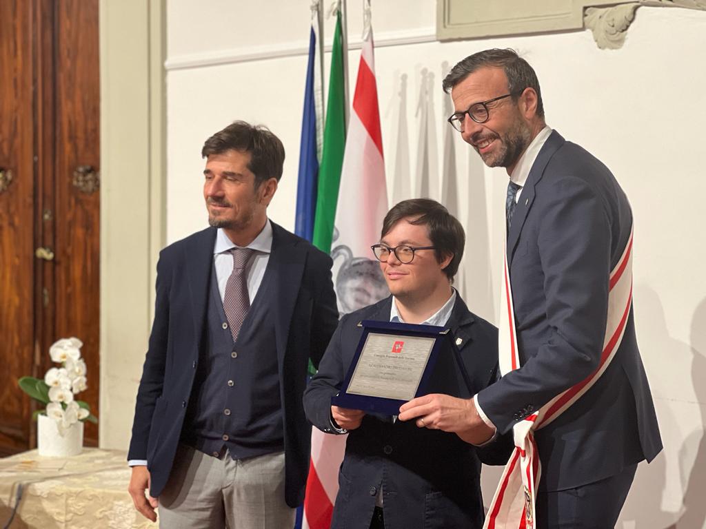 Targa al talento, alla tenacia, alla forza di fare sempre meglio al giovane pistoiese protagonista dei recenti mondiali di sci alpino per diversamente abili. Il presidente del Consiglio regionale Antonio Mazzeo: “La tua storia ci rende più responsabili per garantire diritti e opportunità ad ogni cittadina e cittadino della nostra bellissima regione”. Il segretario questore dell’Ufficio di presidenza Marco Stella, promotore del riconoscimento: “Il tuo carattere insegna ad ognuno di noi”