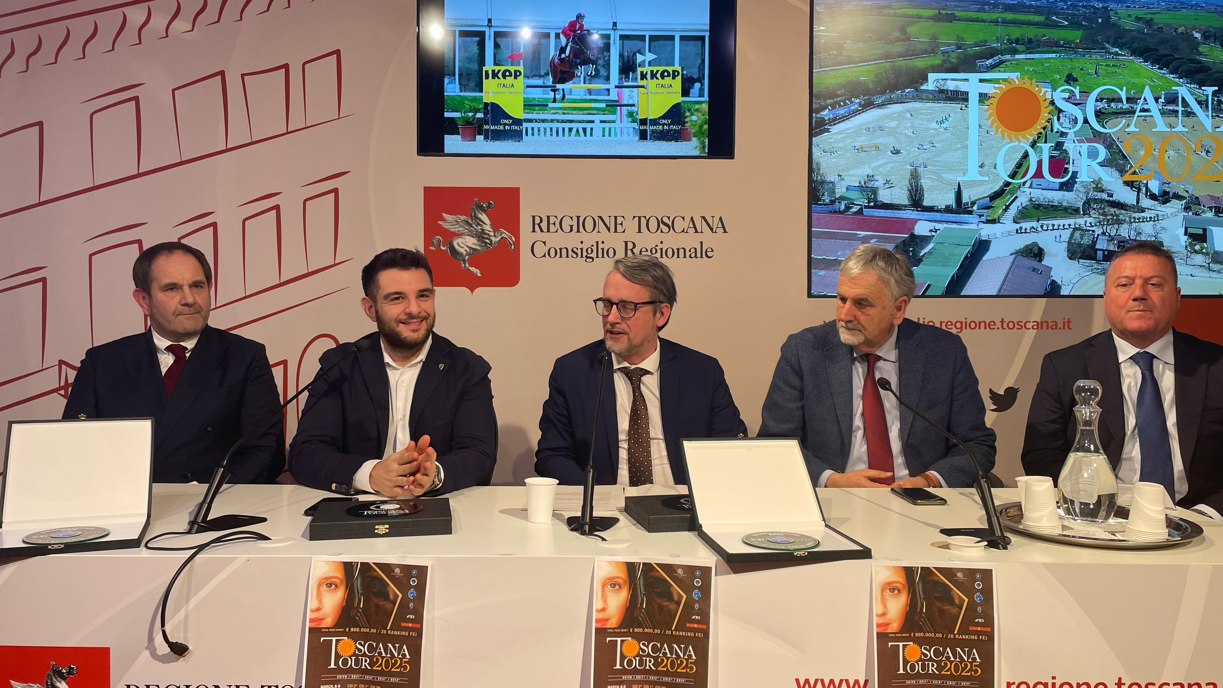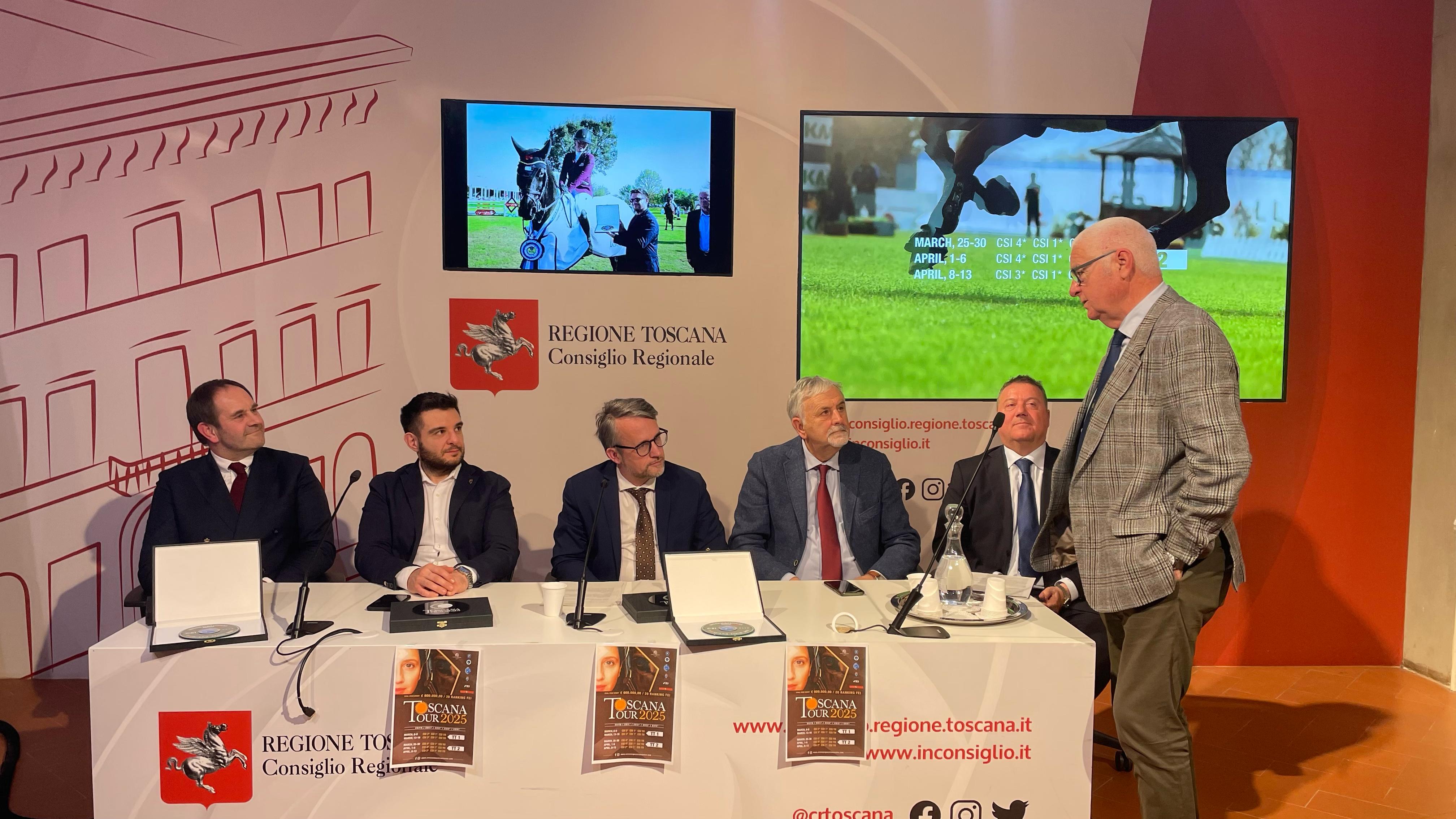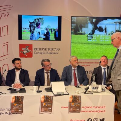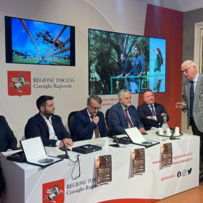 Firenze – Da oggi al 16 marzo e dal 25 marzo al 13 aprile, all’Arezzo Equestrian Centre è protagonista il grande salto ostacoli. Il prestigioso evento internazionale, organizzato con il patrocinio di Regione Toscana, Comune di Arezzo e la collaborazione di Jumping Verona, ospiterà per cinque settimane, cavalieri e amazzoni provenienti da più di 30 nazioni, in lizza per un montepremi complessivo di 900mila euro. La 19esima edizione del Toscana Tour Arezzo è stata presentata questa mattina, giovedì 6 marzo, a palazzo del Pegaso.
